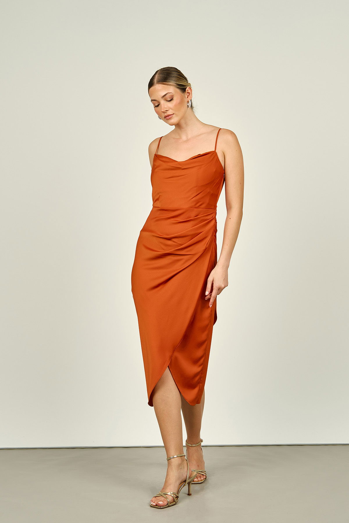 Doridorca Kadın Degaje Yaka Abiye Elbise 5923060 Kiremit