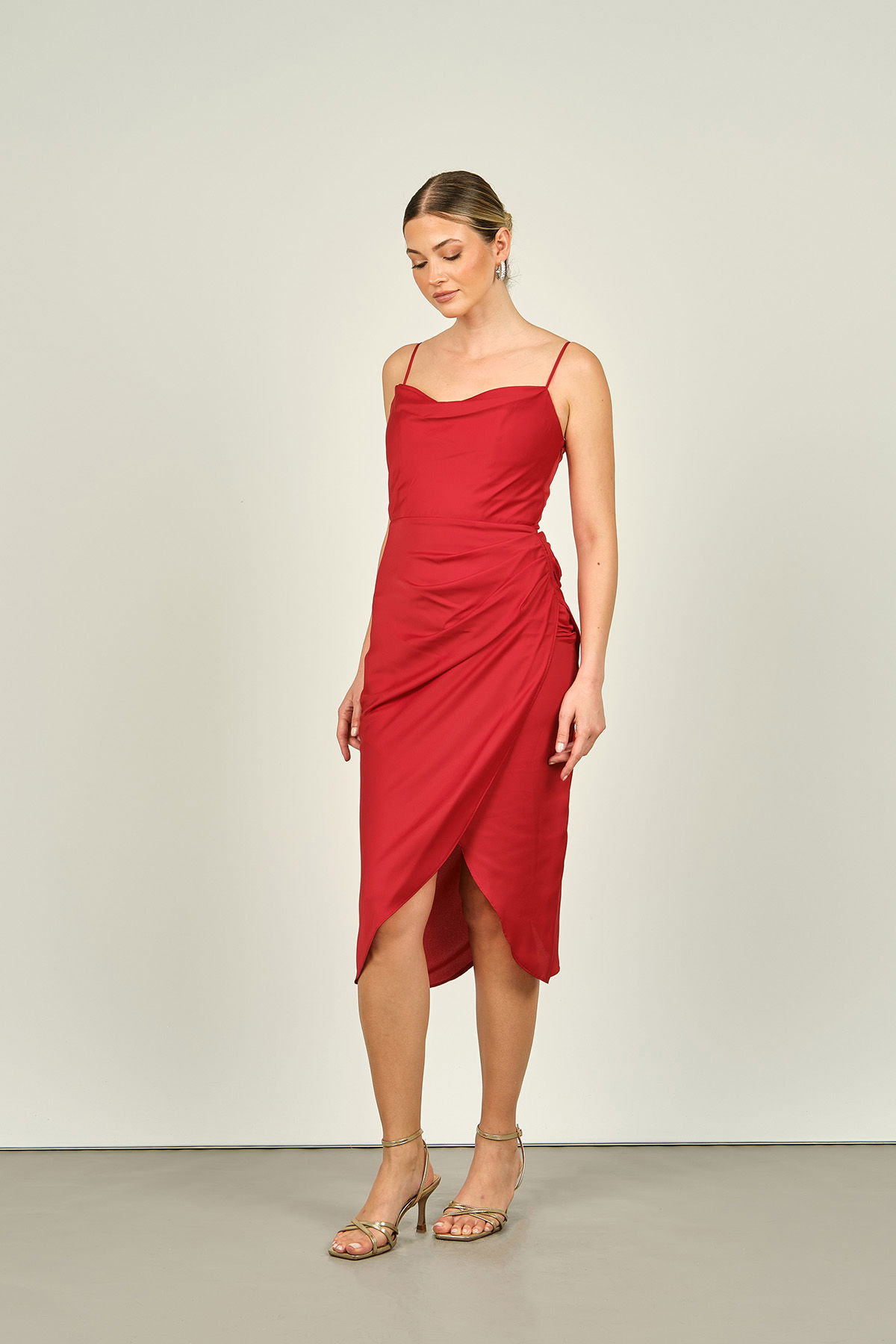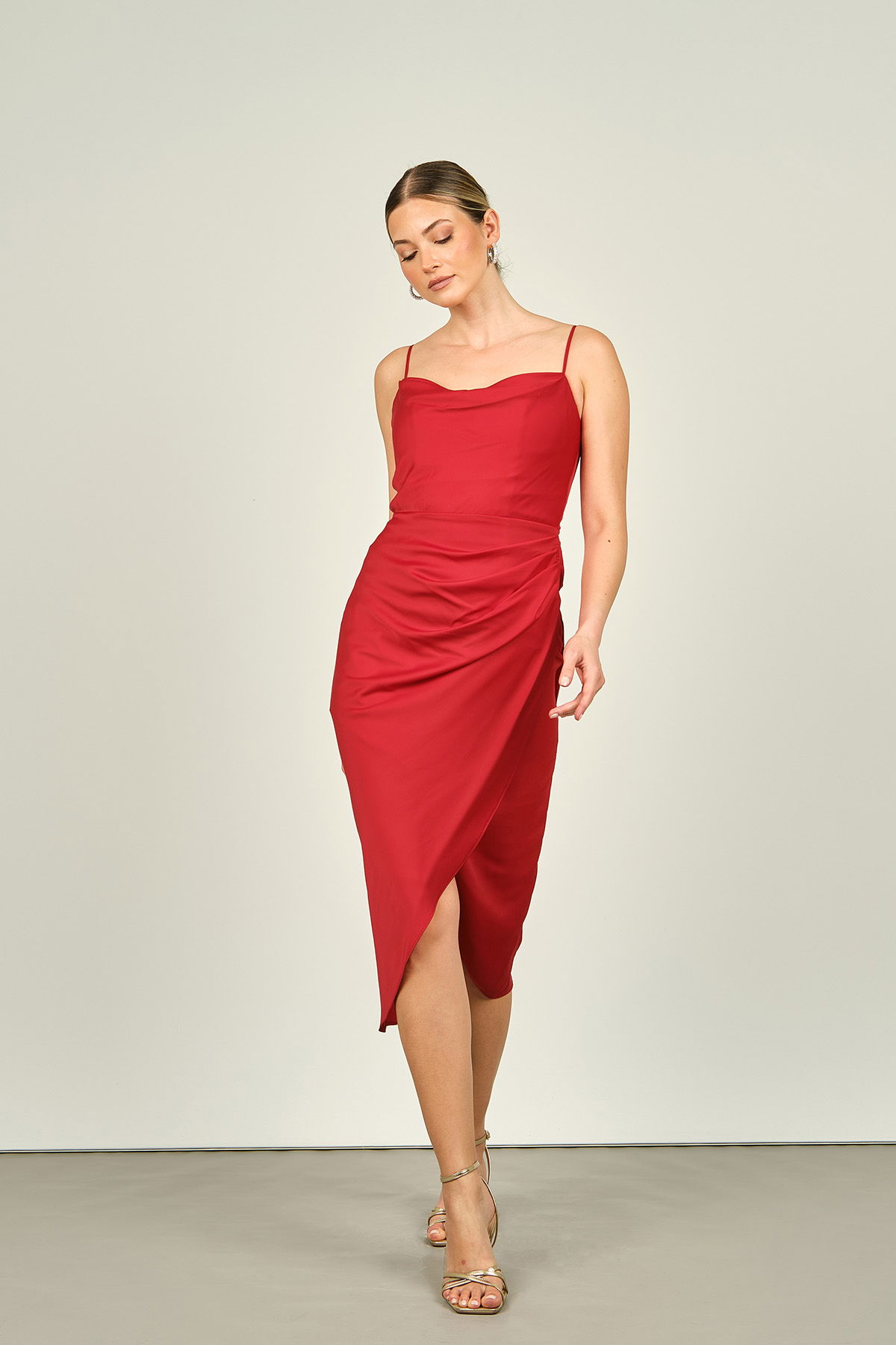 Doridorca Kadın Degaje Yaka Abiye Elbise 5923060 Kırmızı