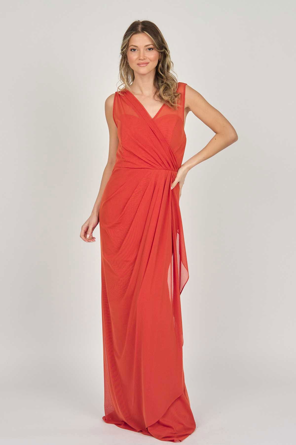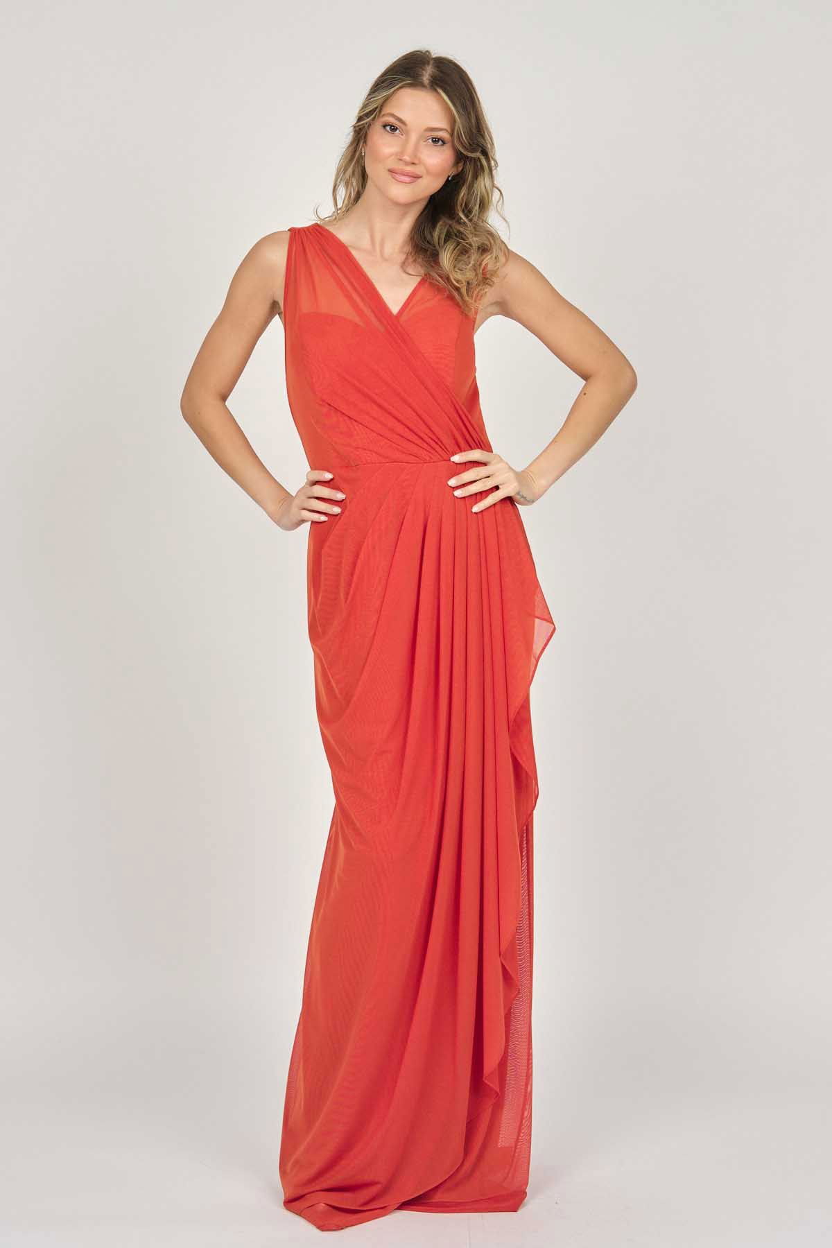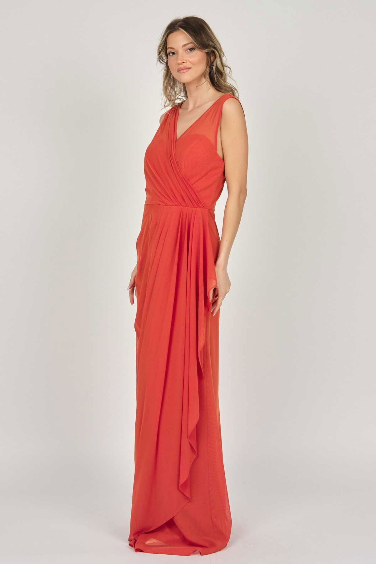 Doridorca Kadın Kolsuz Uzun Abiye Elbise 5922039 Tarçın