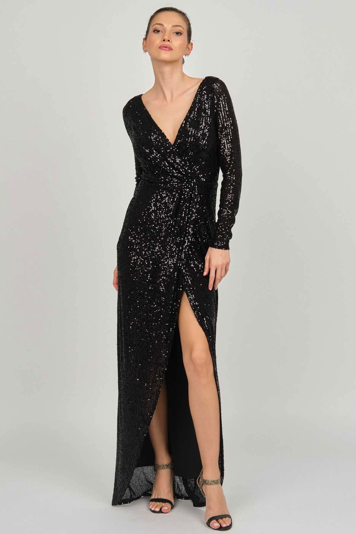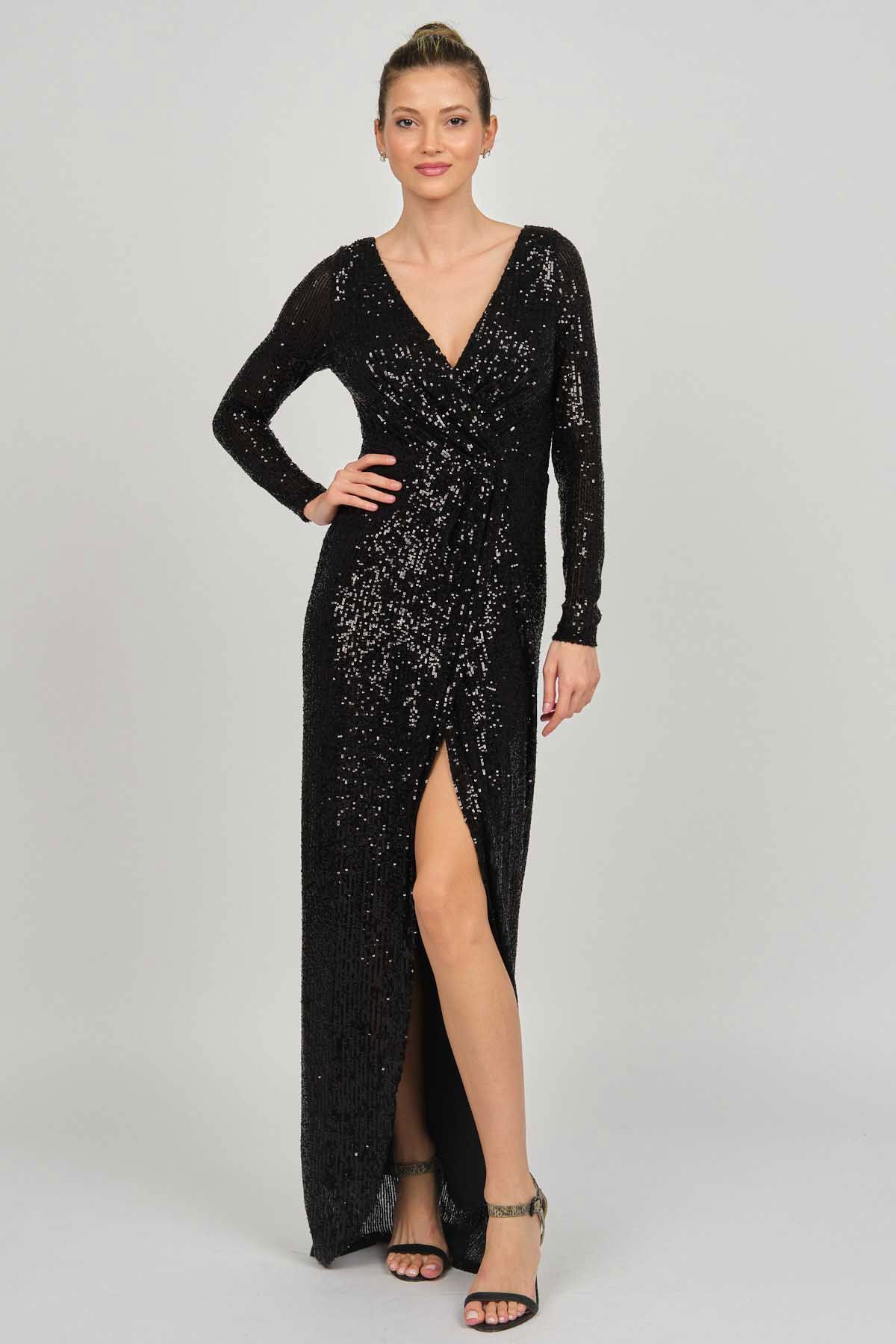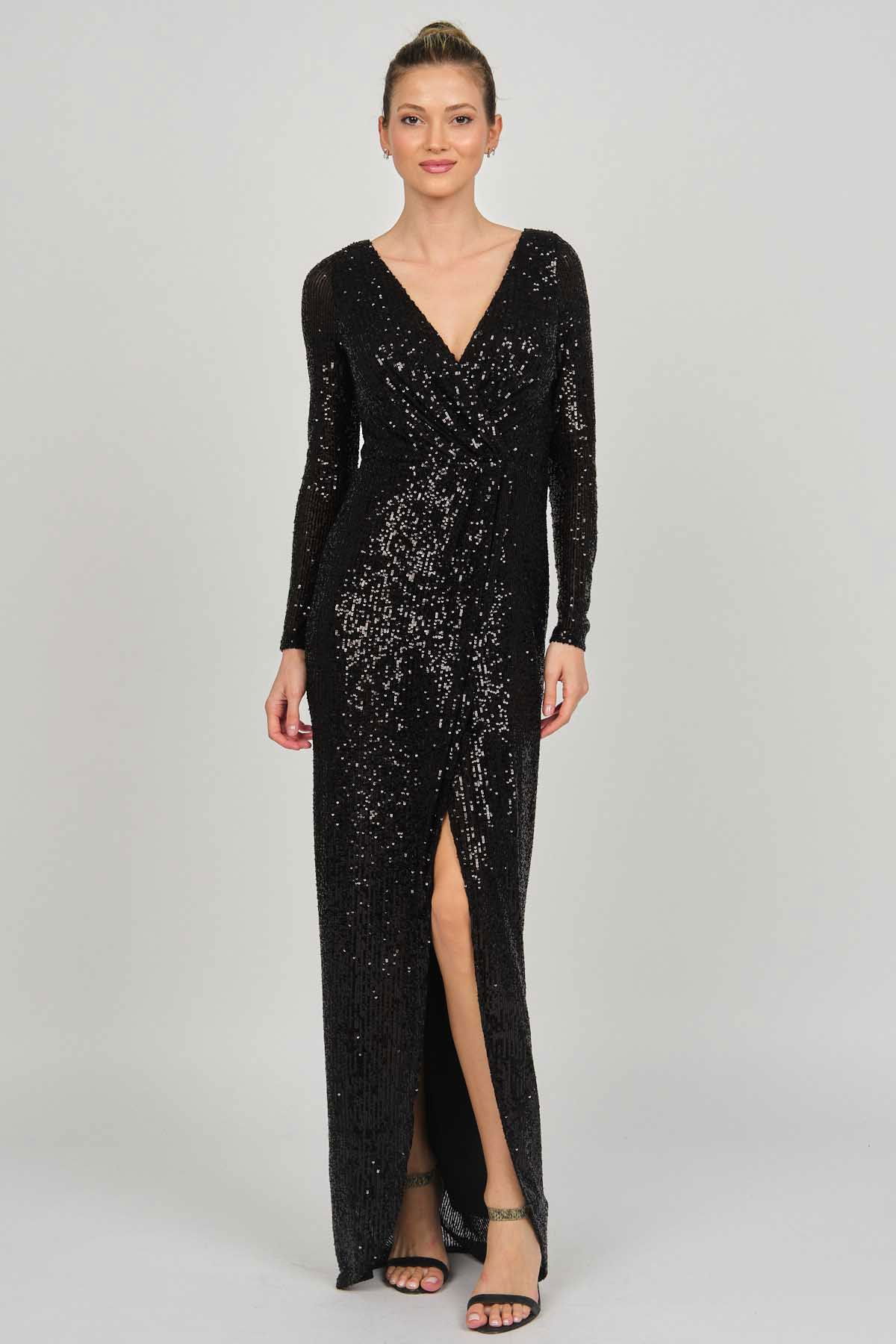 Detay: Uzun kollu, anvelop, astarlı abiye elbise;