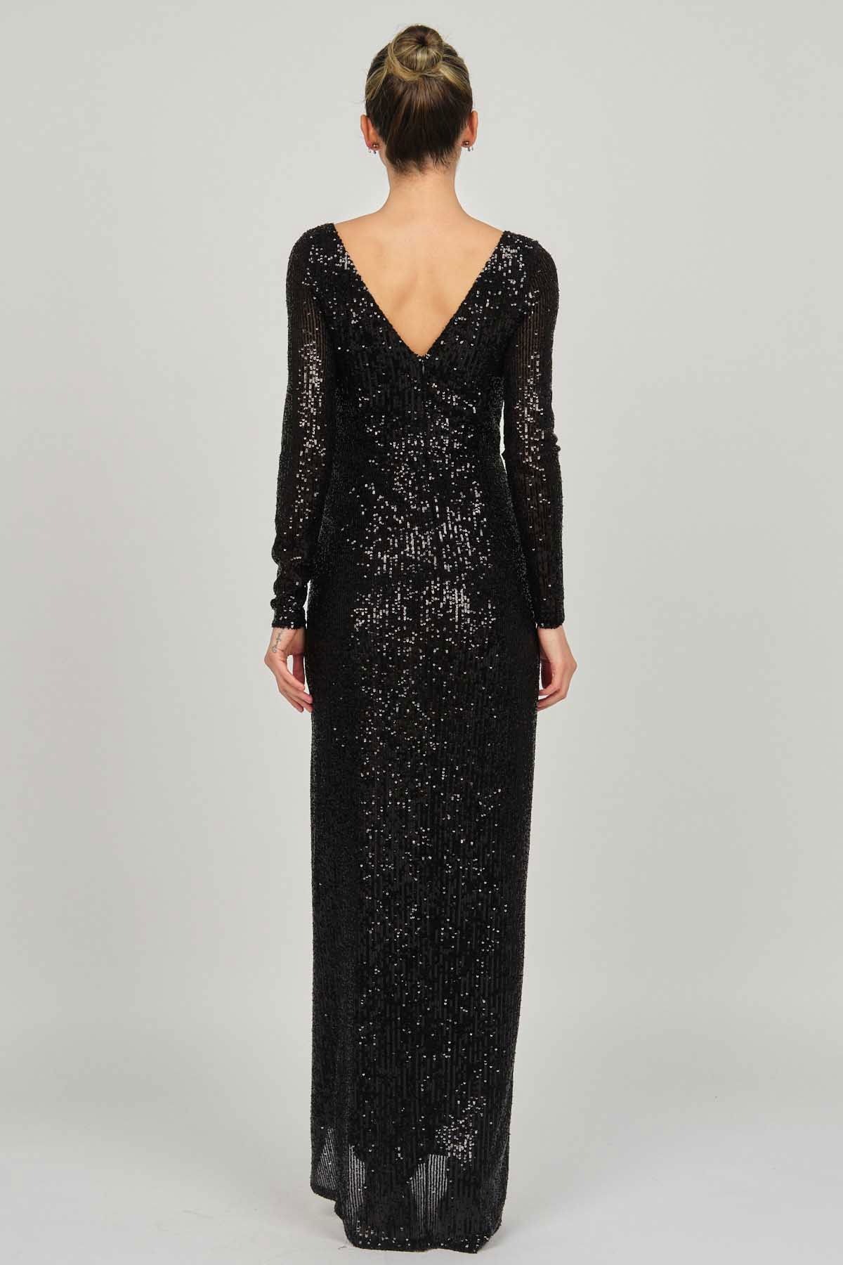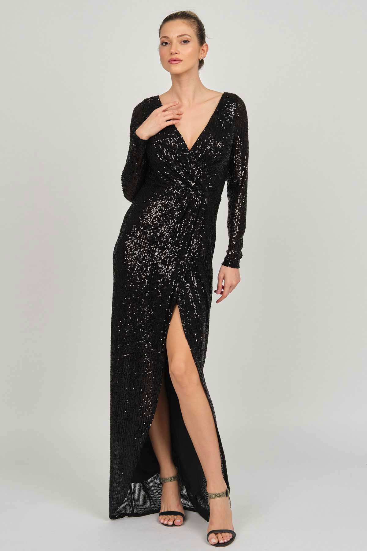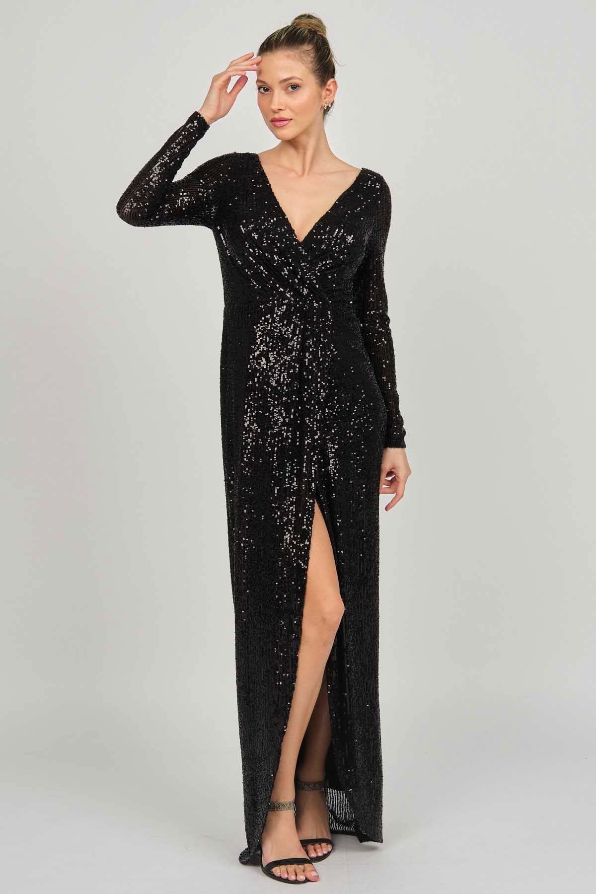 Detay: Uzun kollu, anvelop, astarlı abiye elbise;