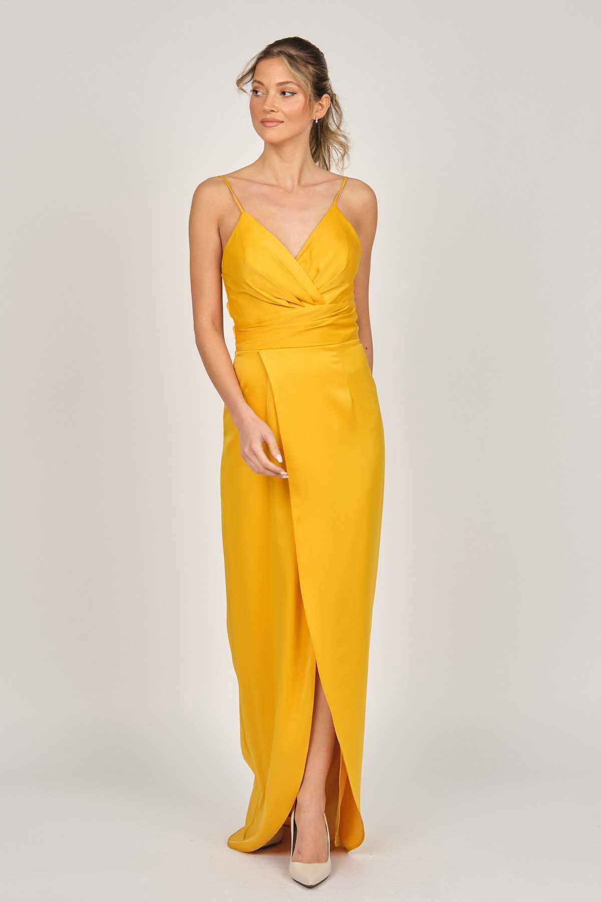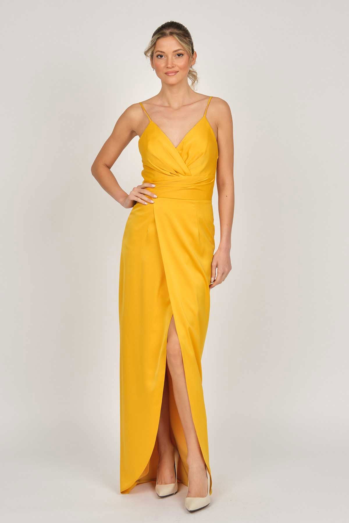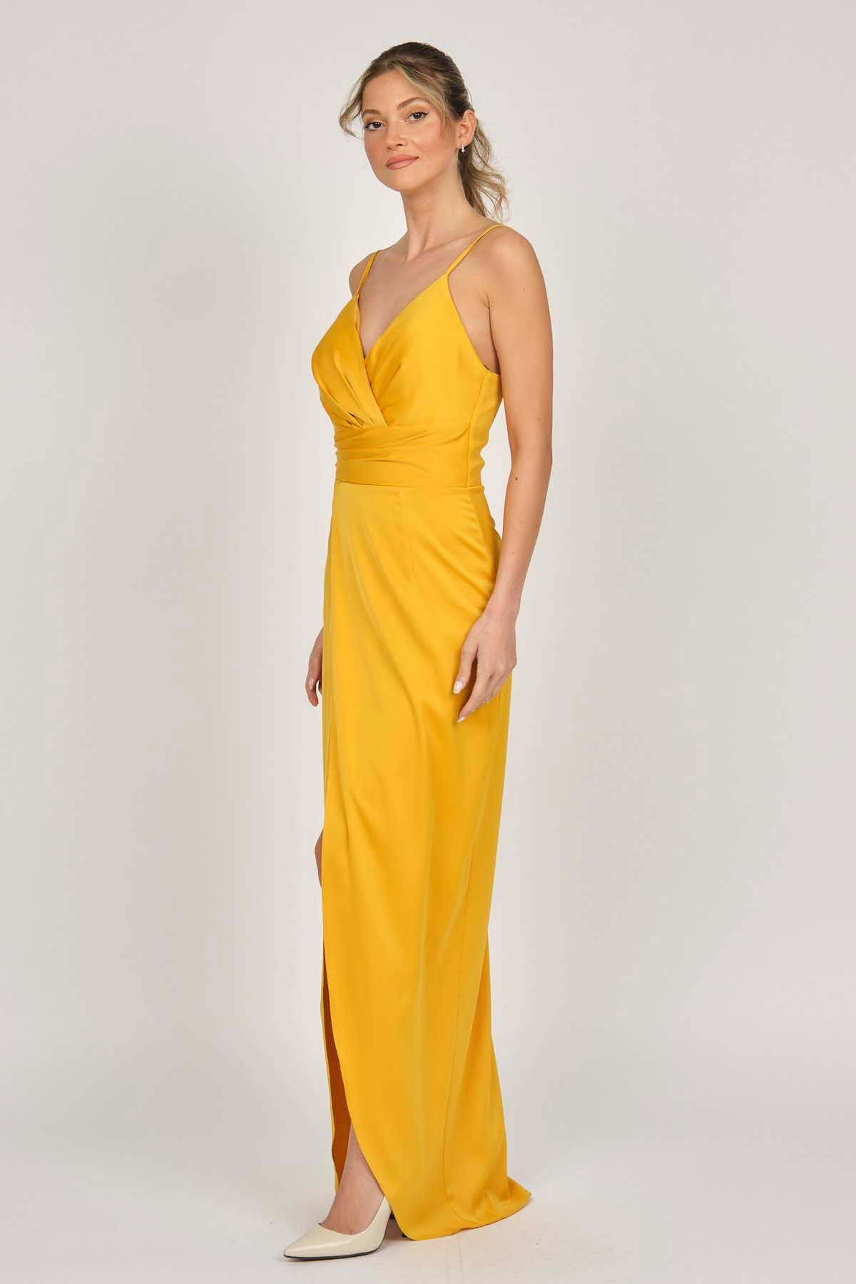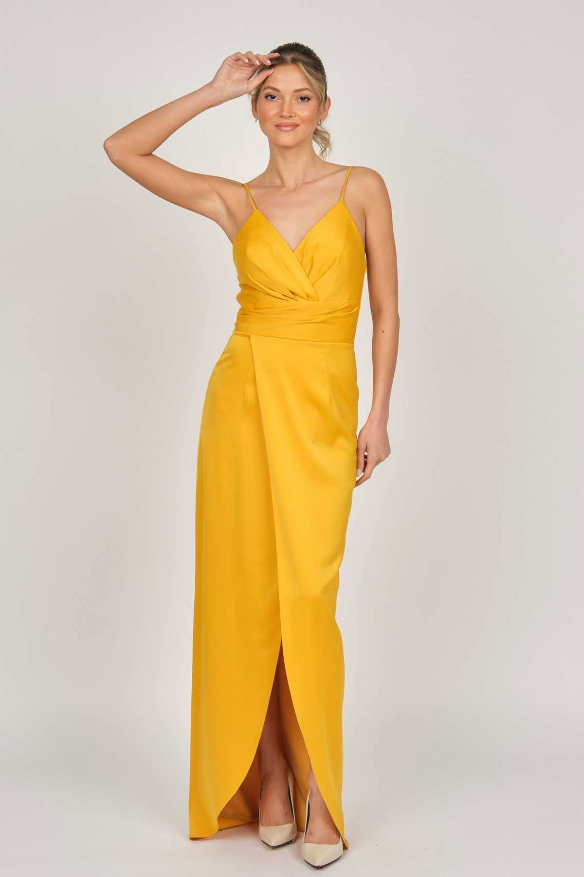 Detay: Askılı, anvelop, astarlı abiye elbise;