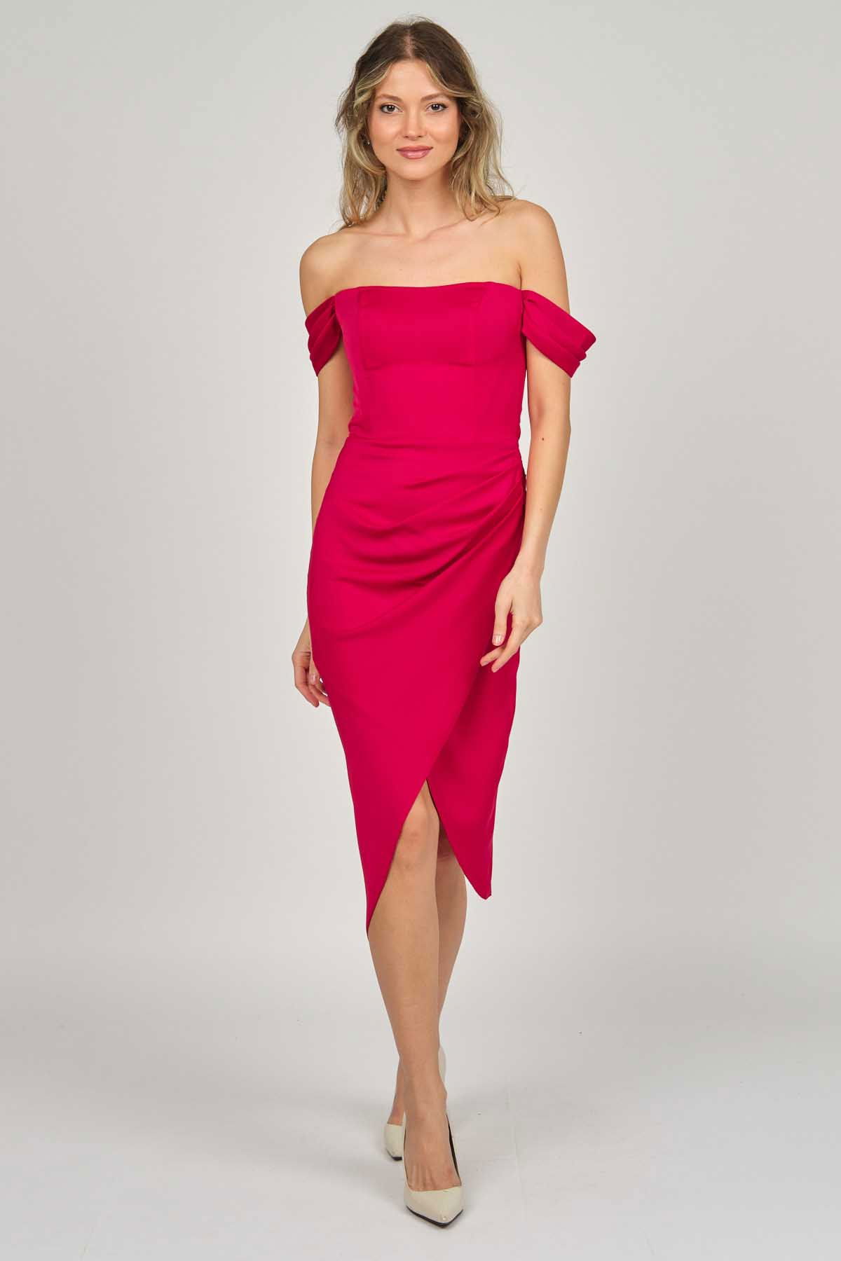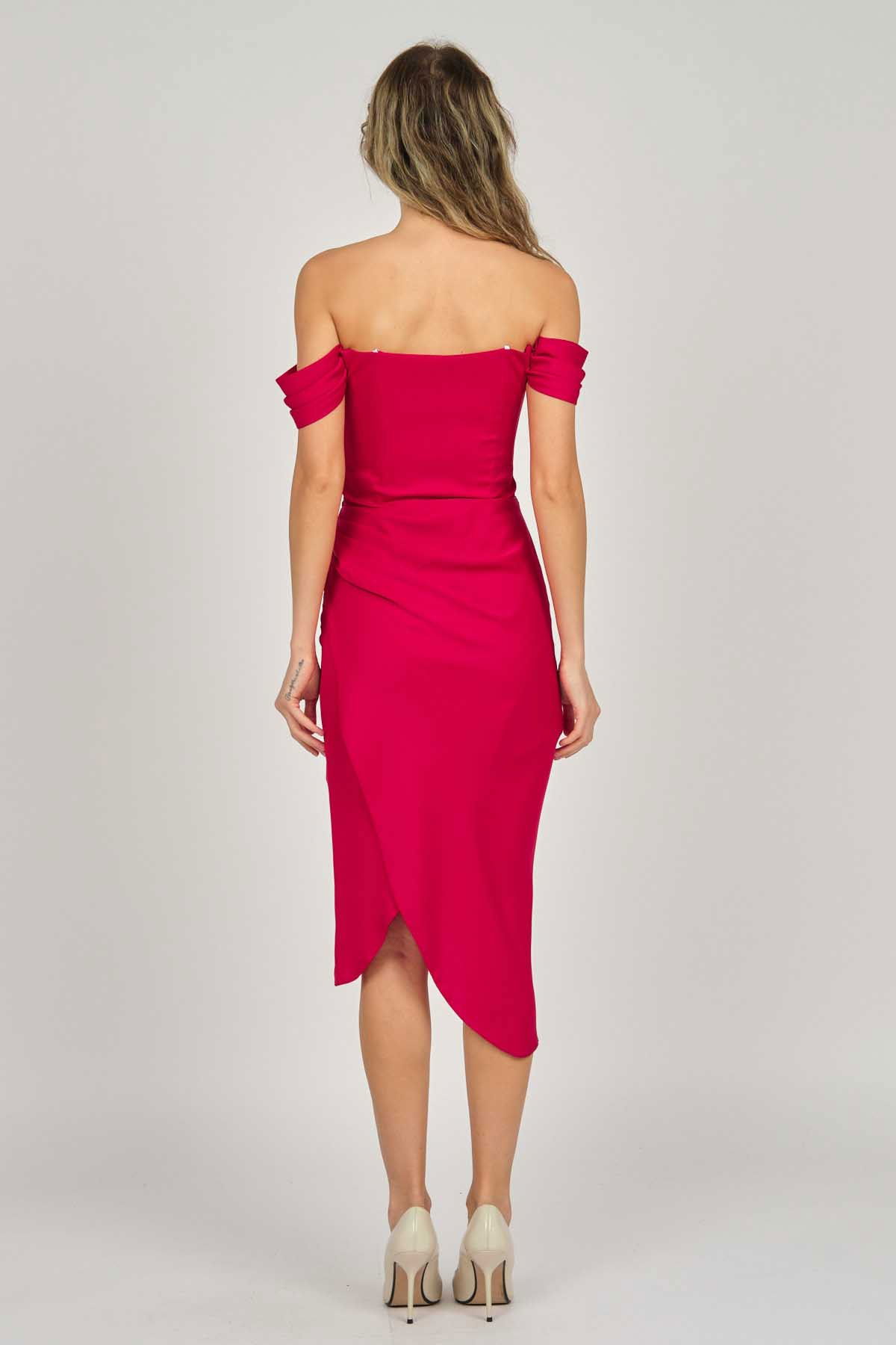 Doridorca Kadın Straplez Abiye Elbise 5924014 Kırmızı