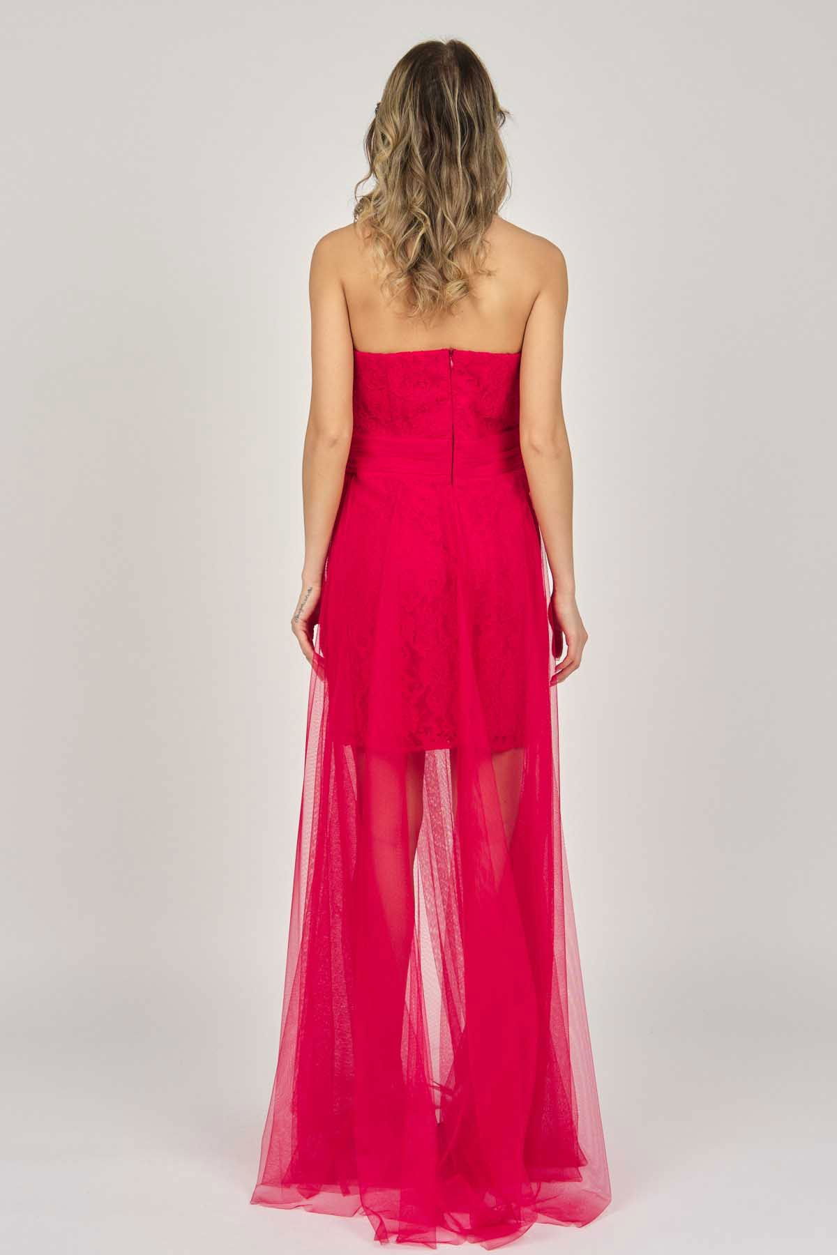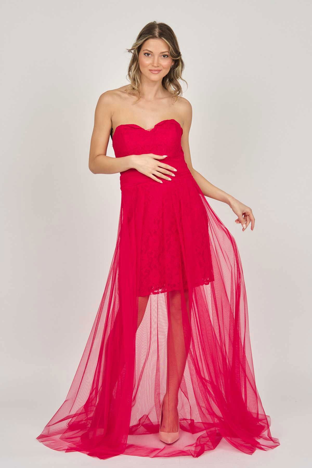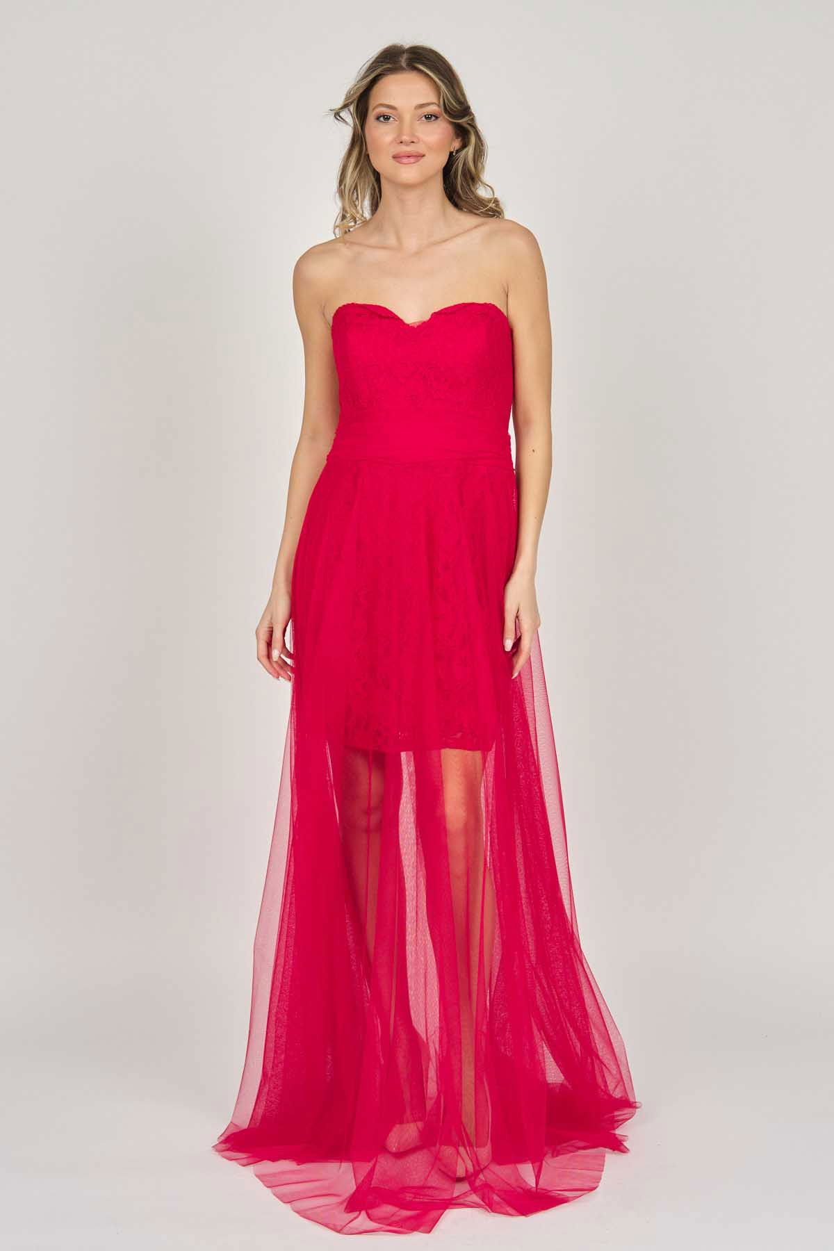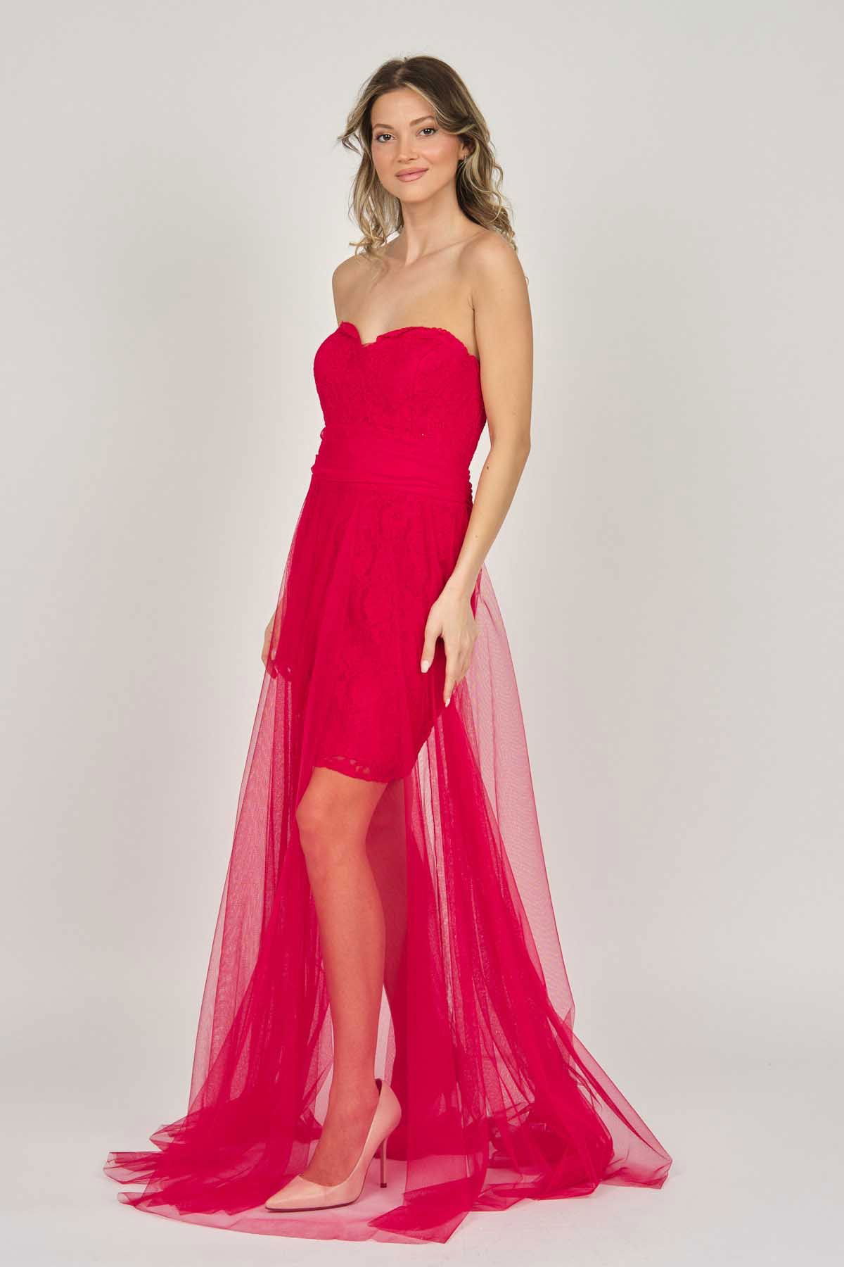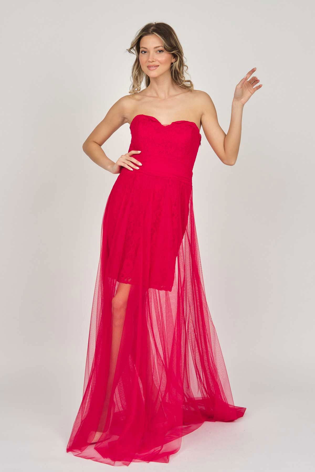 Detay: İçi kısa etek dışı uzun tül, astarlı abiye elbise;