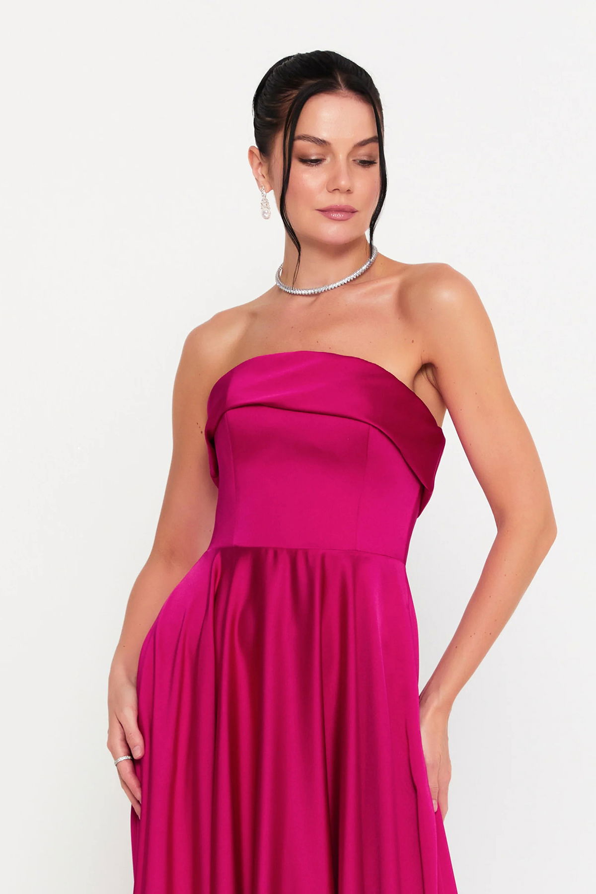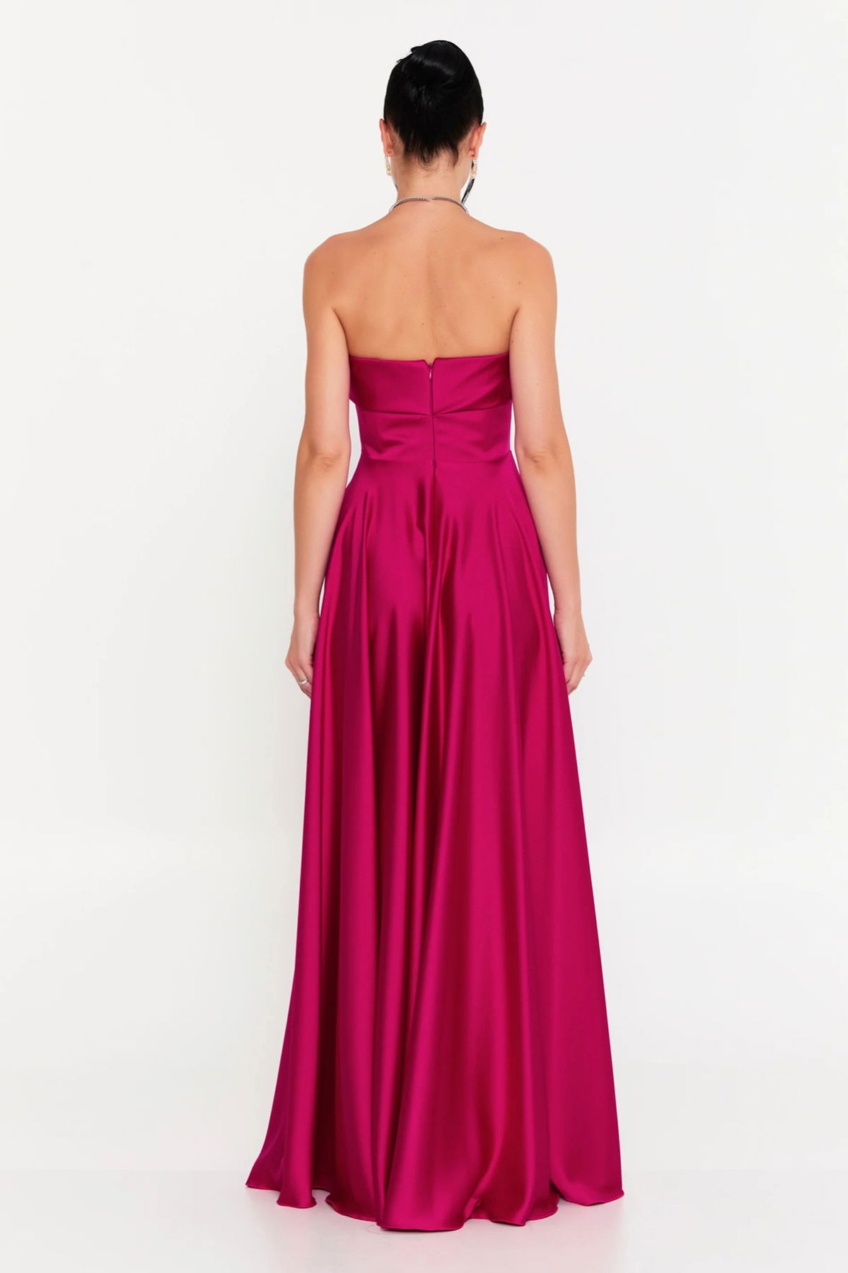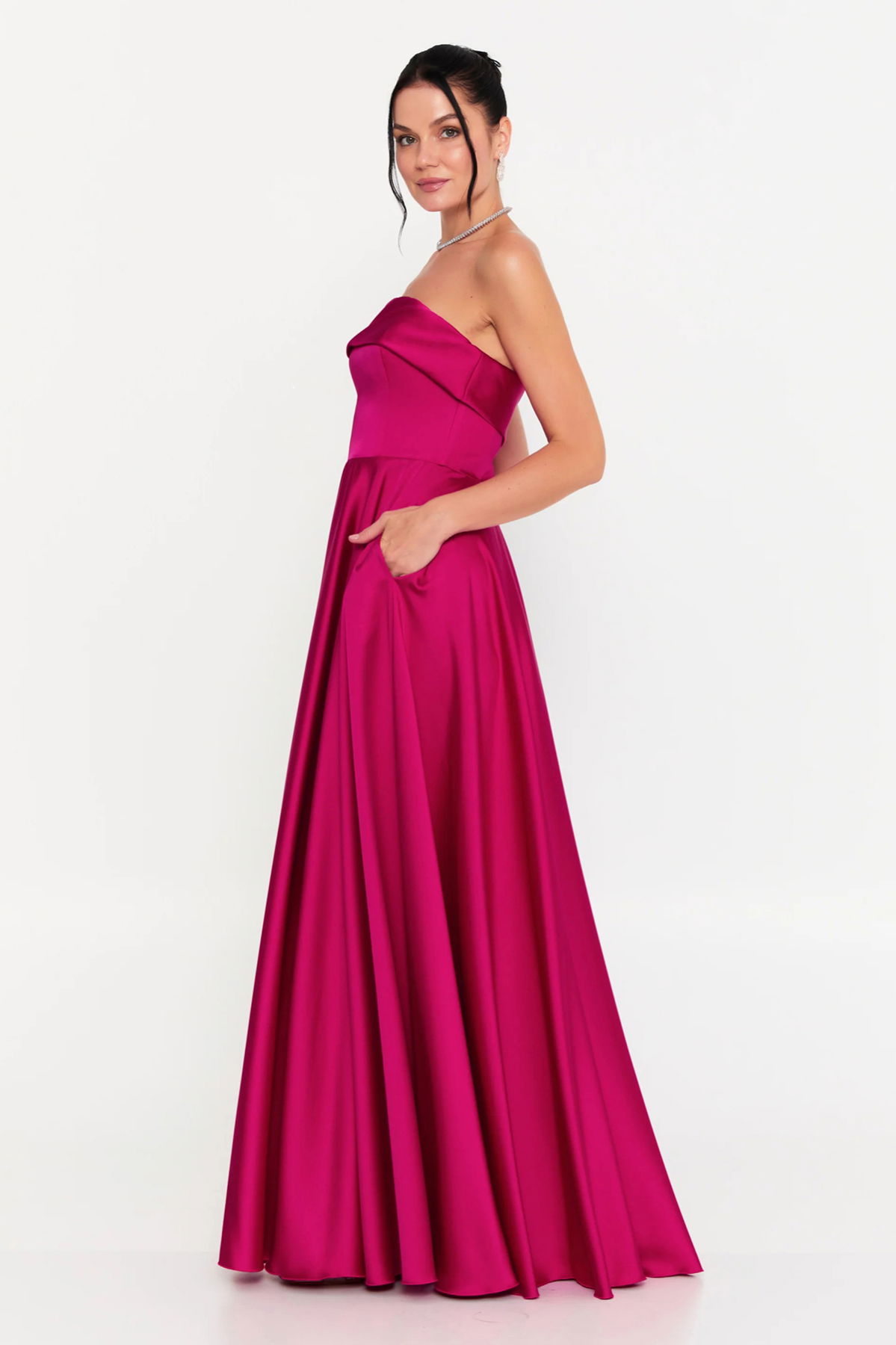 Detay: Saten kumaştan üretilen straplez kloş uzun abiye elbise, akıcı dokusu ve zarif duruşuyla özel davetlerde şıklığı ön plana çıkarır. Kloş formu sayesinde rahat ve feminen bir siluet sunarken sade tasarımıyla zamansız bir elegans sağlar. Astarlı yapısı ve fermuar kapamalı kullanımıyla hem konforlu hem de kusursuz bir duruş sunan bu uzun abiye elbise, şık gecelerin vazgeçilmez parçasıdır;