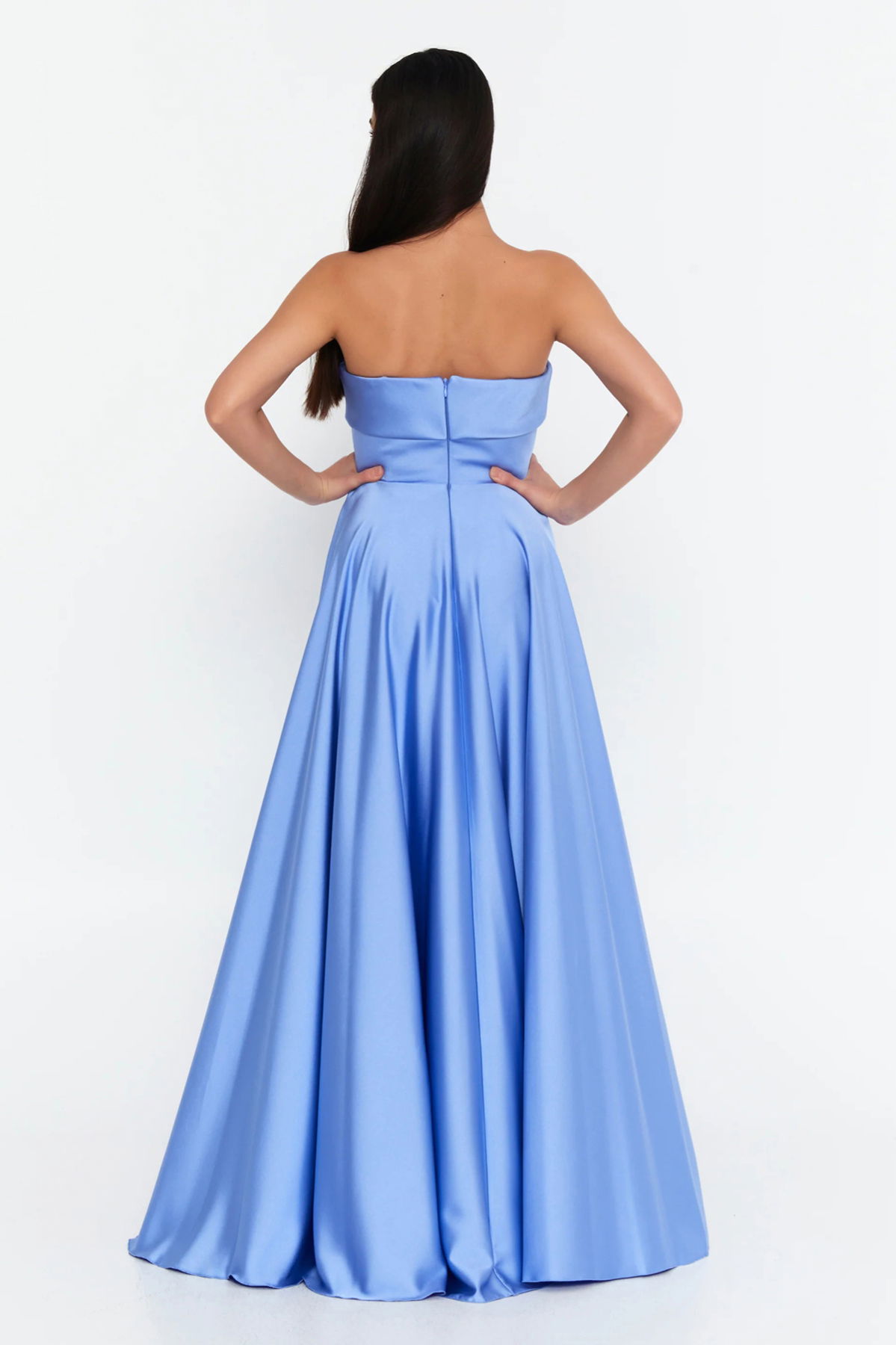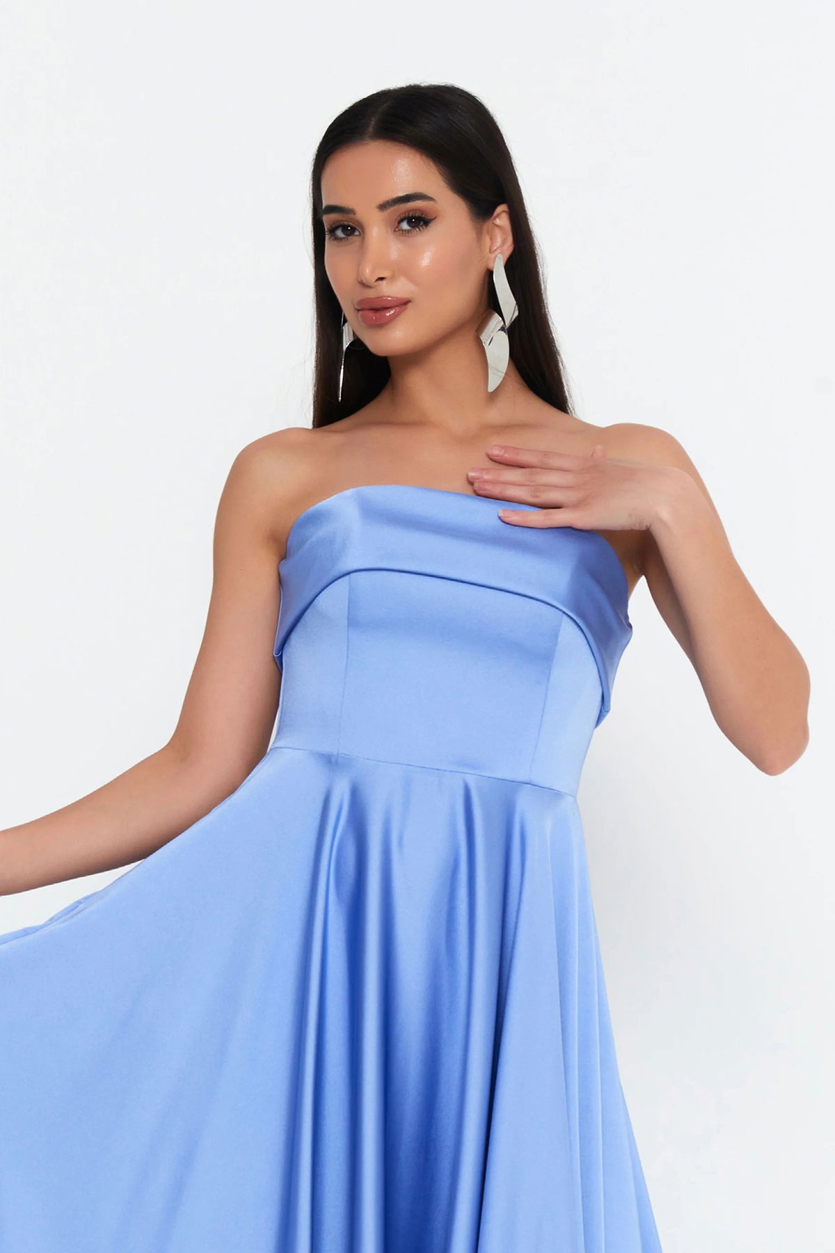 Doridorca Kadın Straplez Kloş Uzun Abiye Elbise 7102 Mavi