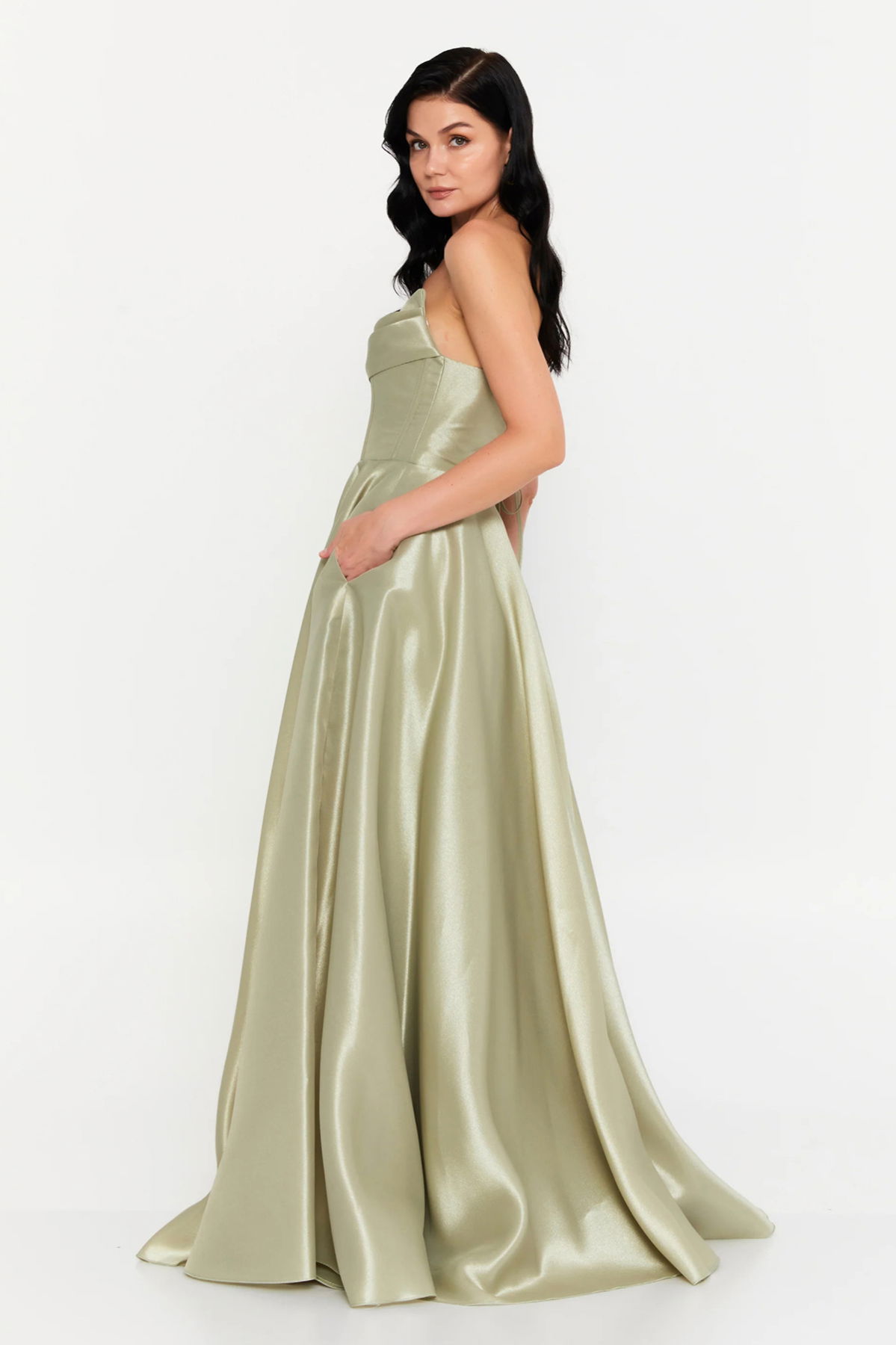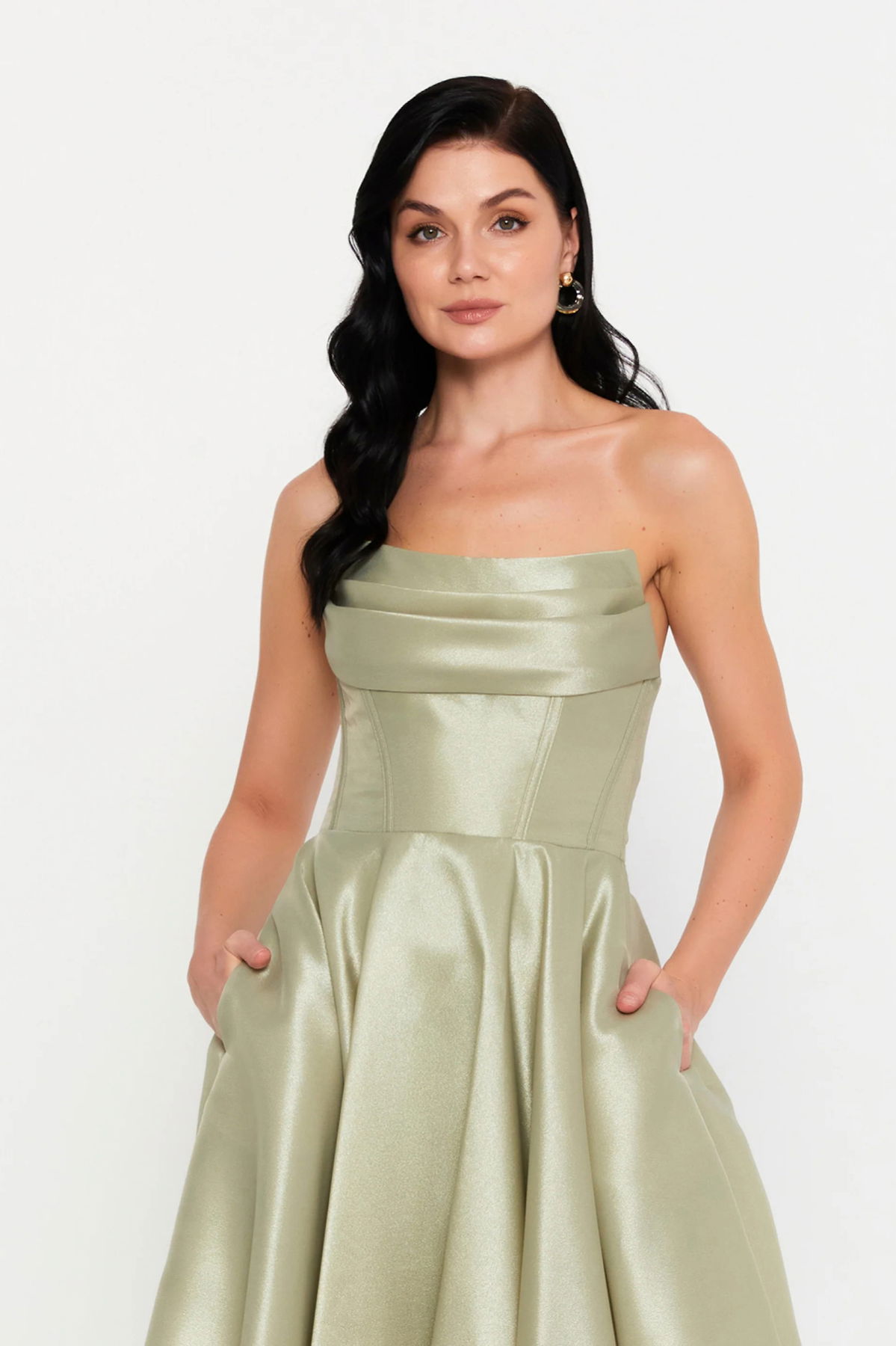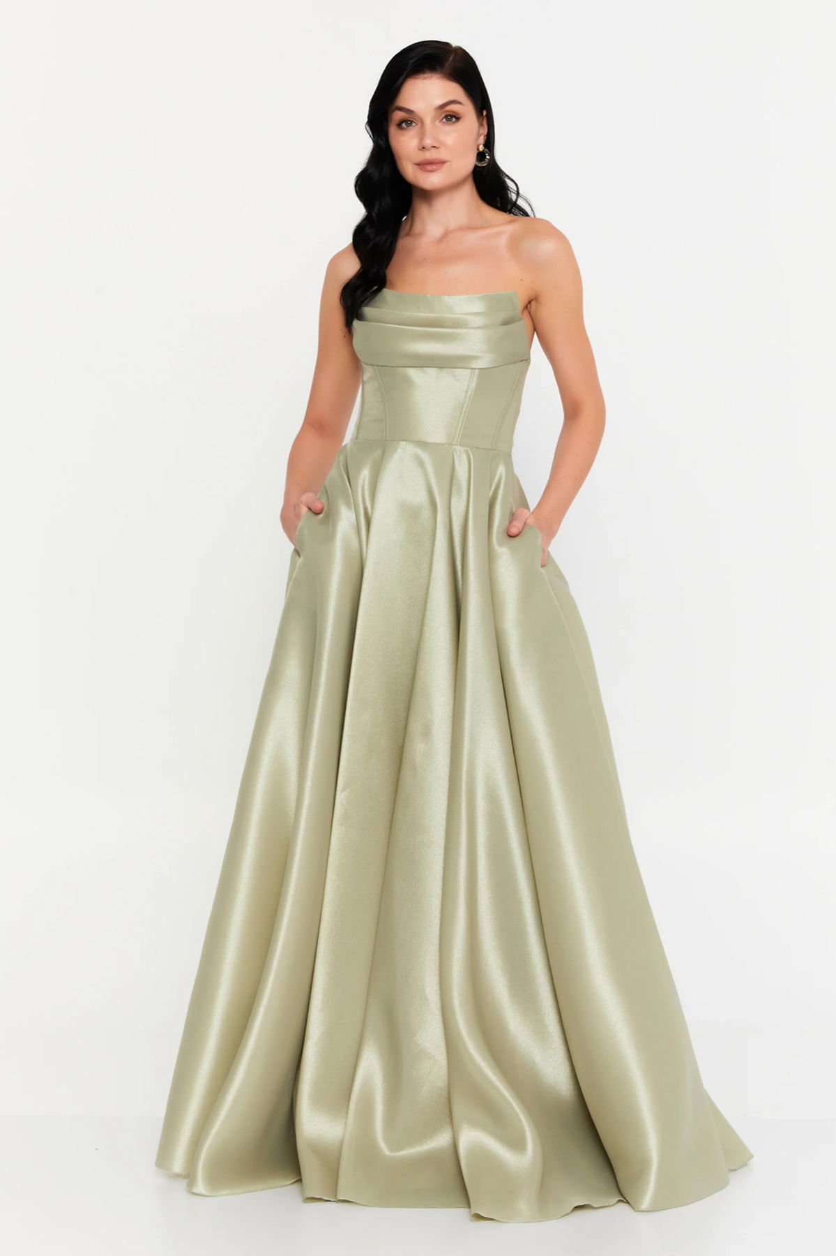Detay: Tafta kumaştan üretilen bu abiye elbise, göğüs pileli ve korseli yapısıyla vücudu zarif şekilde toparlayan şık bir siluet sunar. Çift cepli tasarımı, sırttan ip bağlamalı detayı ve kloş kesimiyle hem modern hem de feminen bir görünüm elde edilir. Astarlı yapısı ve fermuarlı kapaması sayesinde konforlu bir kullanım sunan bu abiye elbise, özel davetler ve şık organizasyonlar için ideal bir tercihtir;
