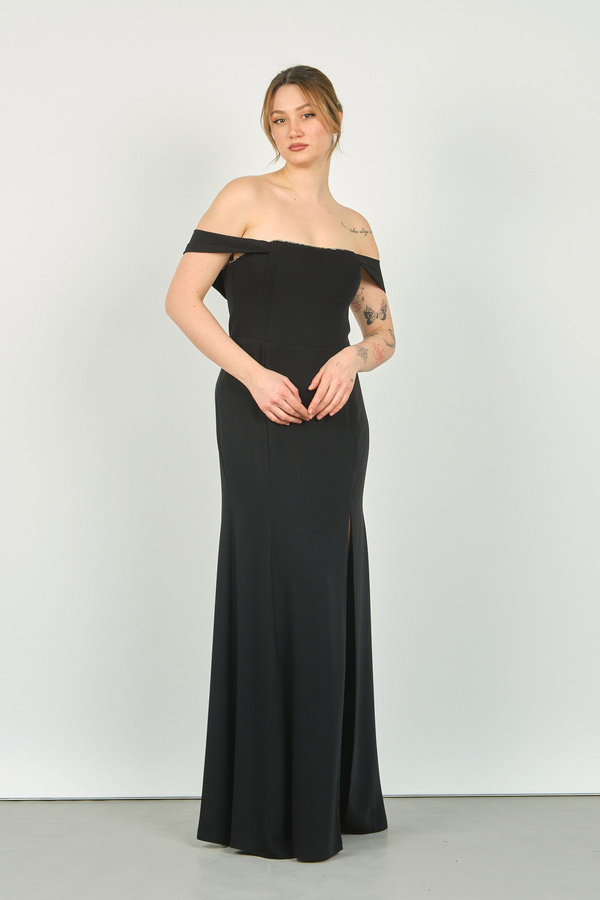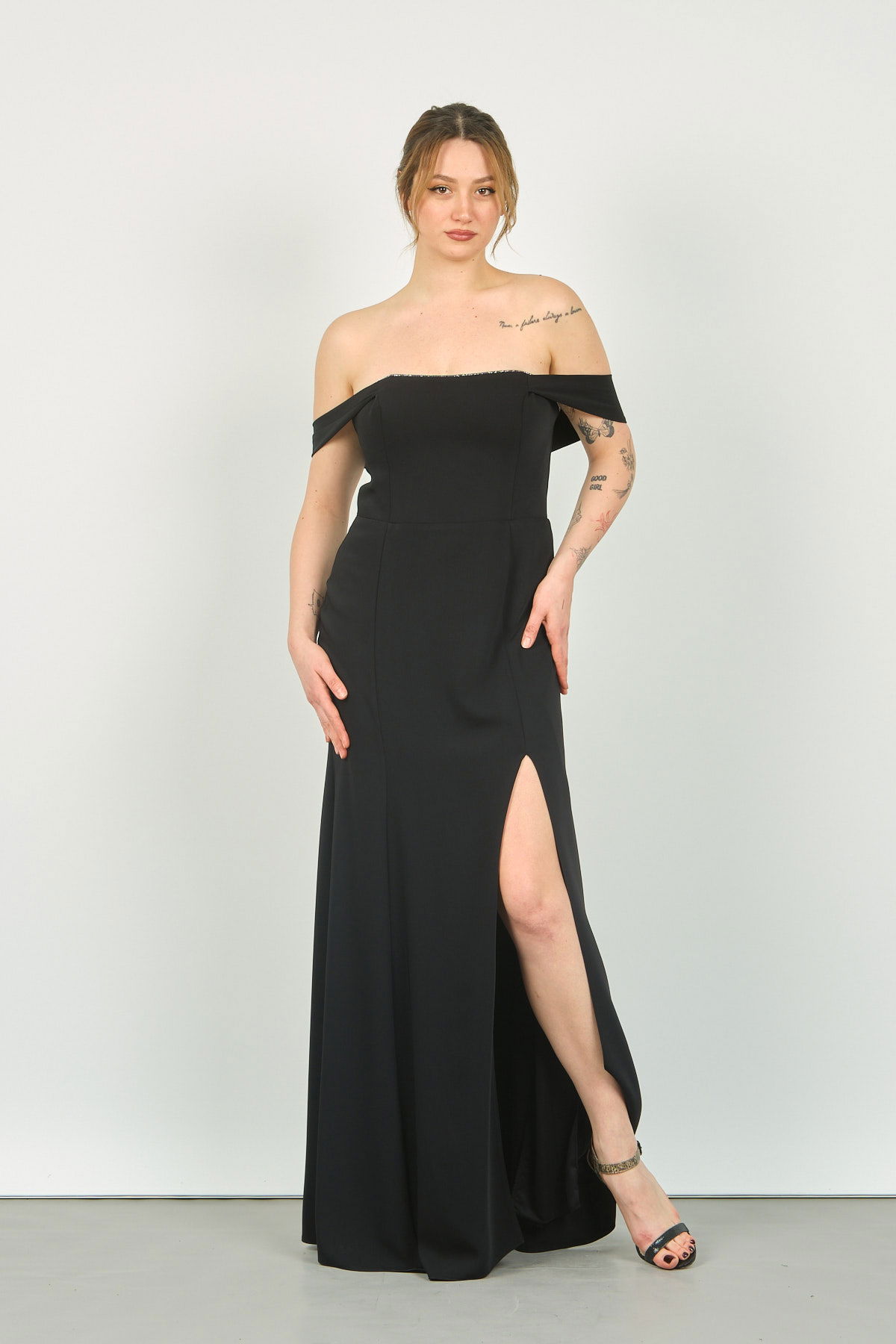Detay: Derin yırtmaçlı, uzun, astarlı abiye elbise;