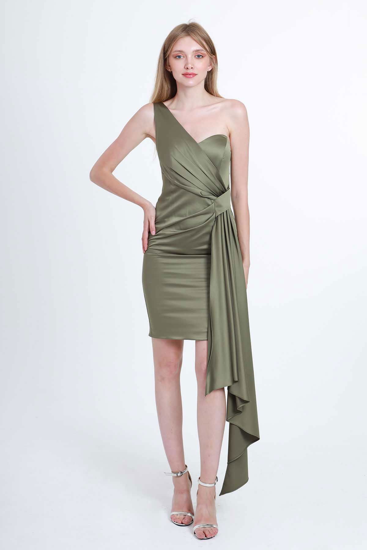 Doridorca Kadın Tek Omuz Abiye Elbise 5924015 Haki