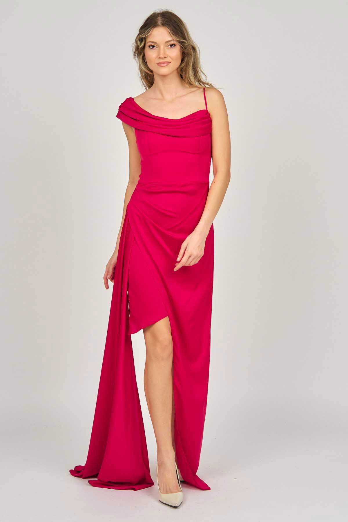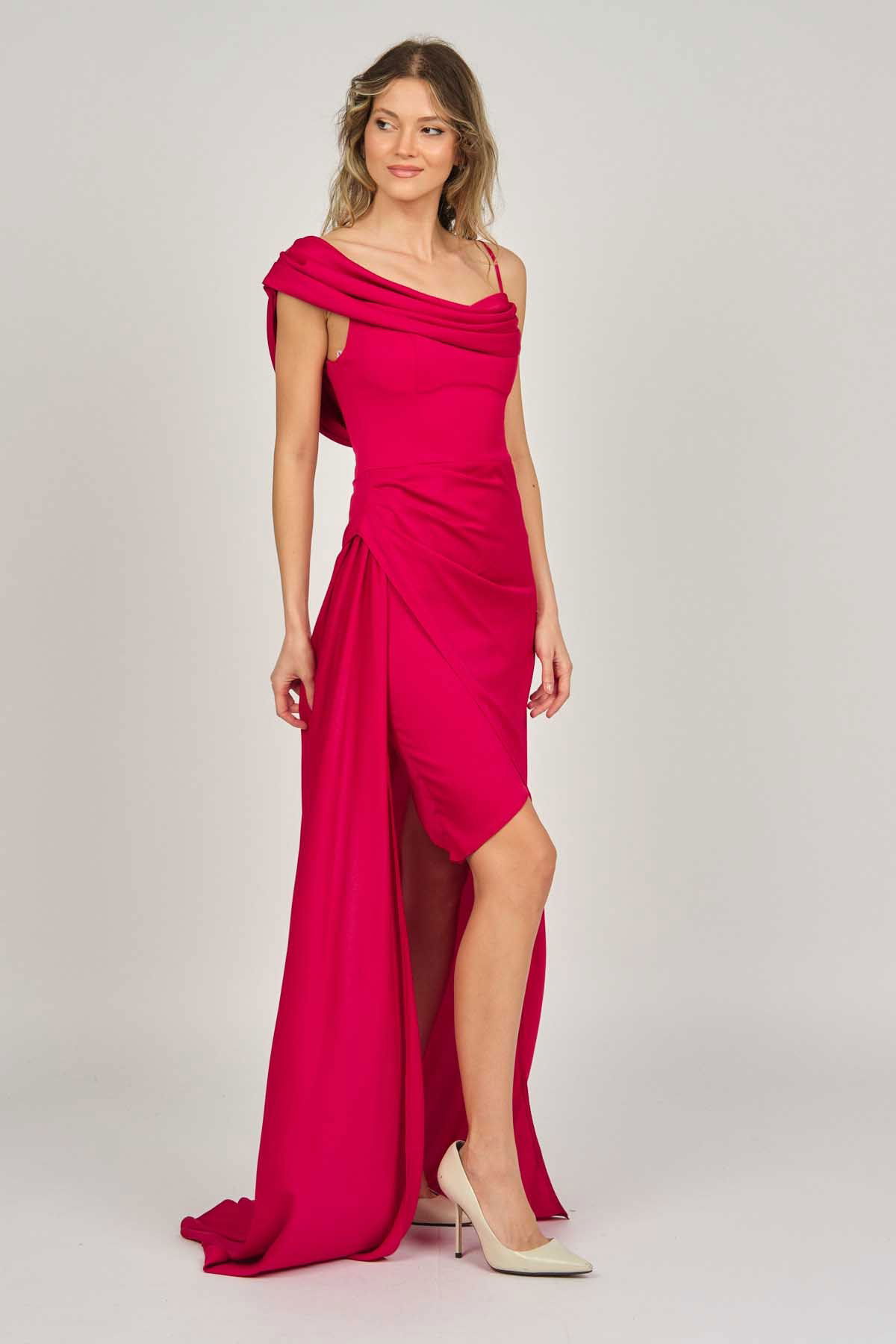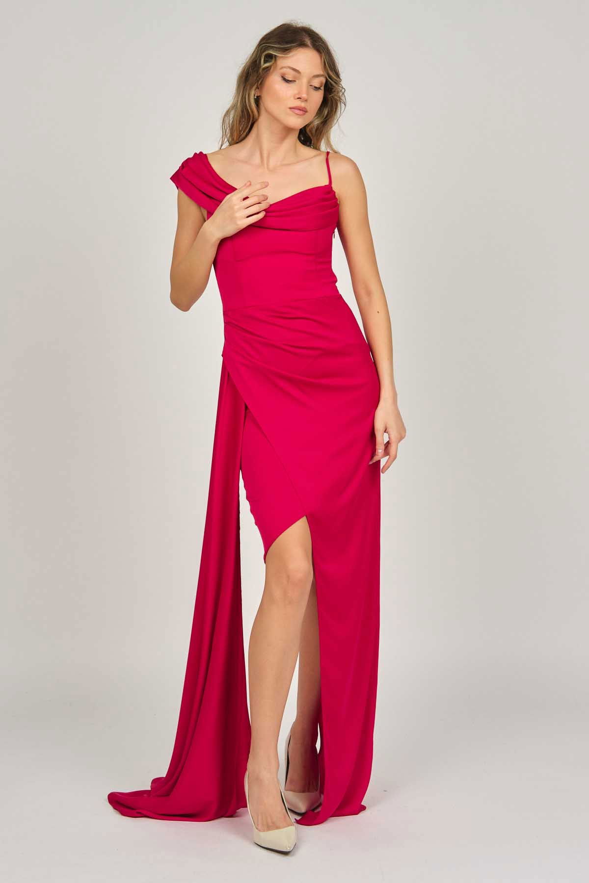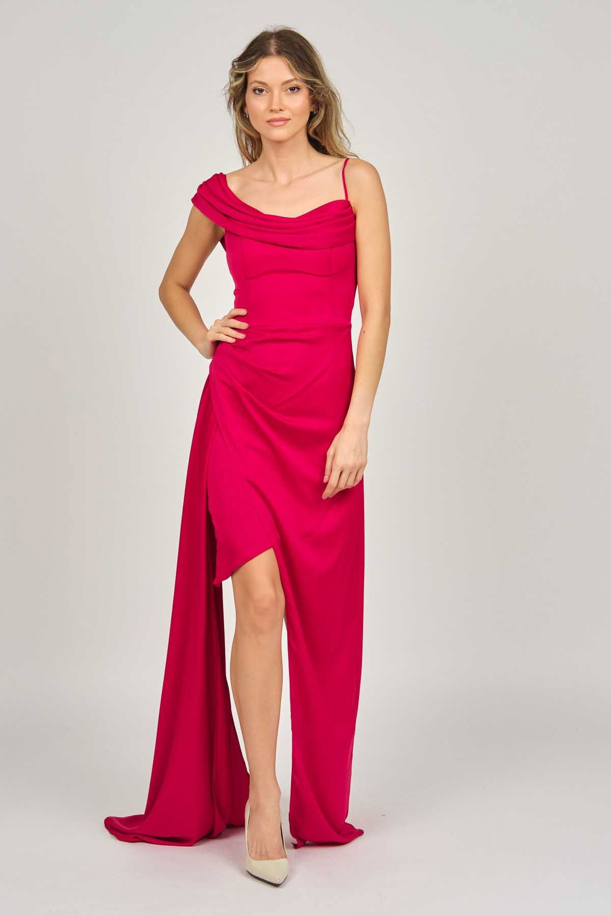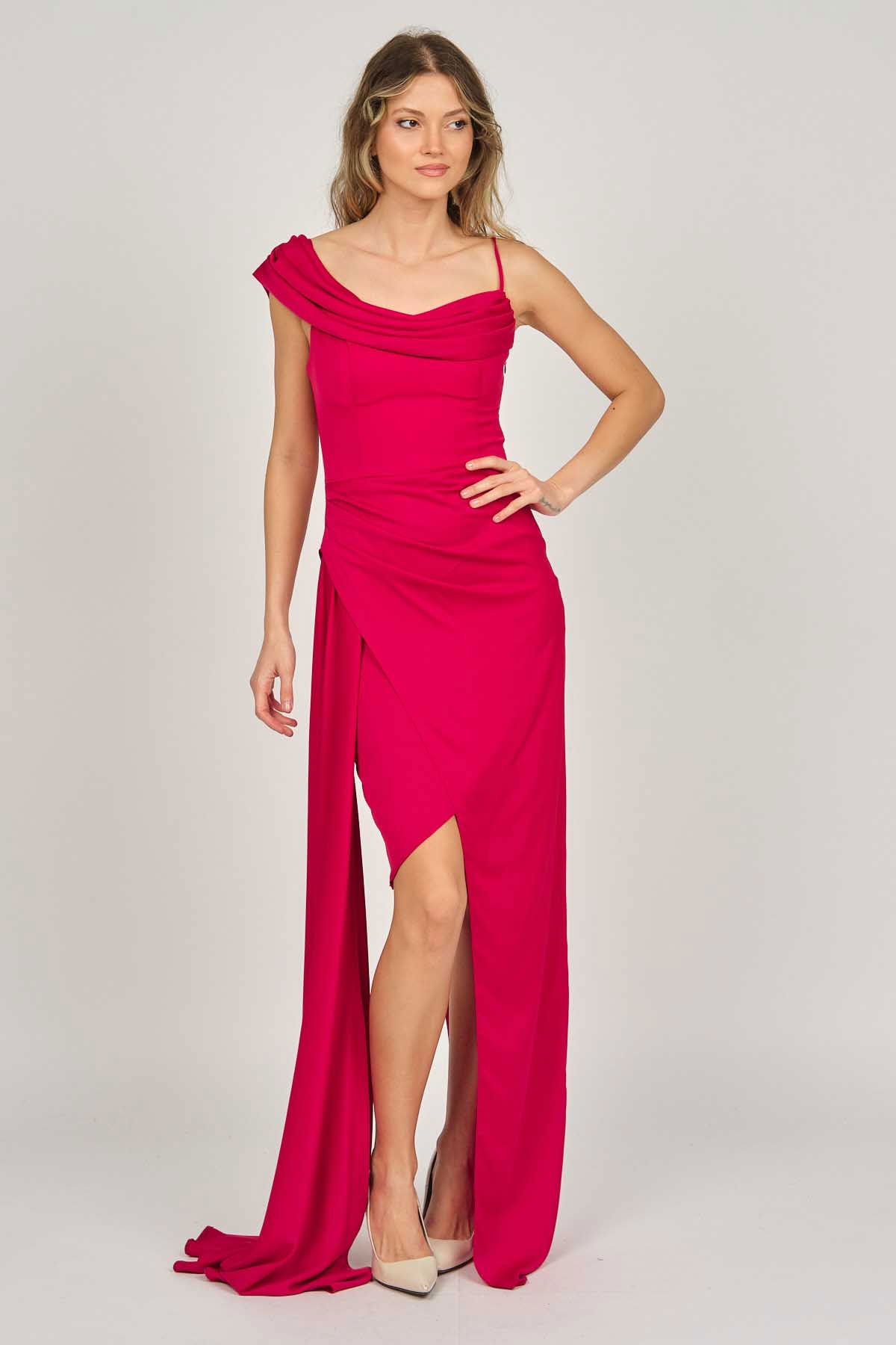 Doridorca Kadın Tek Omuz Detaylı Abiye Elbise 5924030 Kırmızı