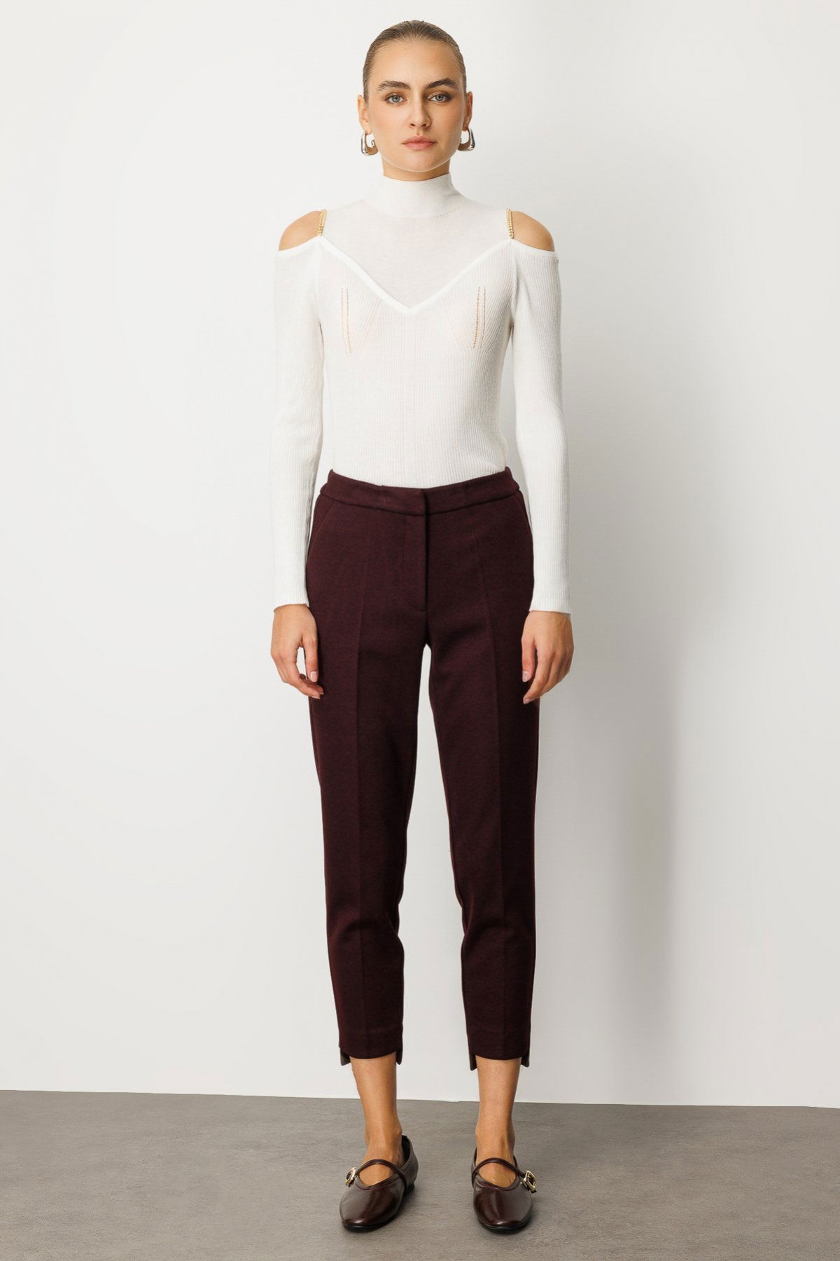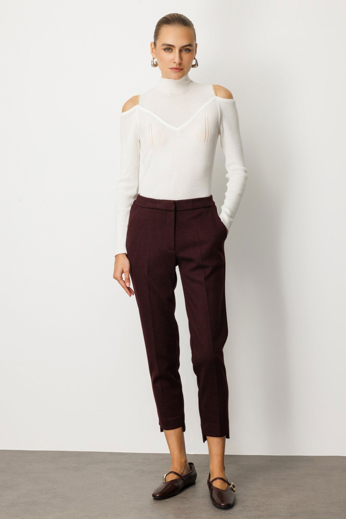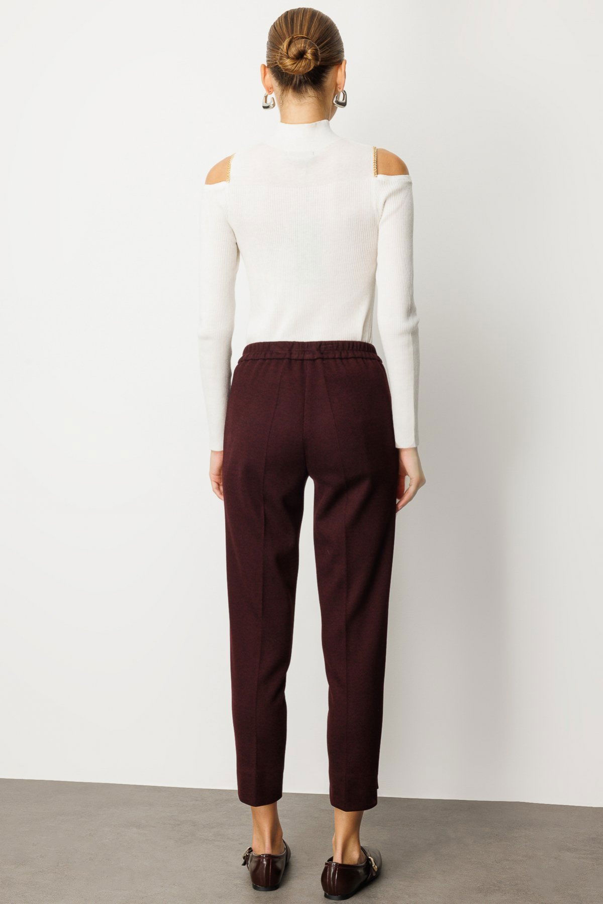 Ekol Kadın Balıksırtı Desenli Dar Paça Pantolon 5189 Bordo