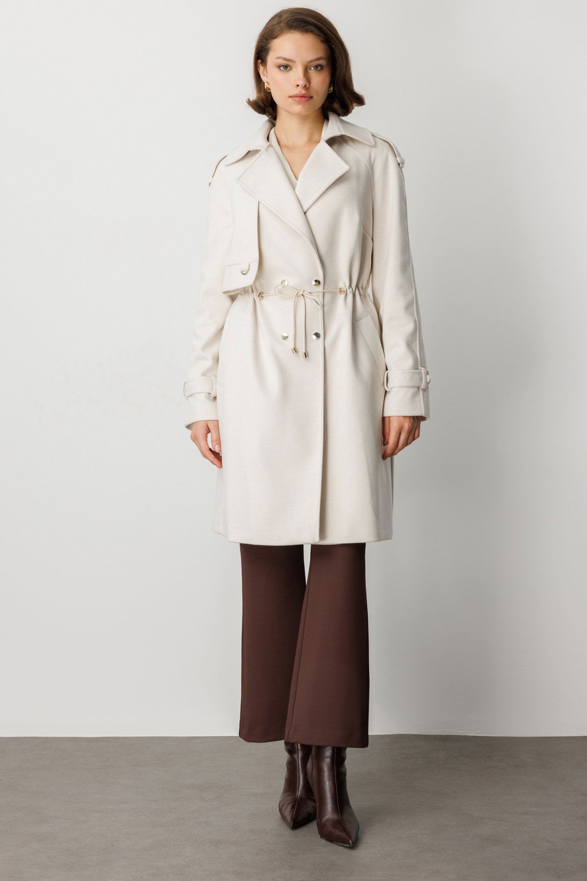 Ekol Kadın Beli Bağcıklı Apoletli Kaban 6037 Bej