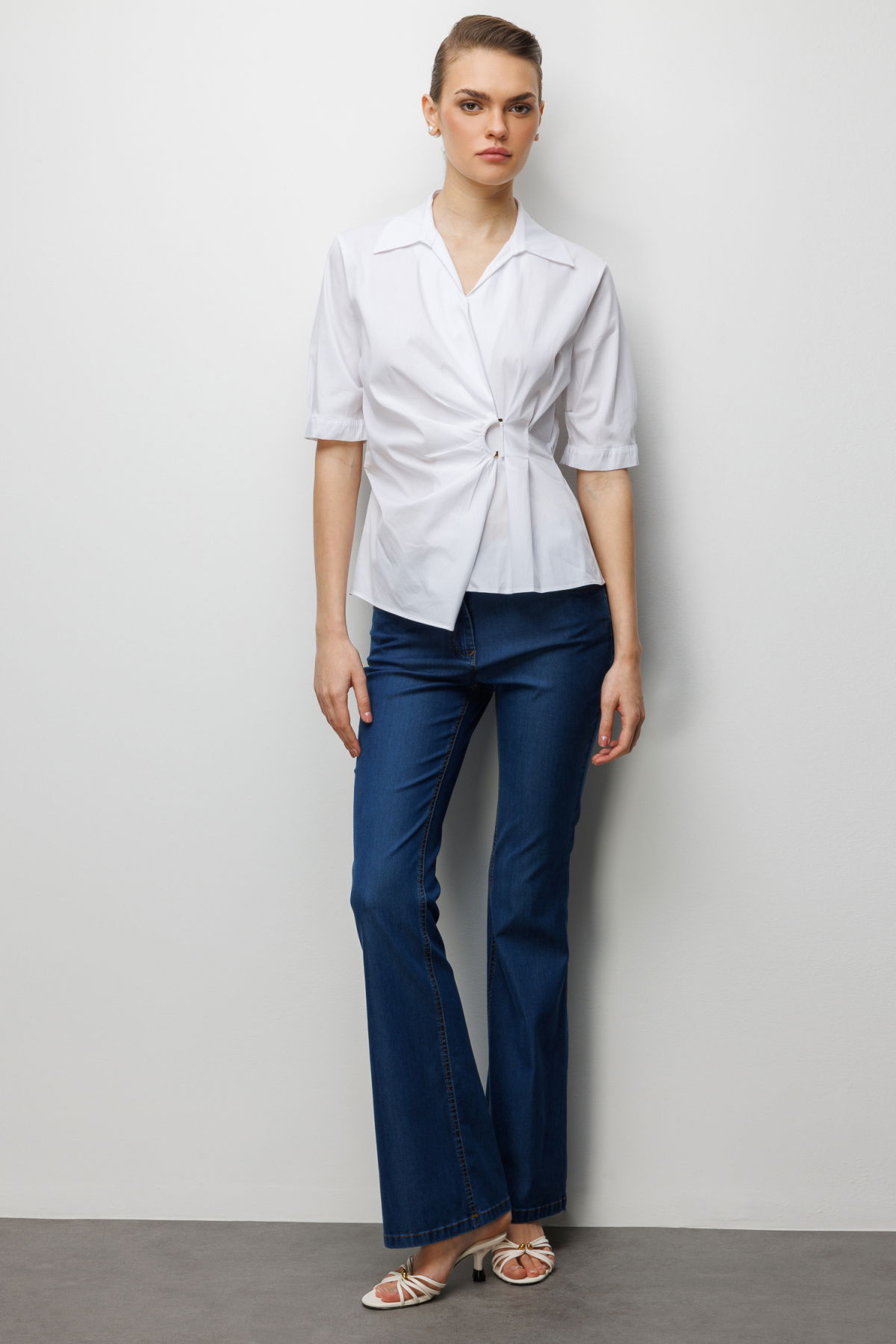 Detay: Pamuk kumaştan üretilen, astarsız yapısıyla hafiflik sunan polo yaka kısa kollu çıt çıt kapamalı bluz, yaz aylarında hem şıklığı hem de rahatlığı bir arada yaşatır. Nefes alabilen doğal dokusu sayesinde gün boyu konfor sağlarken, modern tasarımıyla günlük kombinlerden ofis stiline kadar geniş kullanım alanı sunar. Pratik çıt çıt kapamasıyla zamansız bir parça olarak gardırobunuzun vazgeçilmezleri arasında yer alır;