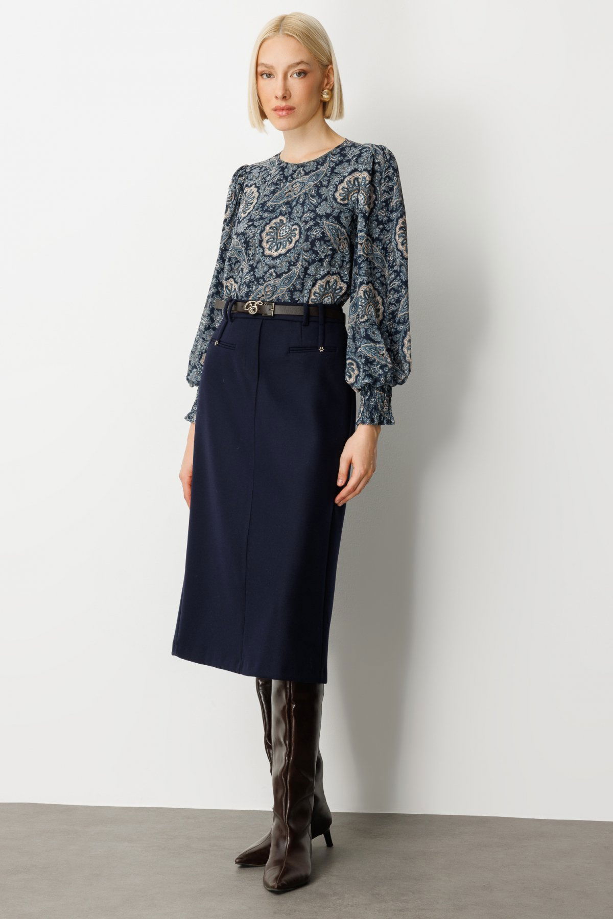 Detay: Bu etek modeli, dokuma kumaş tipiyle yapılandırılmış ve şık bir duruş sunarken, astarsız tasarımı sayesinde hafif ve rahat bir kullanım sağlar. Beldeki kemer detayı, vücut hatlarını vurgulayarak stilinize zarif bir dokunuş katarken, fermuarlı kapama şekli pratiklik ve modernlik sunar. Günlük kombinlerden ofis stiline kadar kolayca uyum sağlayan bu etek, sade ama etkileyici bir görünüm arayanlar için ideal bir tercihtir;