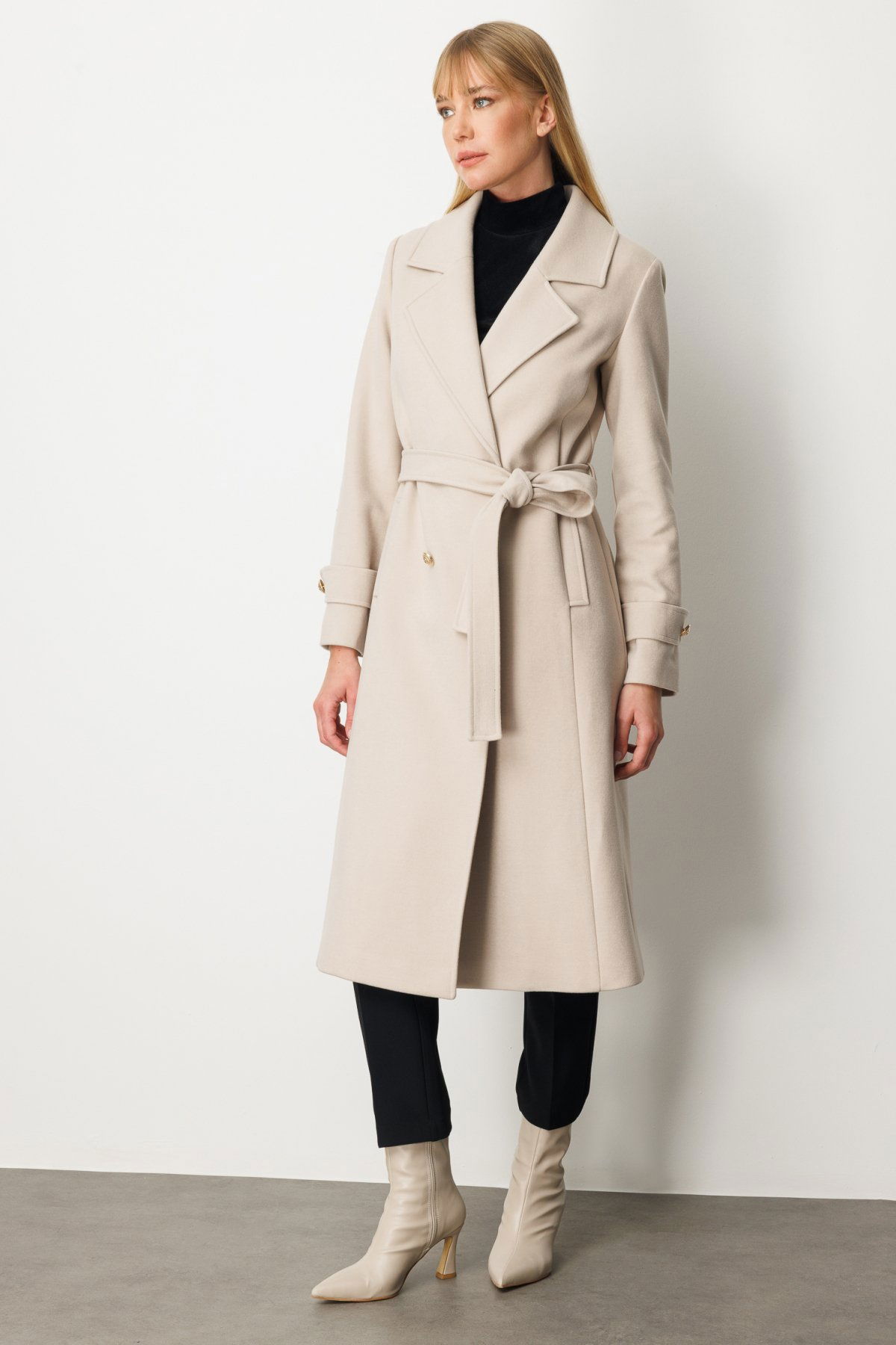 Detay: Dokuma kumaştan üretilen bu astarlı kalın kaban, kruvaze yaka ve uzun kollu tasarımıyla klasik zarafeti güçlü bir siluetle buluşturur. Düğmeli kapama sistemi ve kuşak detayı, vücut hatlarını vurgularken şıklığı ön plana çıkarır. Yan cepleriyle fonksiyonelliği artıran bu model, soğuk havalarda hem sıcak tutar hem de stil sahibi bir görünüm sunar. Kış gardırobunun vazgeçilmez parçalarından biri olmaya adaydır;