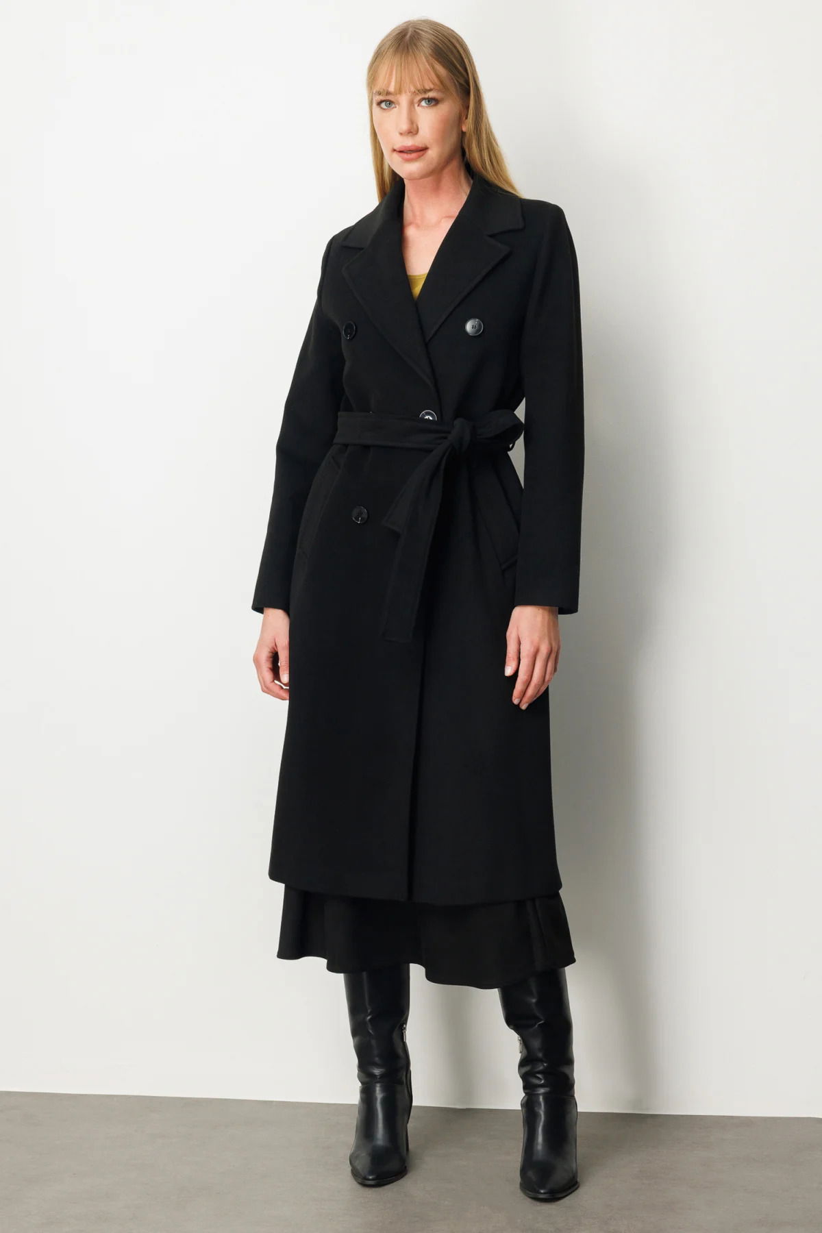 Detay: Dokuma kumaştan üretilmiş, astarlı ve kruvaze yakalı bu uzun kollu kalın kaban, düğmeli kapama ve kuşak detayıyla şıklığı fonksiyonellikle buluşturur. Yan cepleriyle pratik kullanım sunarken, klasik kesimi sayesinde hem günlük hem de özel kombinlerde rahatlıkla tercih edilebilir. Soğuk havalarda stilinizi tamamlayacak bu kuşaklı kaban, gardırobunuzun güçlü dış giyim parçalarından biri olmaya adaydır;