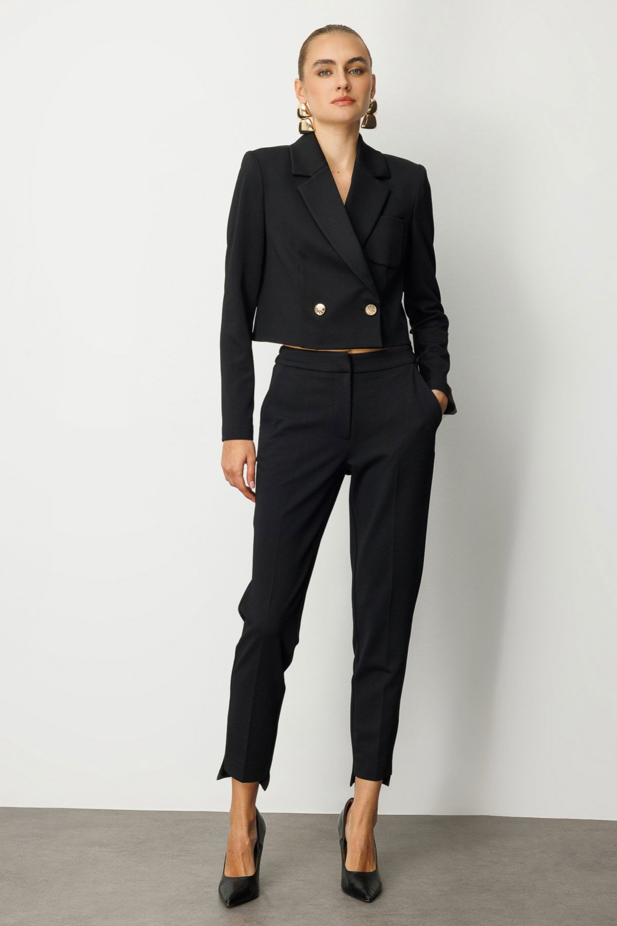 Detay: Dokuma kumaştan üretilmiş, astarsız ve lastikli bel tasarımıyla konforu ön plana çıkaran bu dar paça pantolon, fermuarlı kapama ve yan cep detaylarıyla hem şık hem de işlevsel bir kullanım sunar. Günlük stilinize modern bir dokunuş katarken, esnek yapısıyla hareket özgürlüğü sağlar. Hem casual kombinlerde hem de ofis stilinde rahatlıkla tercih edilebilecek bu pantolon, gardırobunuzun tamamlayıcı parçalarından biri olmaya adaydır;
