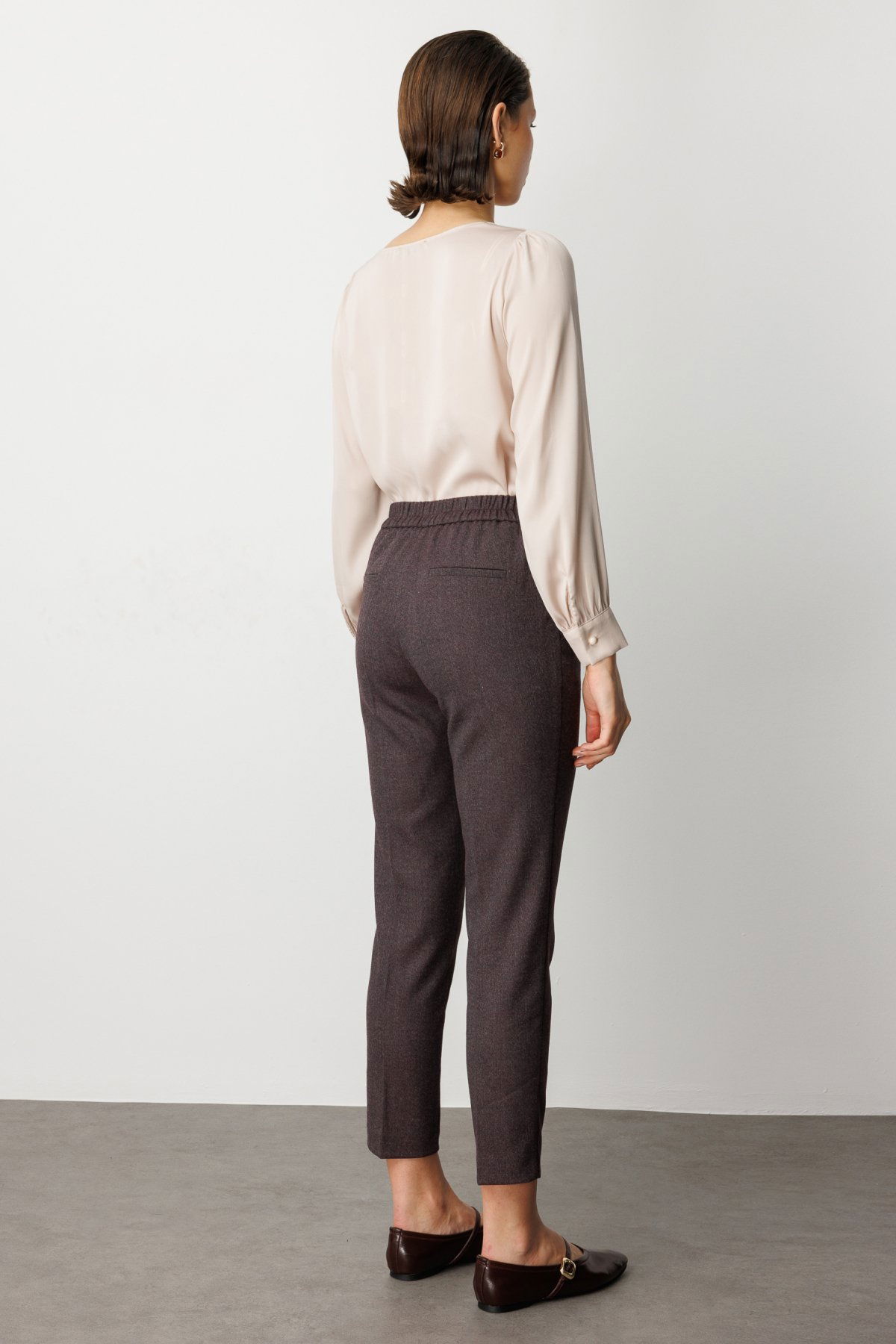 Detay: Bu dar paça pantolon, dokuma kumaşıyla şık ve düzgün bir siluet sunarken lastikli beli sayesinde gün boyu konforlu bir kullanım sağlar. Fermuarlı kapama detayı pratiklik katarken, yan cepleriyle fonksiyonelliği artırır. Hem günlük stilinize hem de rahat kombinlere uyum sağlayan bu pantolon, modern ve sade tasarımıyla öne çıkar;