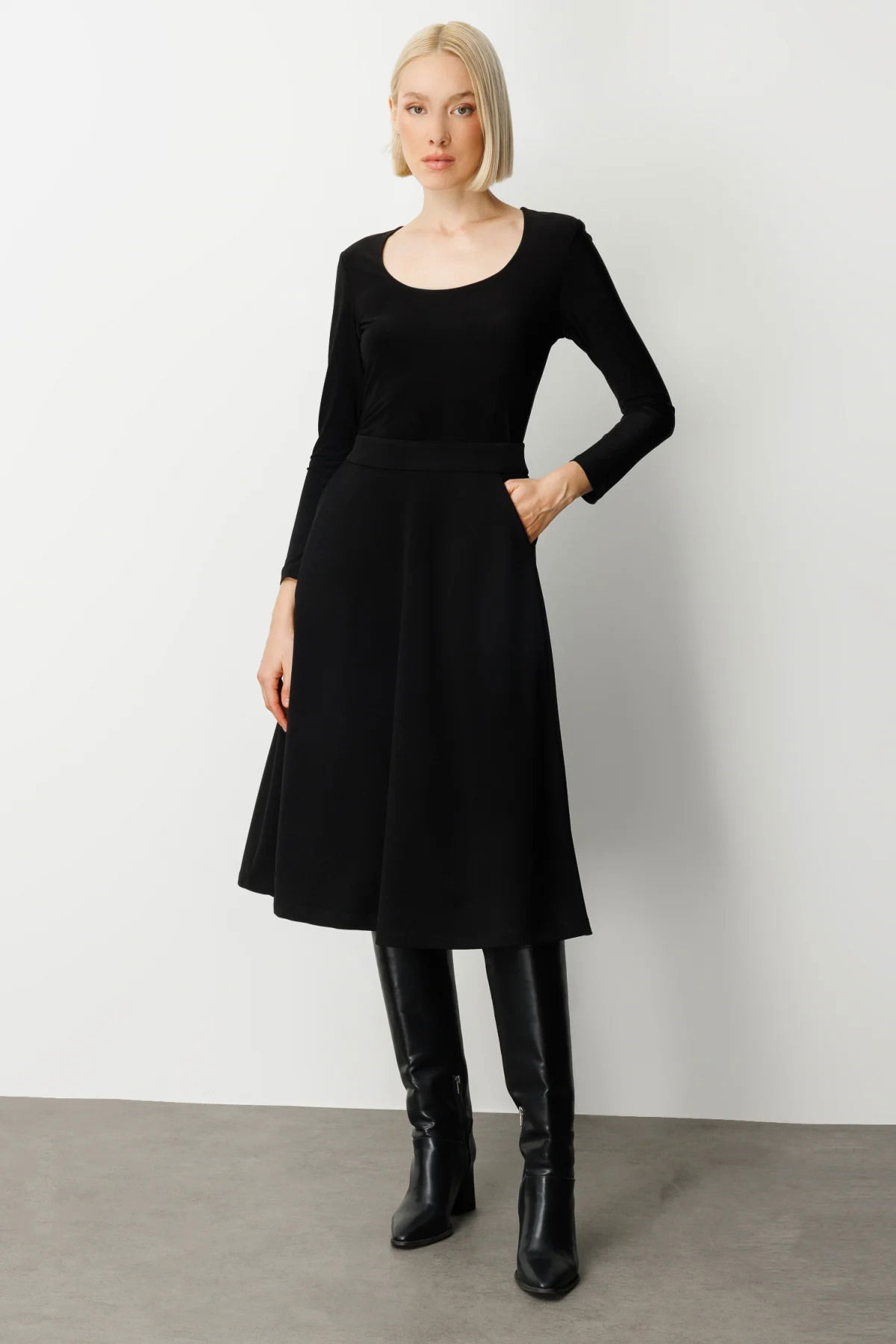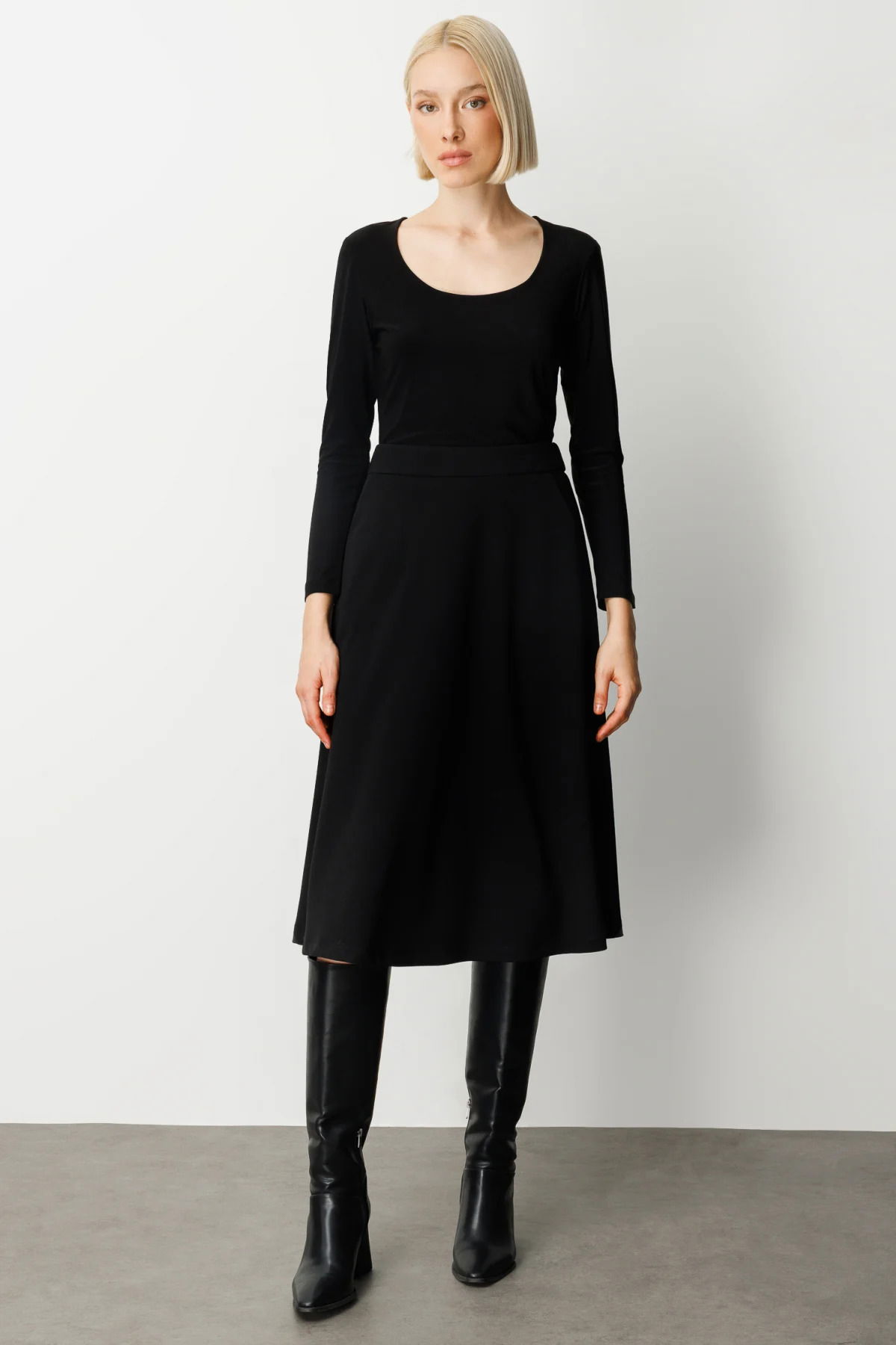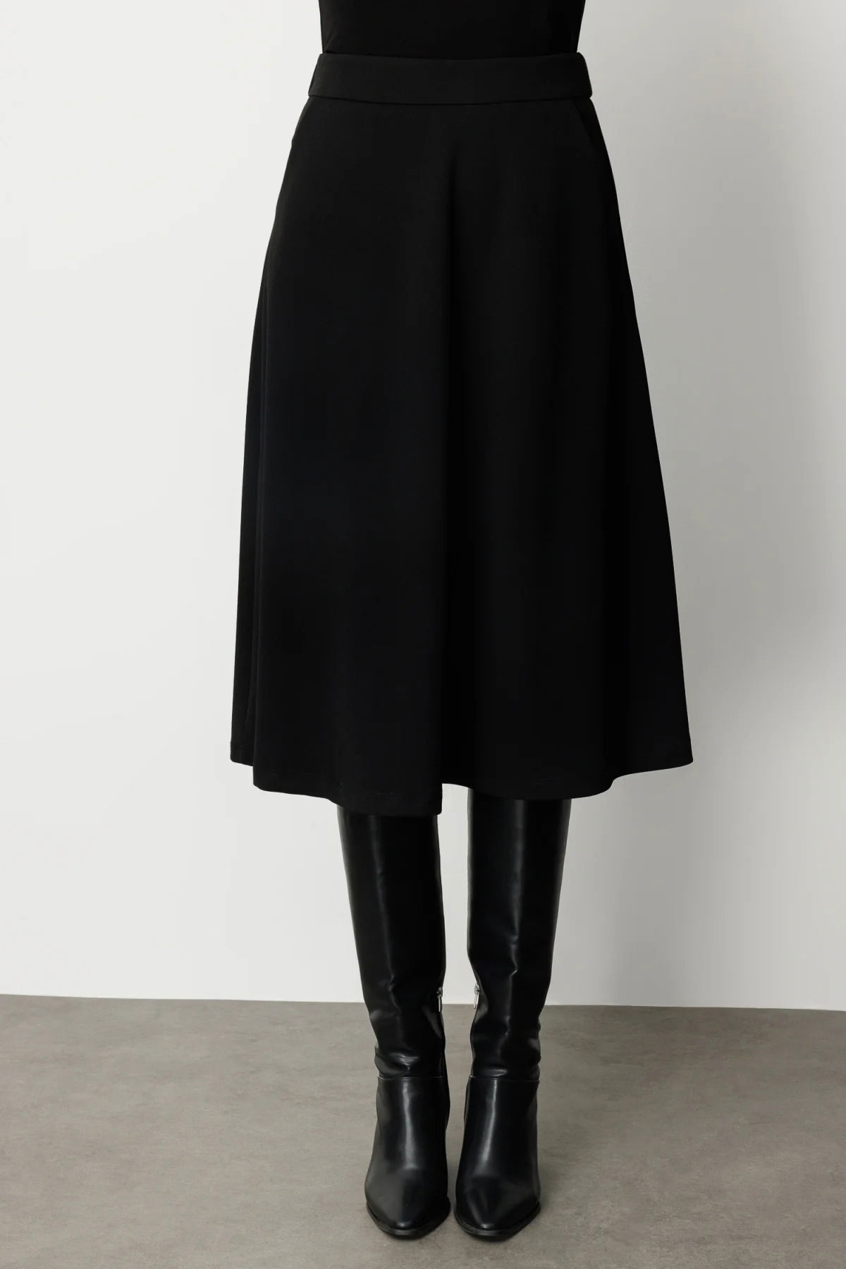 Ekol Kadın Beli Lastikli Volanlı Midi Etek 2023 Siyah