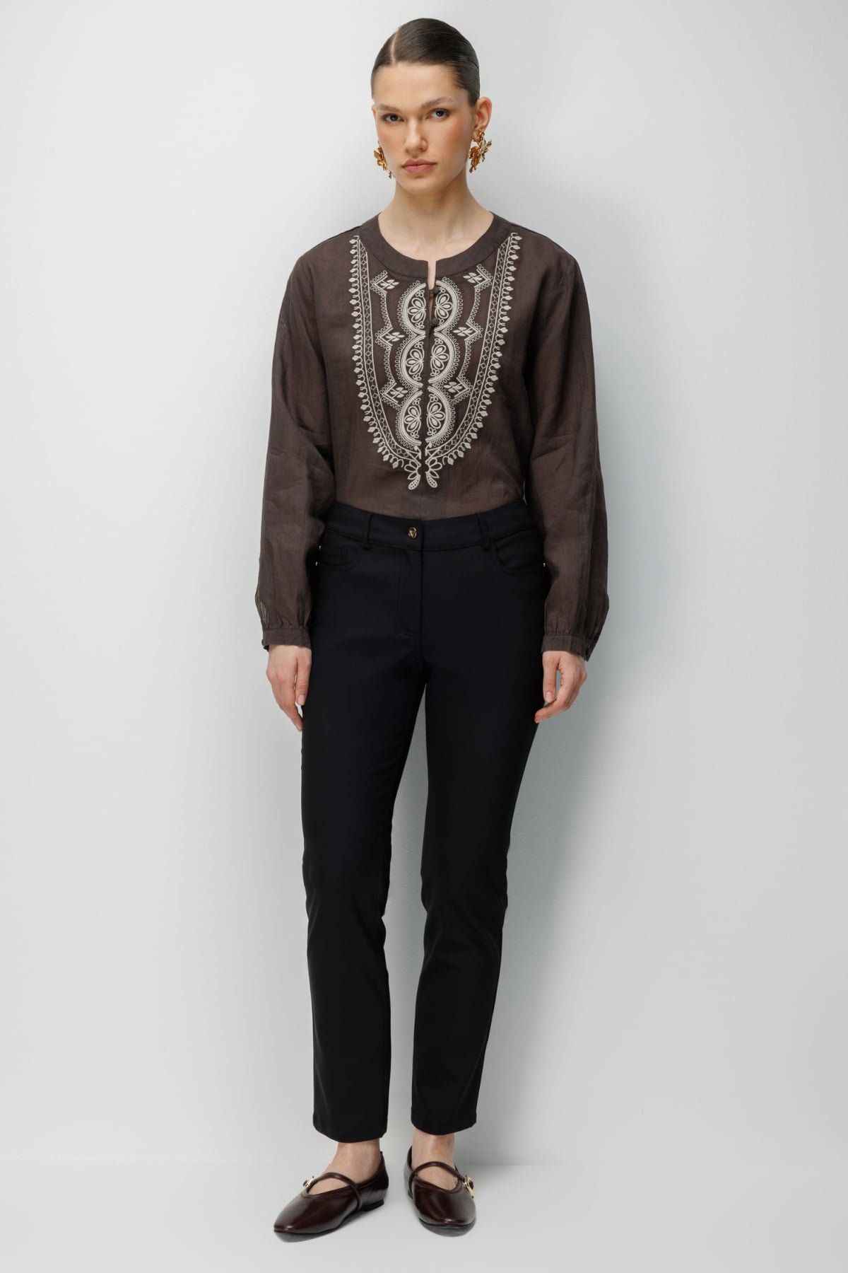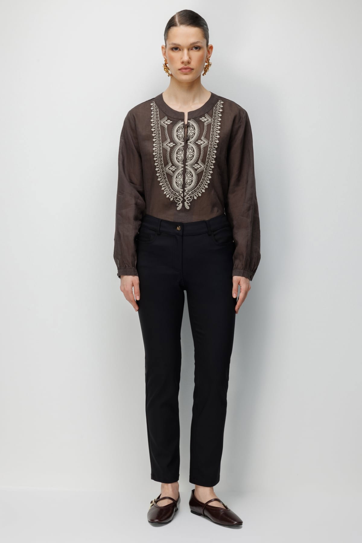 Detay: Astarsız yapısı sayesinde hafif ve rahat bir kullanım sunan bu pantolon modeli, normal bel detayı ile klasik bir şıklık kazandırır. Dar paça tasarımı modern bir görünüm oluştururken, fermuarlı kapama şekli işlevsel bir kullanım sağlar. Dokuma kumaş ile hazırlanan ve 5 cepli tasarımıyla pratiklik sunan bu parça, günlük kombinlerden özel anlara kadar stil sahibi bir seçenek olarak öne çıkar;