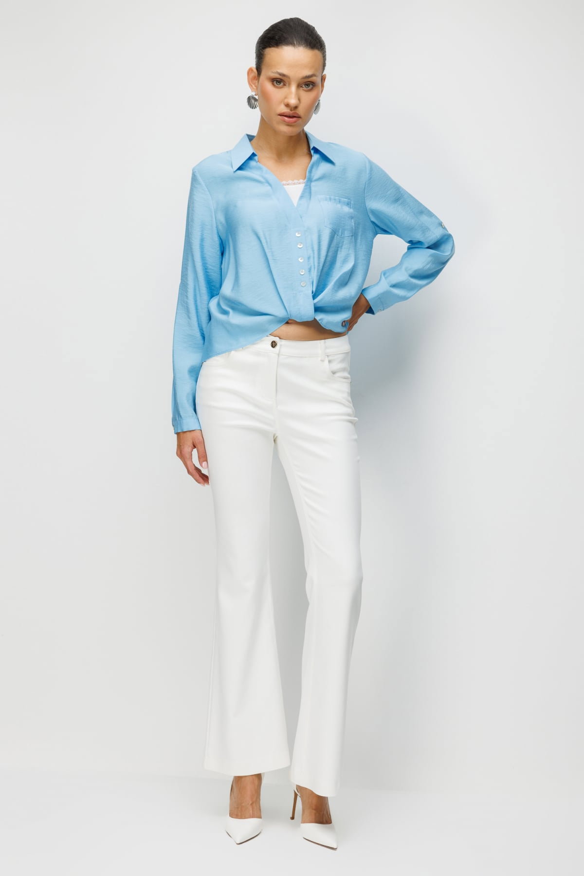 Detay: Astarsız yapısı sayesinde hafif ve rahat bir kullanım sunan bu pantolon modeli, yüksek bel detayı ile zarif bir duruş sergiler. İspanyol paça tasarımı feminen bir şıklık kazandırırken, fermuarlı kapama şekli işlevsel bir kullanım sağlar. Dokuma kumaş ile hazırlanan ve 5 cepli yapısı sayesinde pratiklik sunan bu parça, günlük kombinlerden özel davetlere kadar stil sahibi bir seçenek olarak öne çıkar;