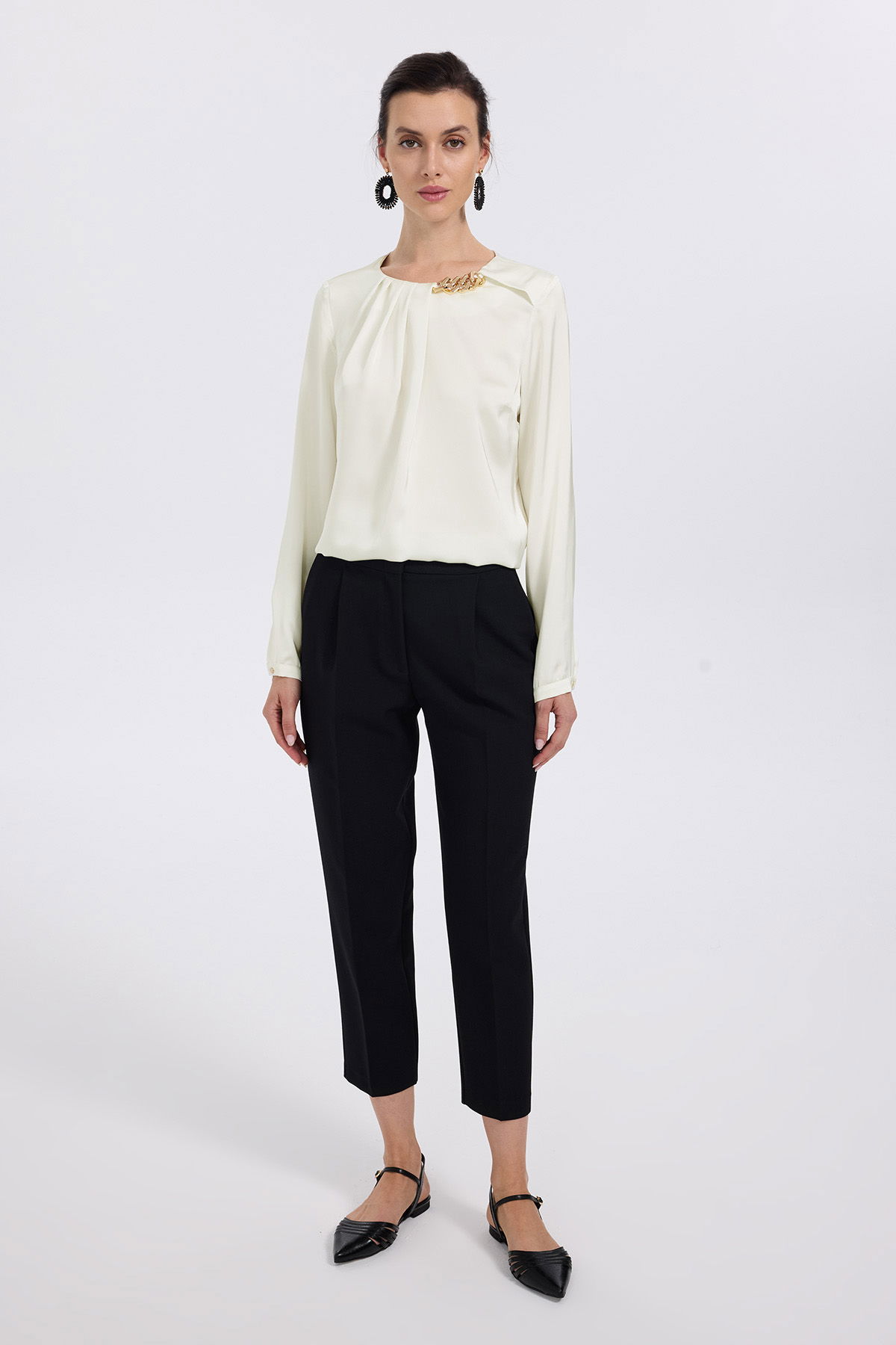 Model Ölçüleri(cm) / Üzerindeki Ürün: Boy - 176, Göğüs - 84, Bel – 61, Basen - 89 / 38 beden;