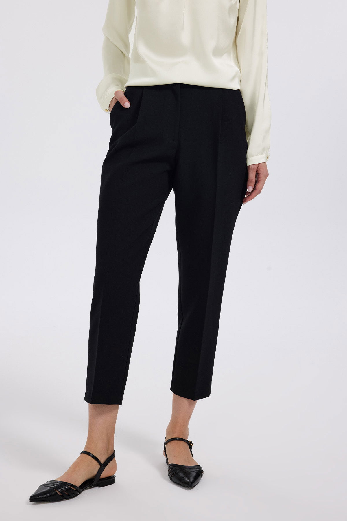 Detay: Beş cep, boru paça, yüksek bel pantolon;