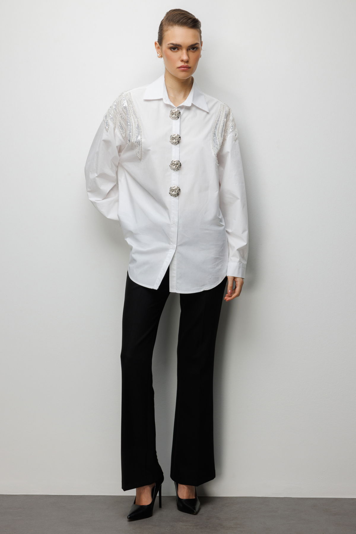 Detay: %100 pamuk kumaştan üretilen, astarsız yapısıyla hafiflik sunan gömlek yaka uzun kollu düğmeli gömlek, doğal rahatlığı ve klasik şıklığı bir arada yaşatır. Nefes alabilen pamuk dokusu sayesinde gün boyu konfor sağlarken, zamansız tasarımıyla hem ofis stiline hem de günlük kombinlere uyum sağlar. Modern kesimi ve pratik düğme kapamasıyla gardırobunuzda vazgeçilmez bir parça olarak öne çıkar;