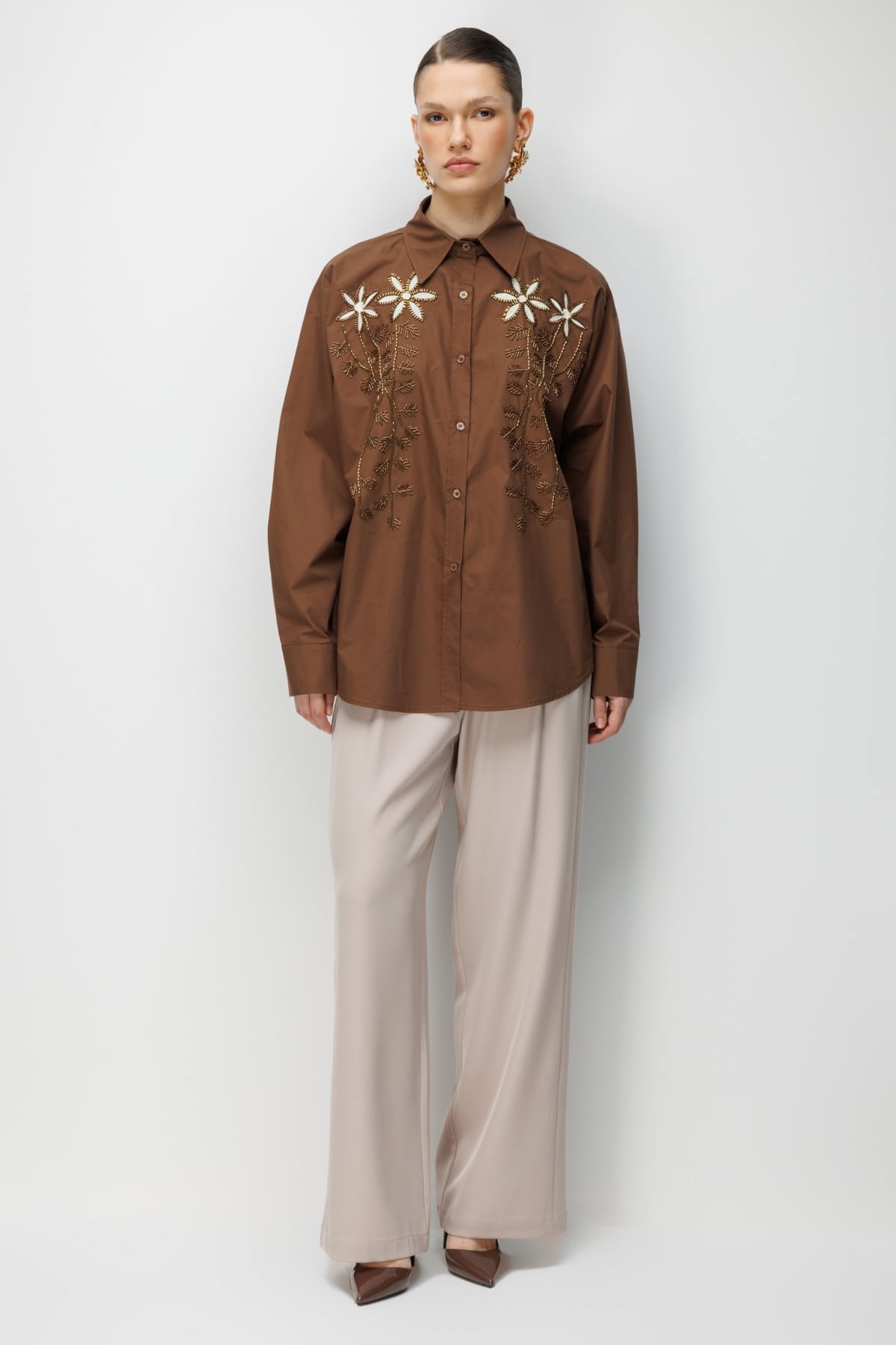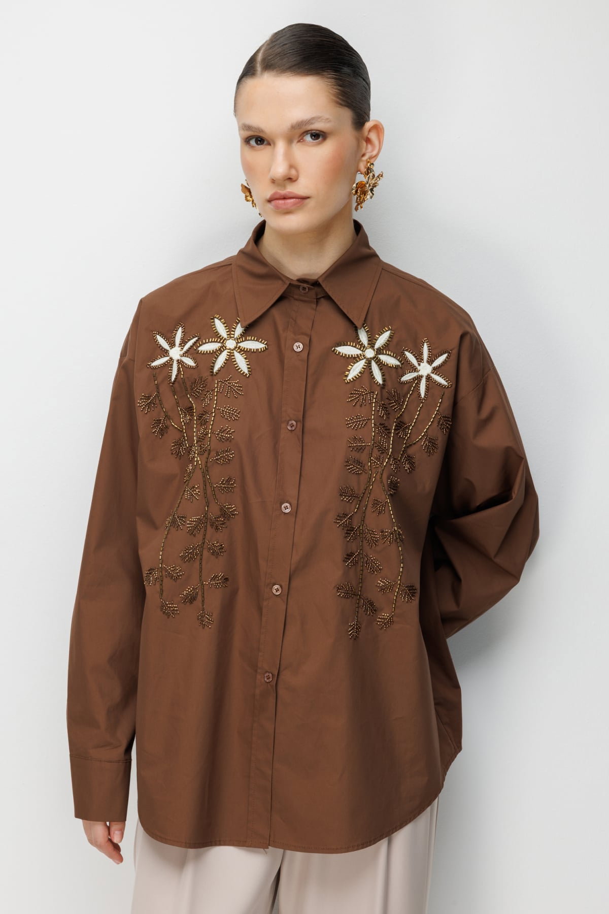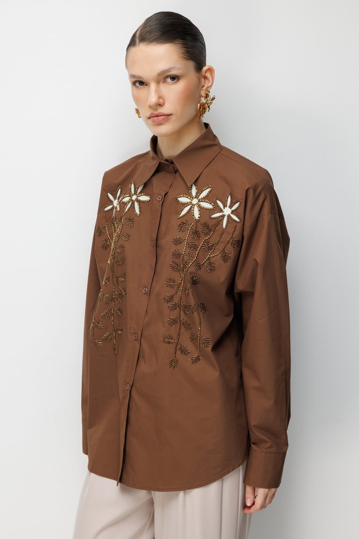 Detay: %100 pamuk kumaş içeriği ile doğal ve nefes alabilen bir kullanım sunan bu model gömlek, astarsız yapısı sayesinde hafif ve konforlu bir deneyim sağlar. Gömlek yaka detayı klasik bir şıklık kazandırırken, uzun kol tasarımı zarif ve modern bir görünüm oluşturur. Düğmeli kapama şekli ise hem işlevsel hem de stil sahibi bir tamamlayıcı detaydır;
