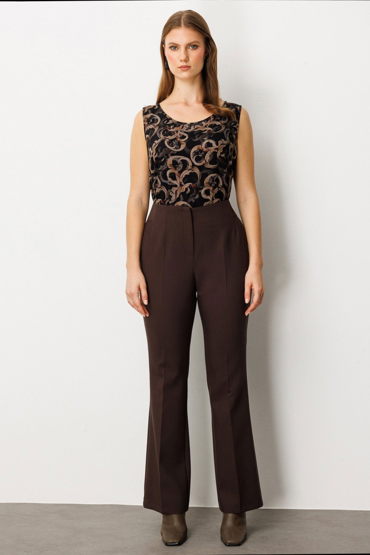 Detay: Bu pantolon modeli, dokuma kumaş yapısıyla hem dayanıklılık hem de şıklık sunarken, astarsız tasarımı sayesinde hafif ve rahat bir kullanım sağlar. Lastikli bel detayı gün boyu konfor sağlarken, fermuarlı kapama şekli pratiklik kazandırır. İspanyol paça kesimiyle nostaljik ve zarif bir siluet oluştururken, cepsiz tasarımı sade ve temiz bir görünüm sunar. Hem günlük stilinizde hem de özel kombinlerde dikkat çekici bir parça olarak öne çıkar;