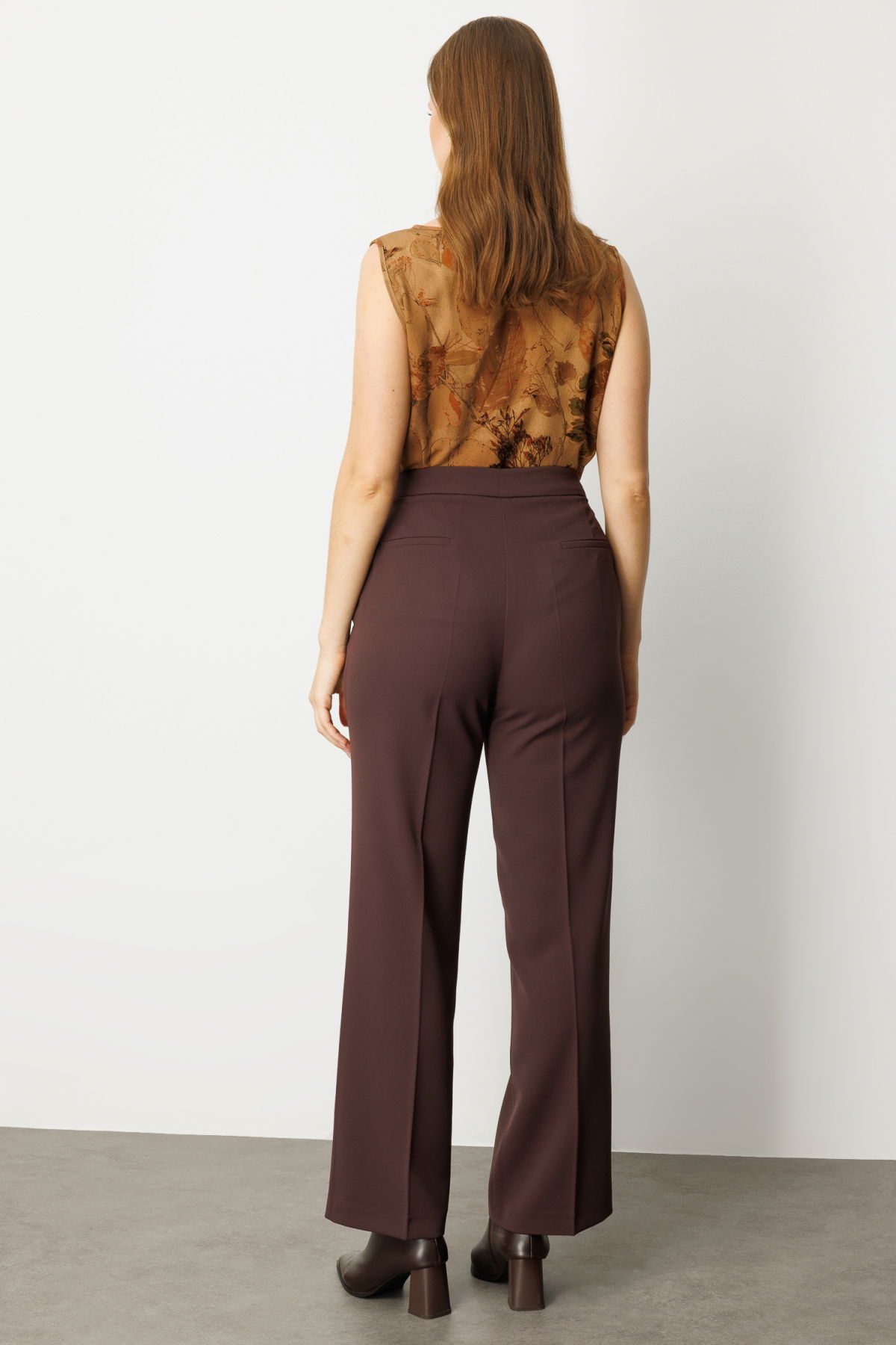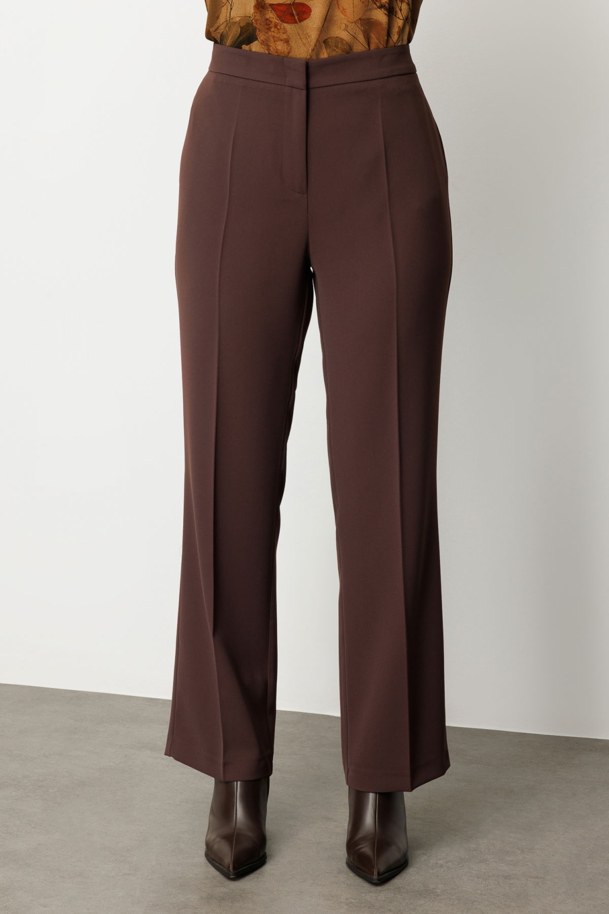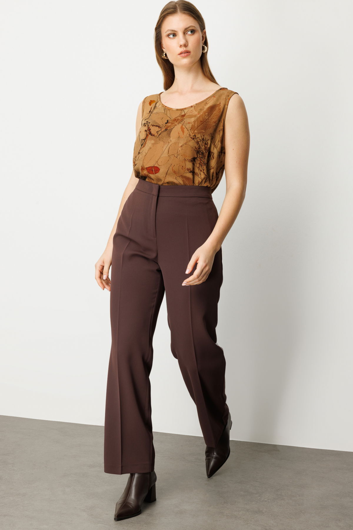 Detay: Krep kumaştan üretilmiş, astarsız ve yüksek bel tasarıma sahip bu bol paça pantolon, zarif duruşuyla modern stilin vazgeçilmezidir. Fermuarlı kapama detayı pratiklik sunarken, cepsiz yapısı sayesinde sade ve şık bir siluet oluşturur. Günlük kombinlerden özel davetlere kadar rahatlıkla tercih edilebilecek şık bir parçadır;