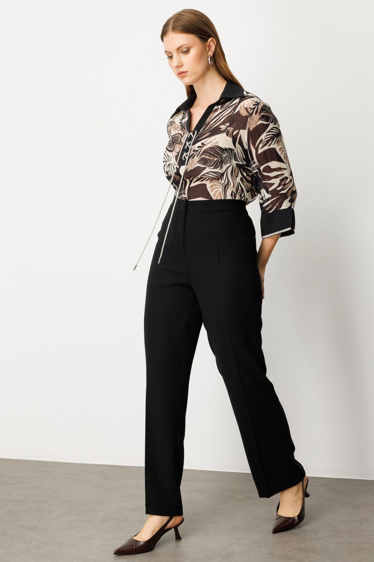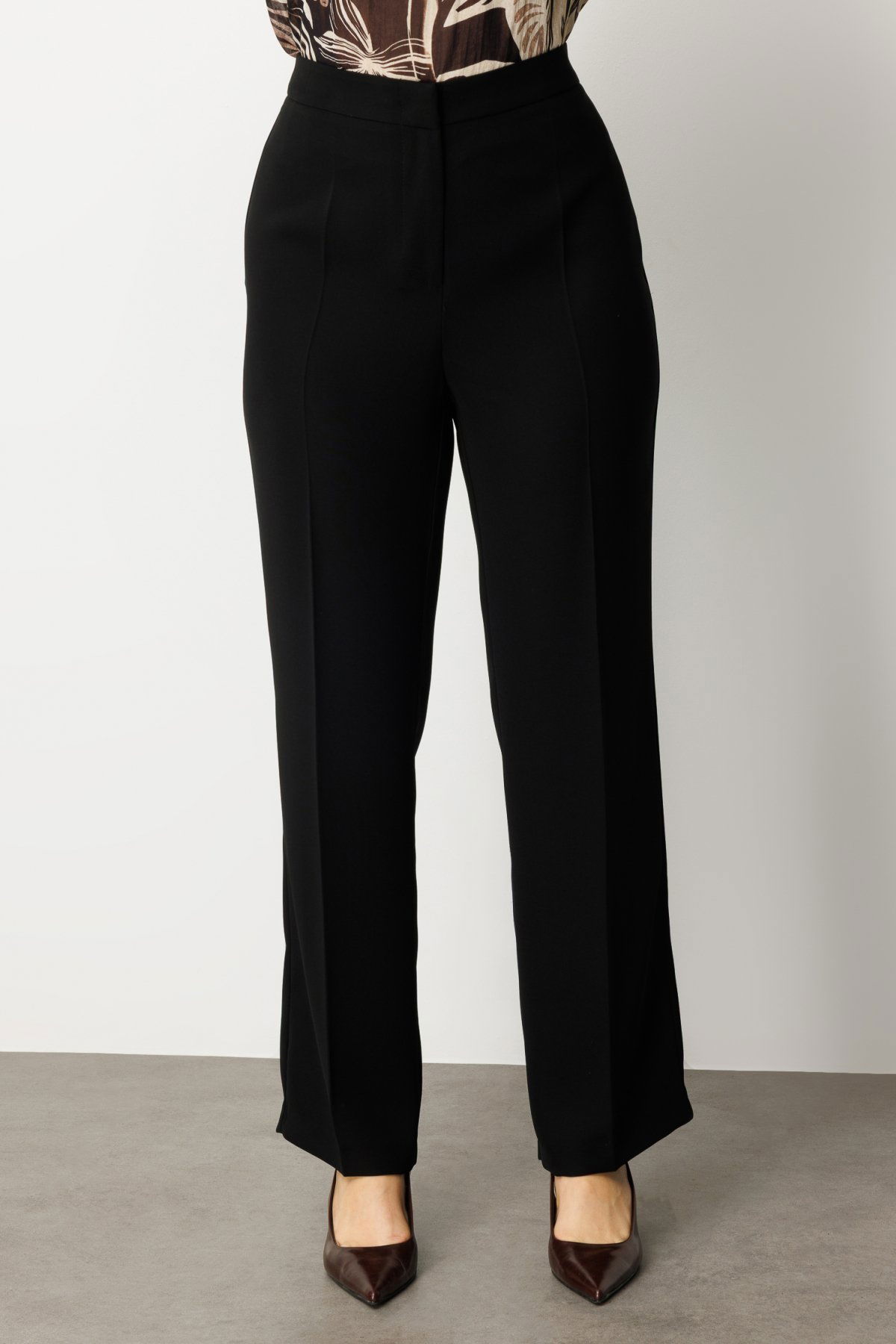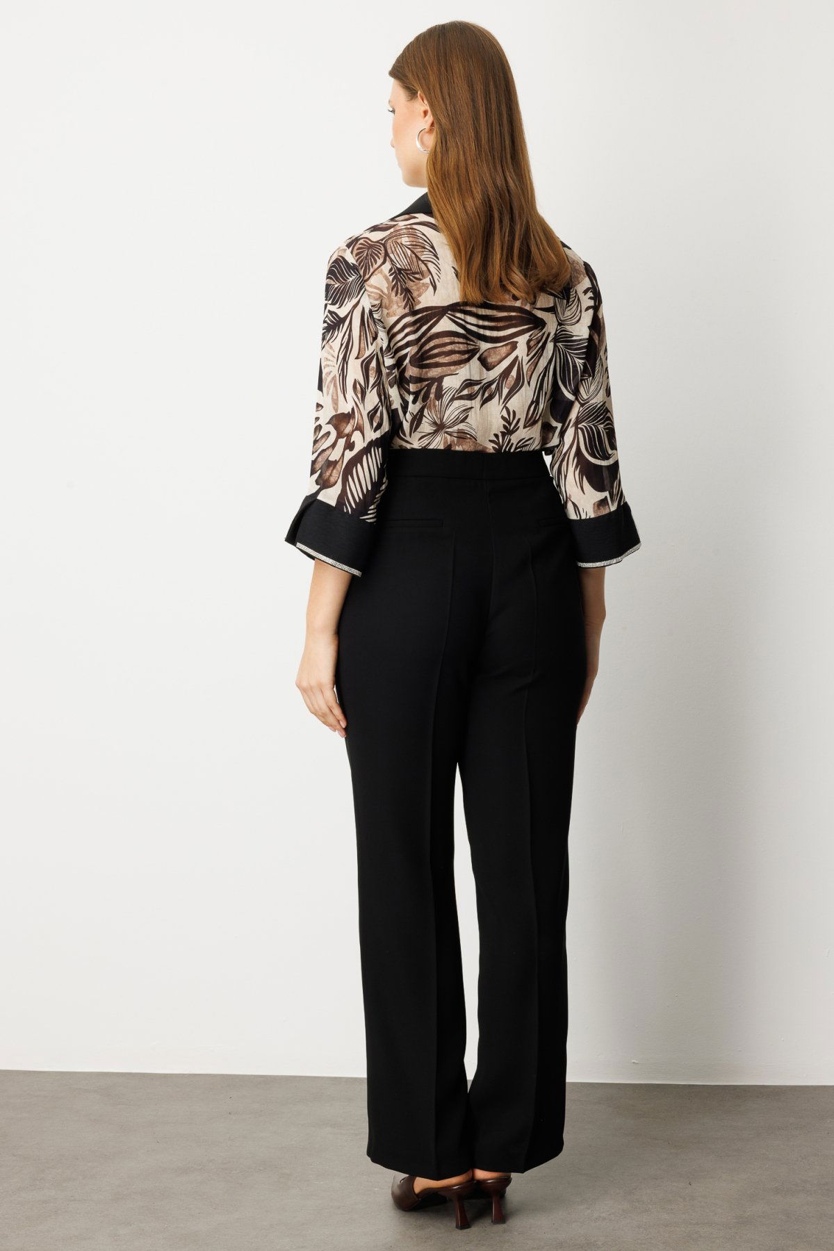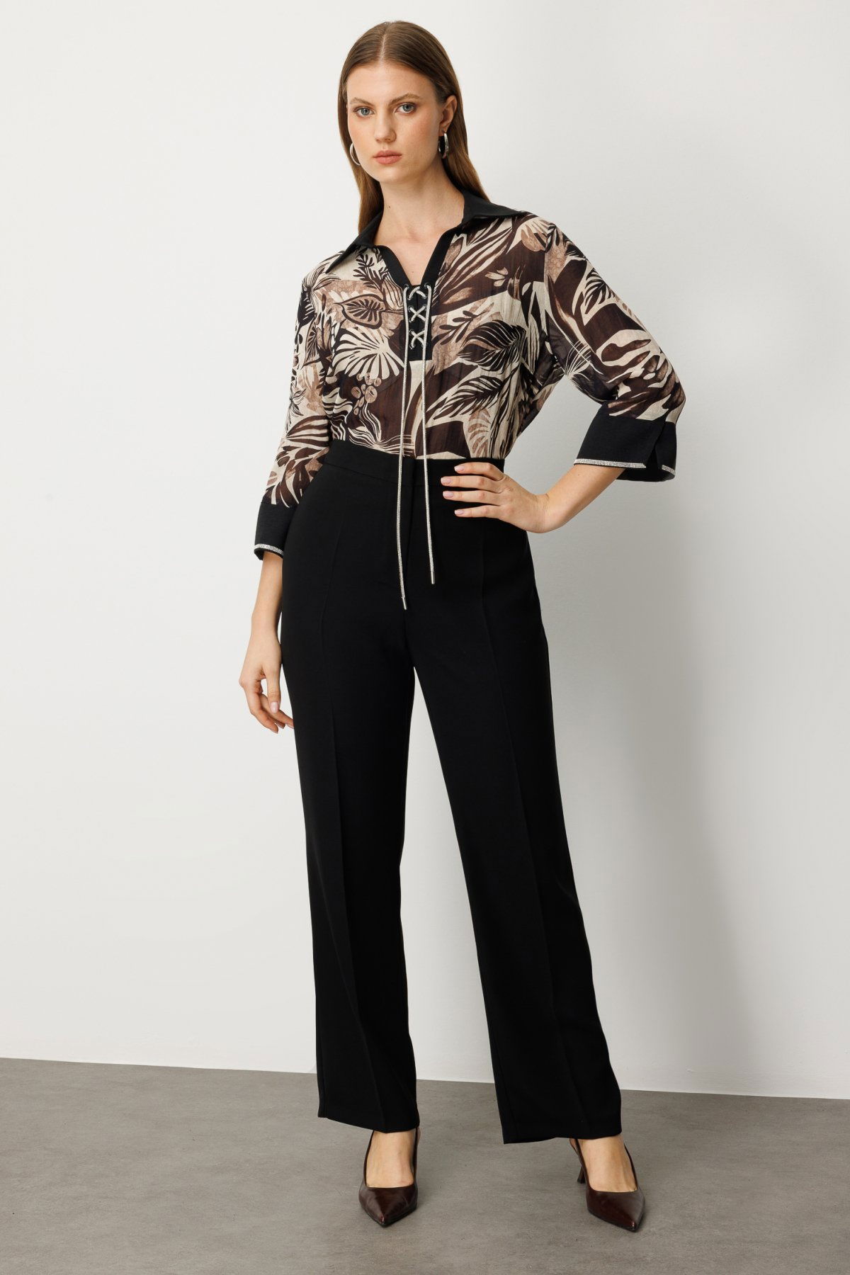 Detay: Krep kumaştan üretilmiş, astarsız ve yüksek bel tasarıma sahip bu bol paça pantolon, zarif duruşuyla modern stilin vazgeçilmezidir. Fermuarlı kapama detayı pratiklik sunarken, cepsiz yapısı sayesinde sade ve şık bir siluet oluşturur. Günlük kombinlerden özel davetlere kadar rahatlıkla tercih edilebilecek şık bir parçadır;