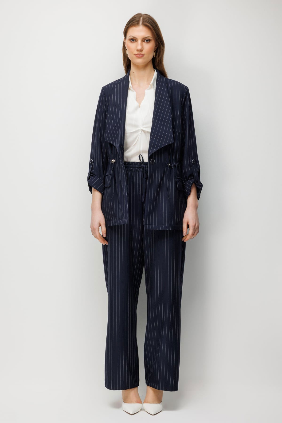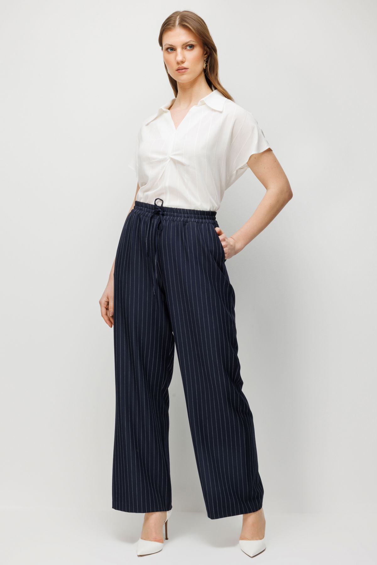 Detay: Dokuma kumaştan üretilen, astarsız, lastikli bel, bol paça ve yan cepli bu pantolon modeli tüm bu özellikleri ile rahat ve modern bir görünüm sunar. Lastikli bel tasarımı konforlu bir kullanım sağlarken bol paça formu özgür bir hareket alanı ve şık bir duruş kazandırır. Yan cep detayı ise işlevsellik katarak pantolonu hem günlük kombinlerde hem de daha şık stillerde kullanışlı bir parça haline getirir;