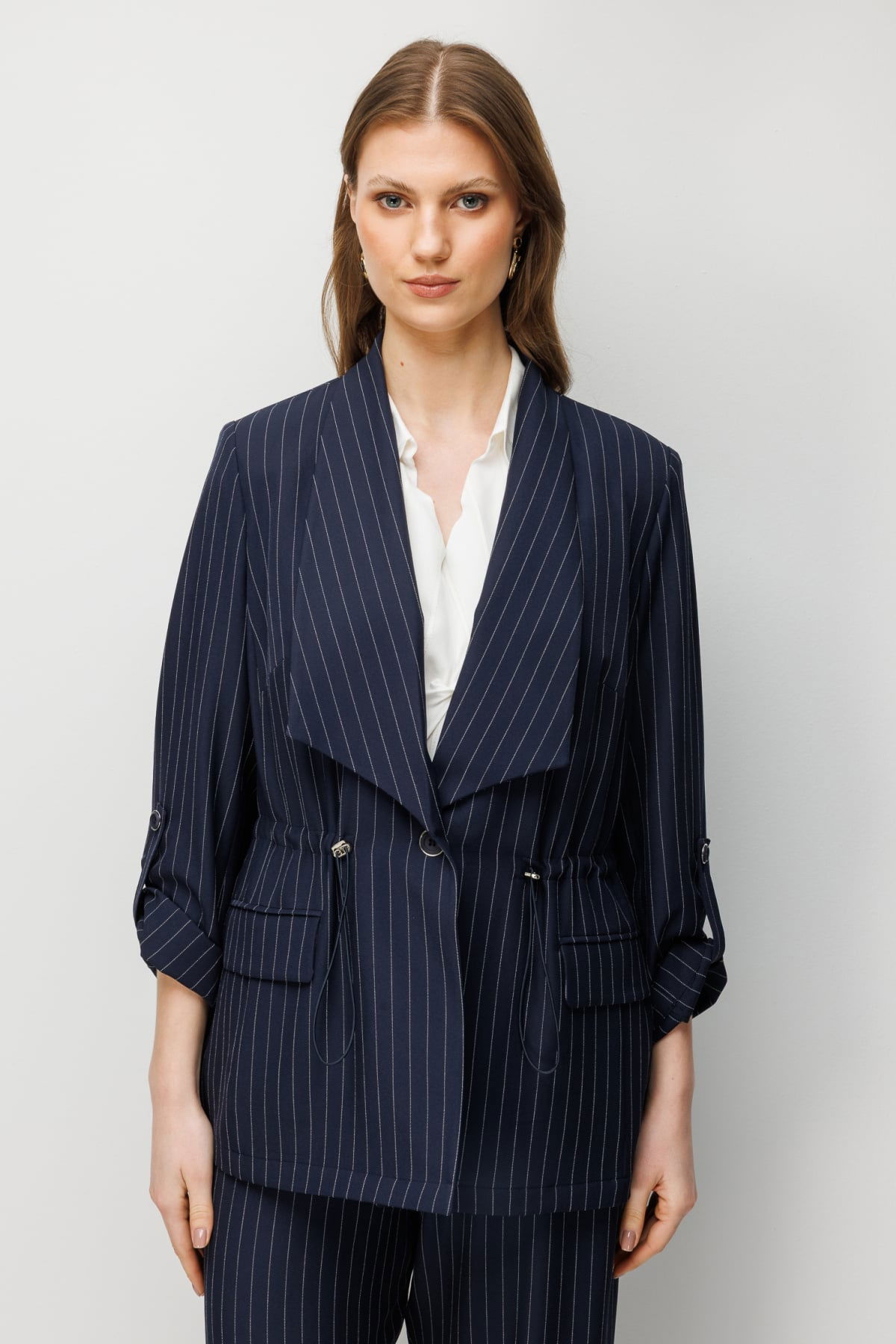 Detay: Dokuma kumaştan üretilen, astarsız, ceket yaka, vatkalı, uzun kollu, düğmeli ve kapaklı cepli bu ceket modeli tüm bu özellikleri ile güçlü ve sofistike bir görünüm sunar. Ceket yaka detayı klasik bir duruş kazandırırken vatkalı tasarım omuzlara belirgin bir form verir. Uzun kollu yapısı mevsim geçişlerinde şıklığı desteklerken düğmeli kapama şekli pratiklik sağlar. Kapaklı cep detayı ise hem işlevsel hem de estetik bir unsur olarak ceket modeline karakter kazandırır;