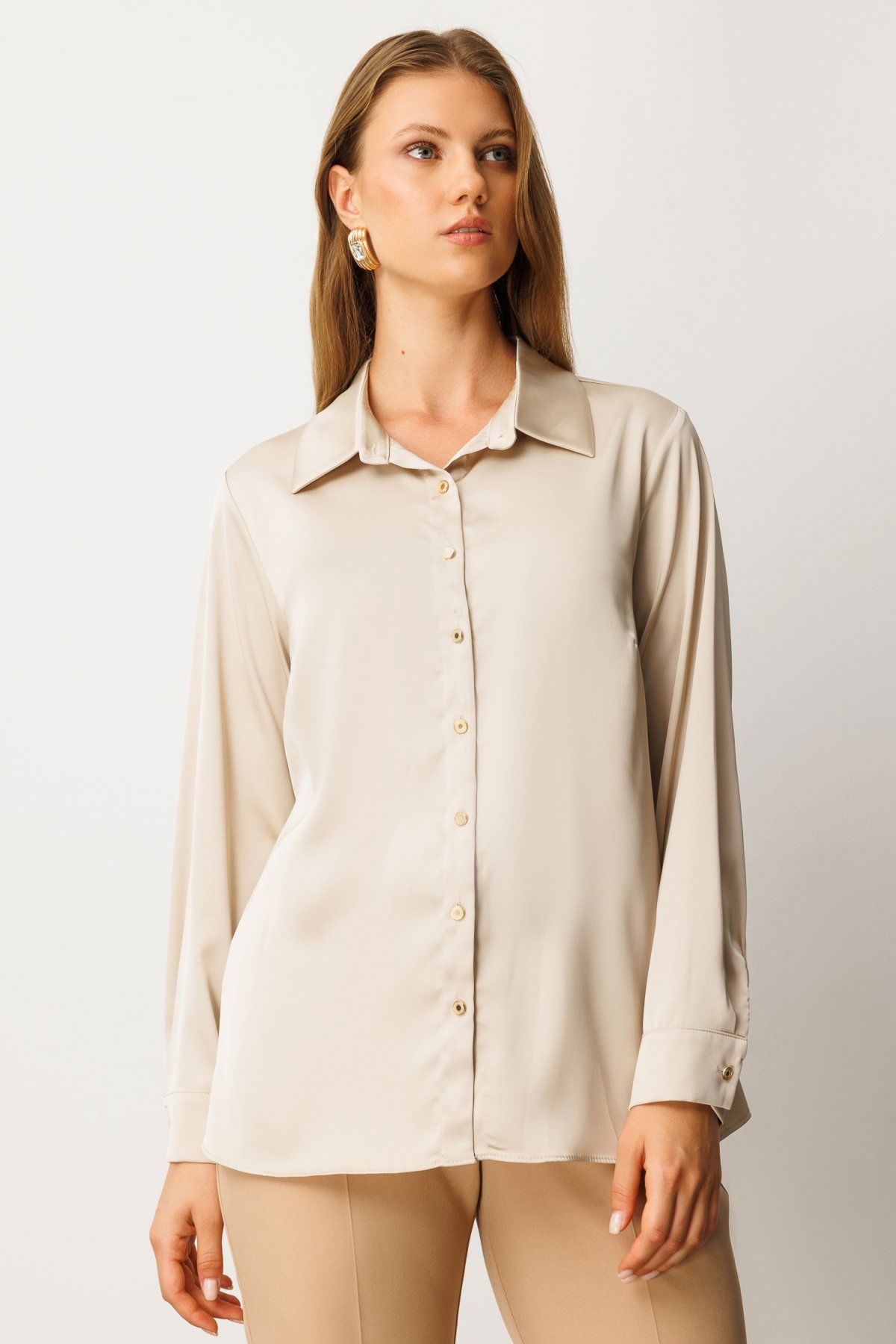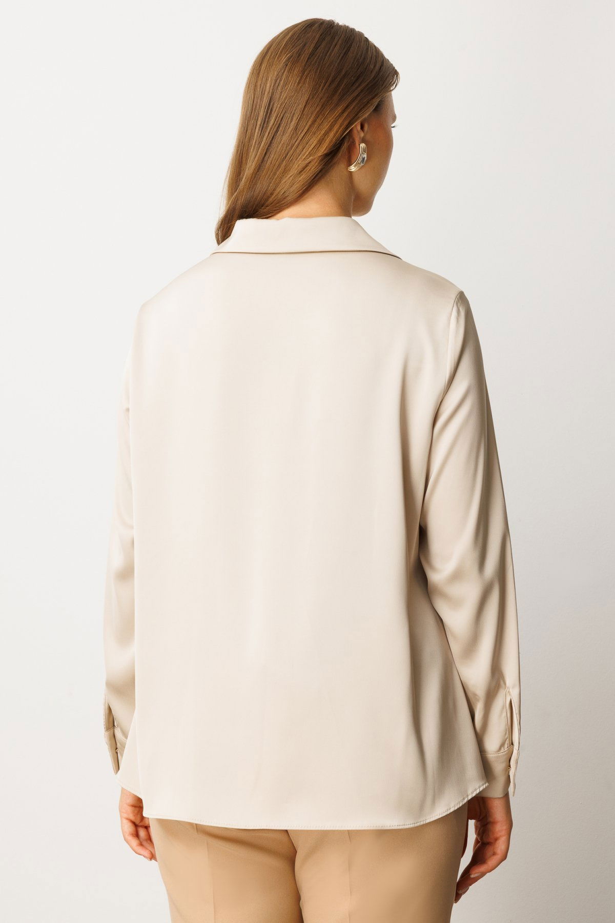 Ekol Kadın Büyük Beden Düğmeli Saten Gömlek 3505 İnci