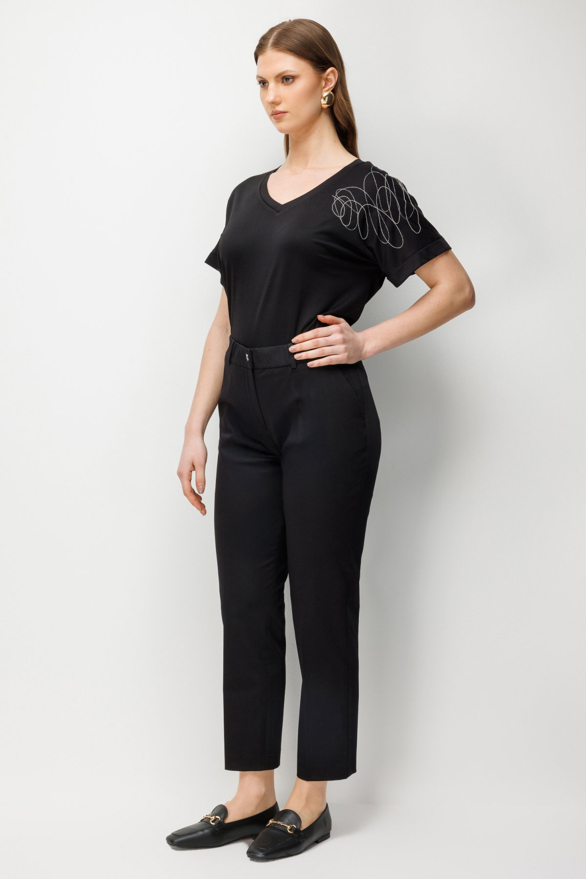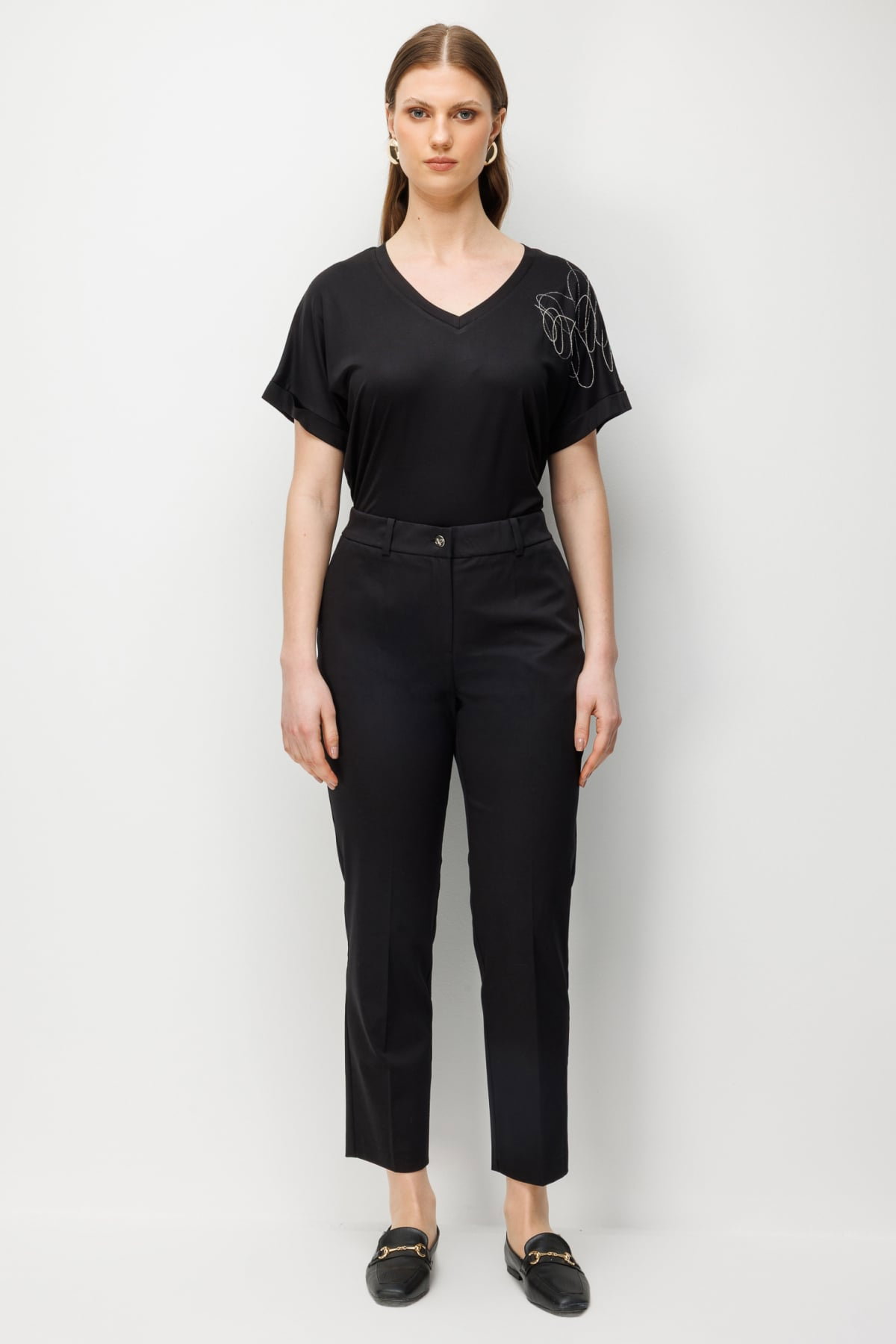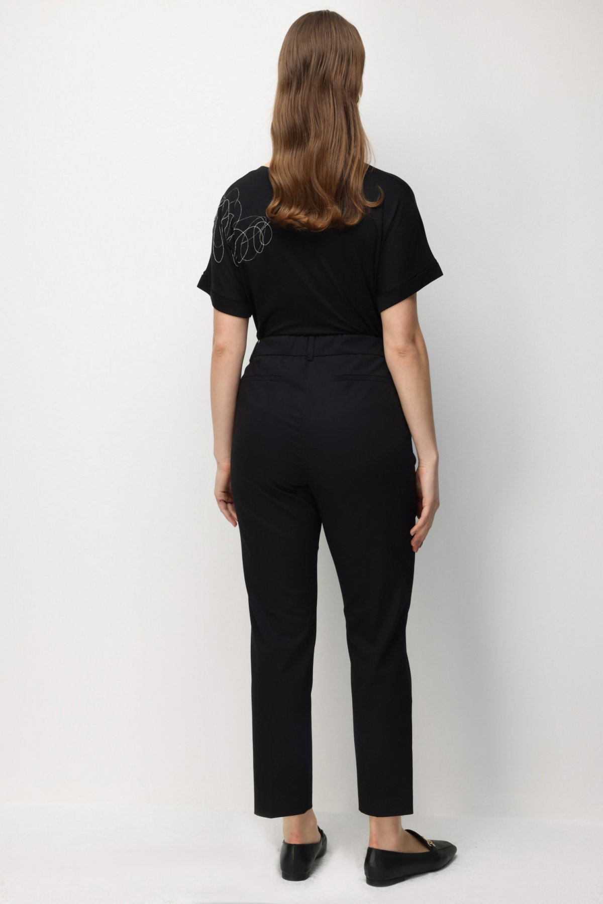 Detay: Düşük bel formunda, dar paça tasarımlı, fermuarlı kapama detaylı, yan cepli, dokuma kumaştan ve astarsız bu pantolon modern bir tasarıma sahiptir. Dar paça kesimi şık bir siluet oluştururken düşük bel formu rahat bir duruş kazandırır. Yan cepler ise günlük kullanımda fonksiyonel bir avantaj sağlar;