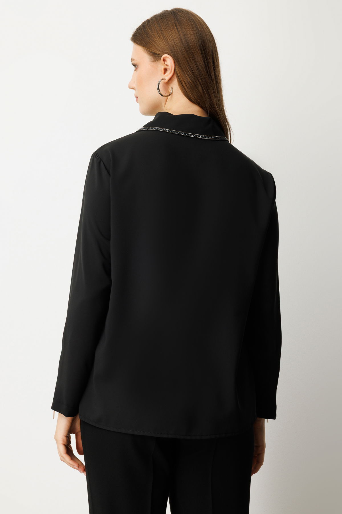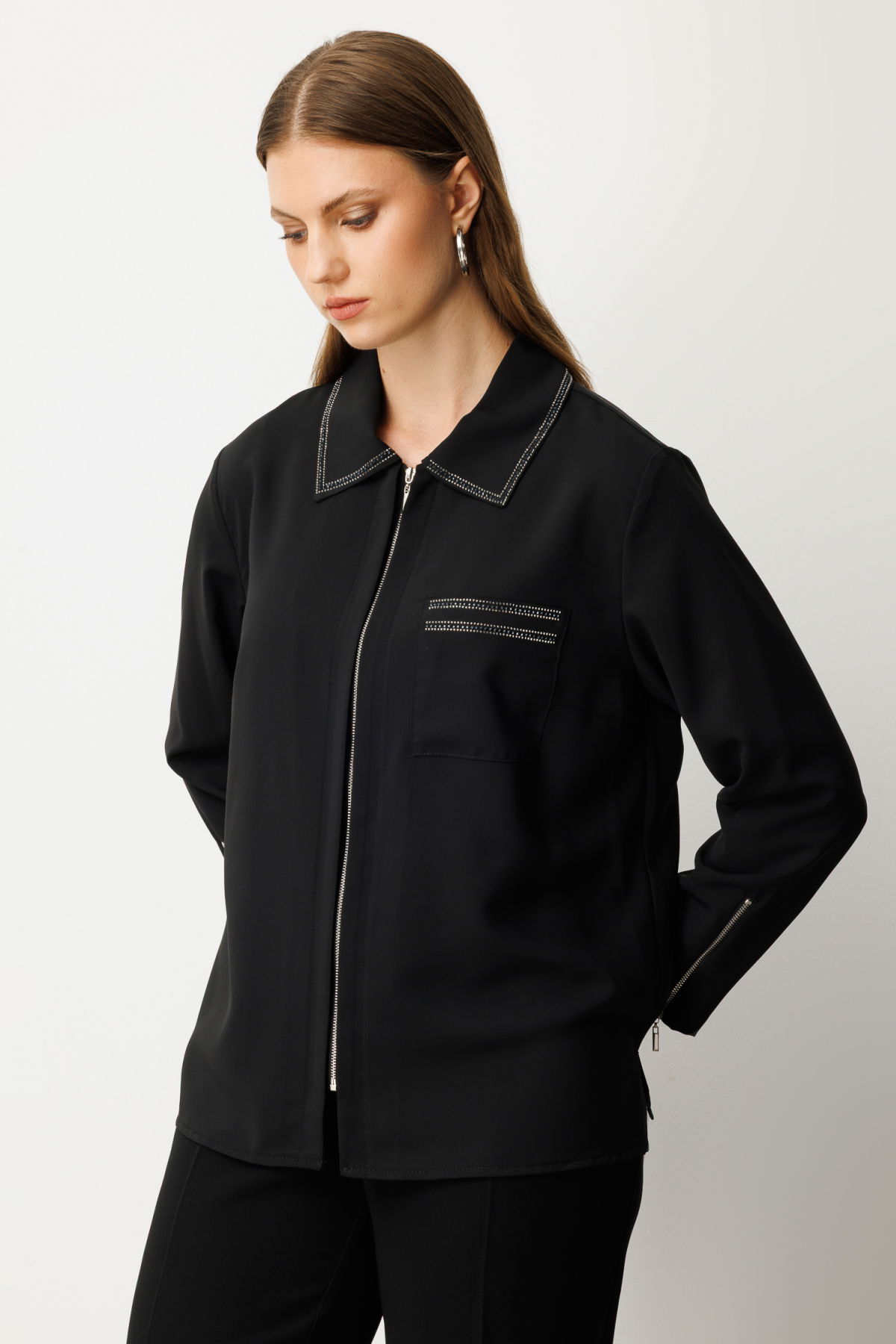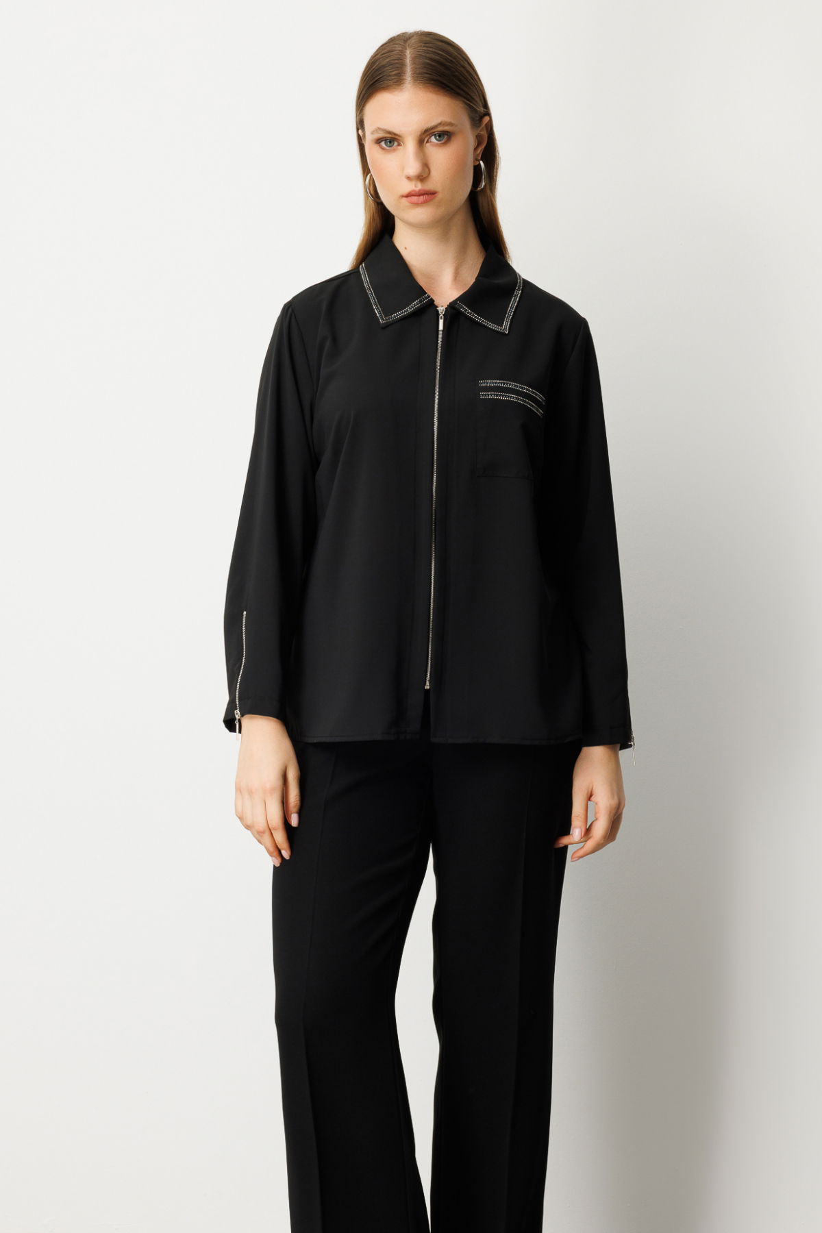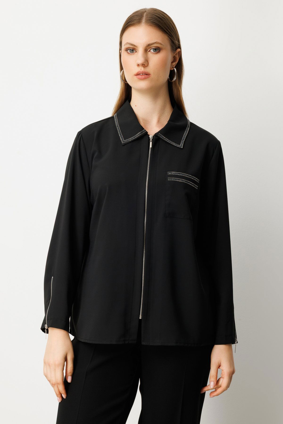 Detay: Polyester kumaştan üretilmiş, astarsız ve gömlek yakalı bu uzun kollu bluz, hafif yapısıyla gün boyu konfor sunar. Fermuarlı kapama detayı modern bir görünüm sağlarken, torba cepler işlevsellik katar. Mevsim geçişlerinde stilinizi tamamlayan şık ve kullanışlı bir parçadır;