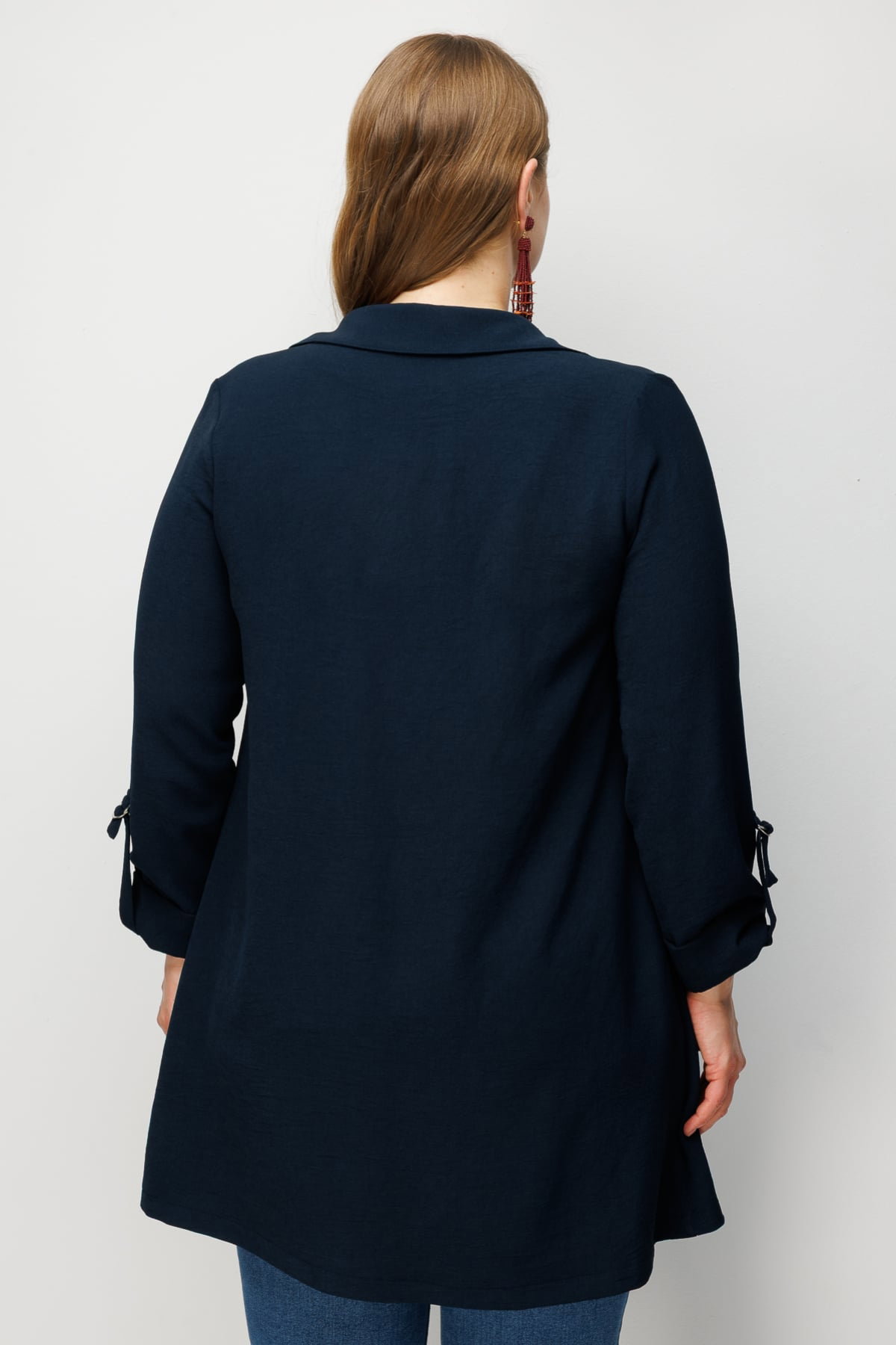 Detay: Polyester kumaş, astarsız, gömlek yaka, uzun kol ve yan cepli tasarımıyla öne çıkan bu gömlek modern bir şıklık sunuyor. Gömlek yaka detayı klasik bir görünüm sağlarken, uzun kol formu zarif bir duruş kazandırıyor. Yan ceplerin pratikliğiyle birleşen bu model, hem günlük kombinlerde hem de iş ortamında çok yönlü bir tercih haline geliyor;