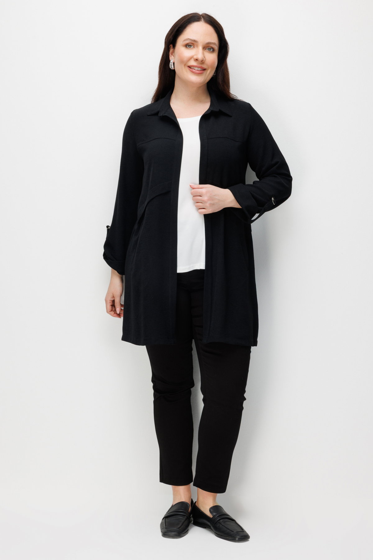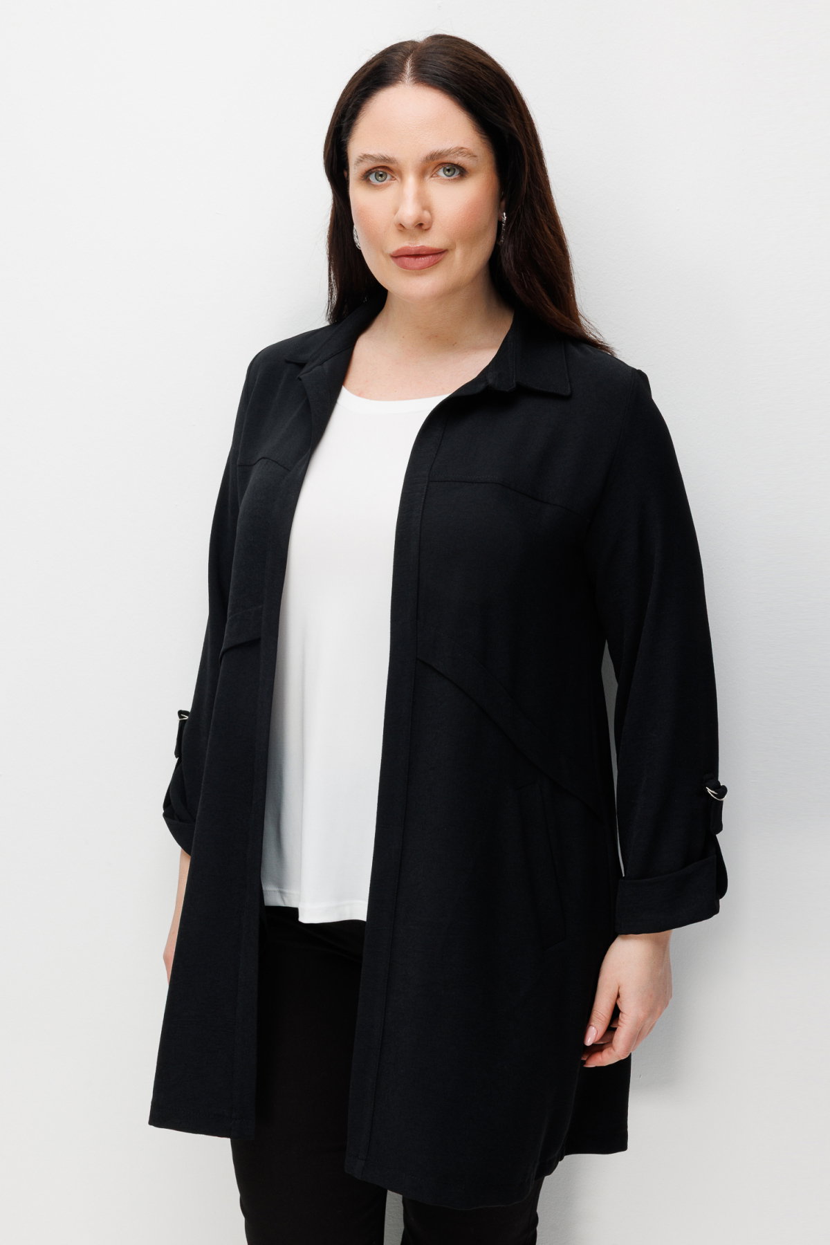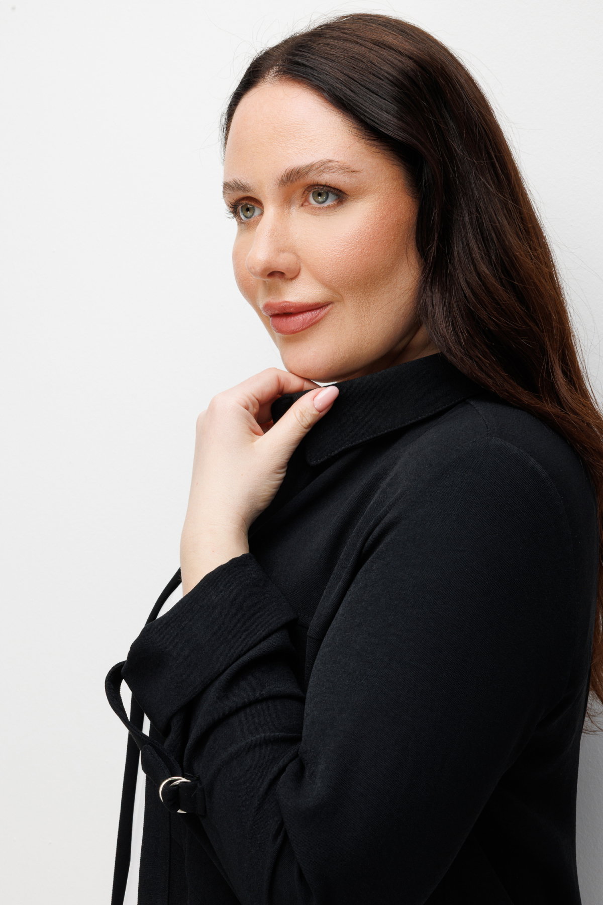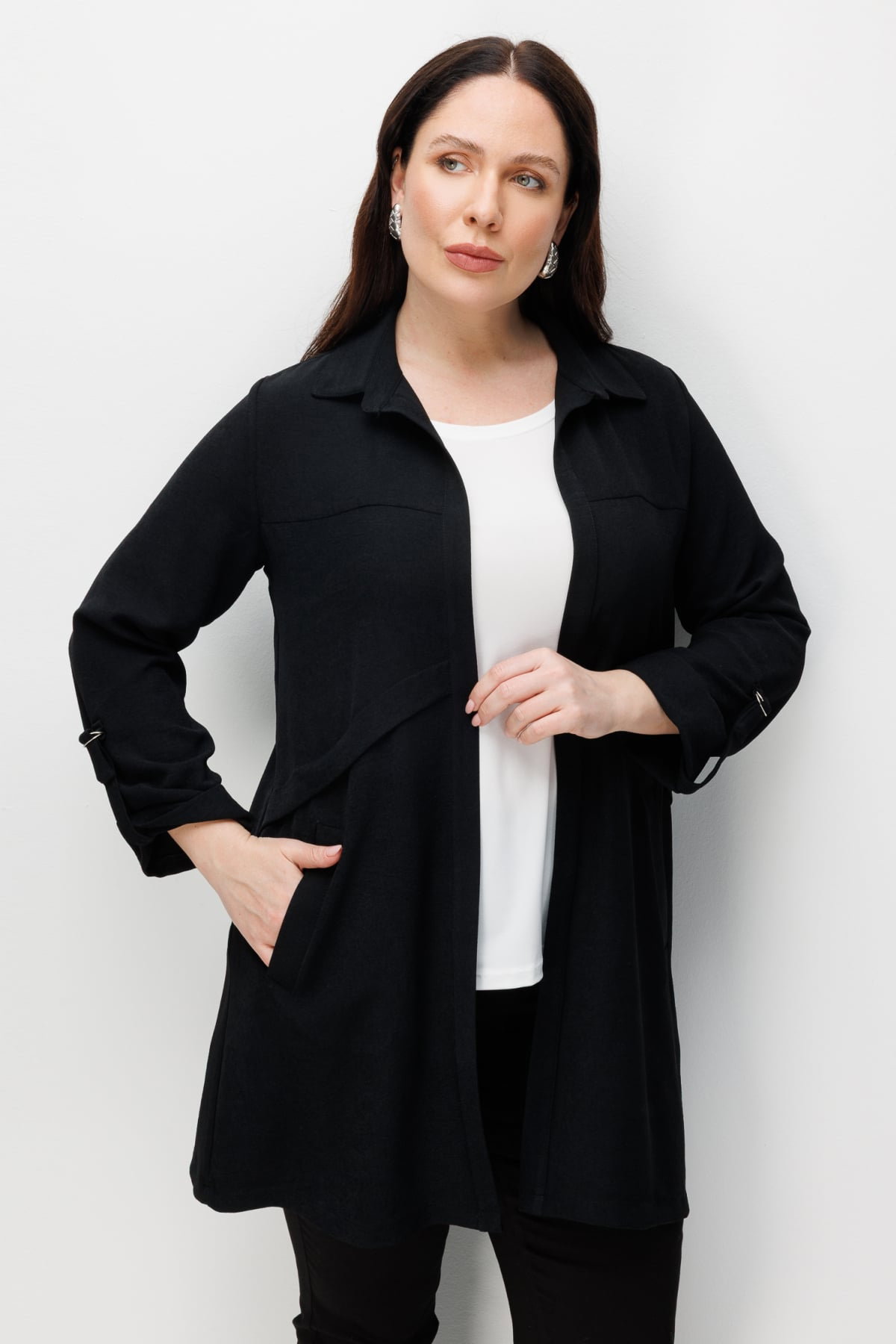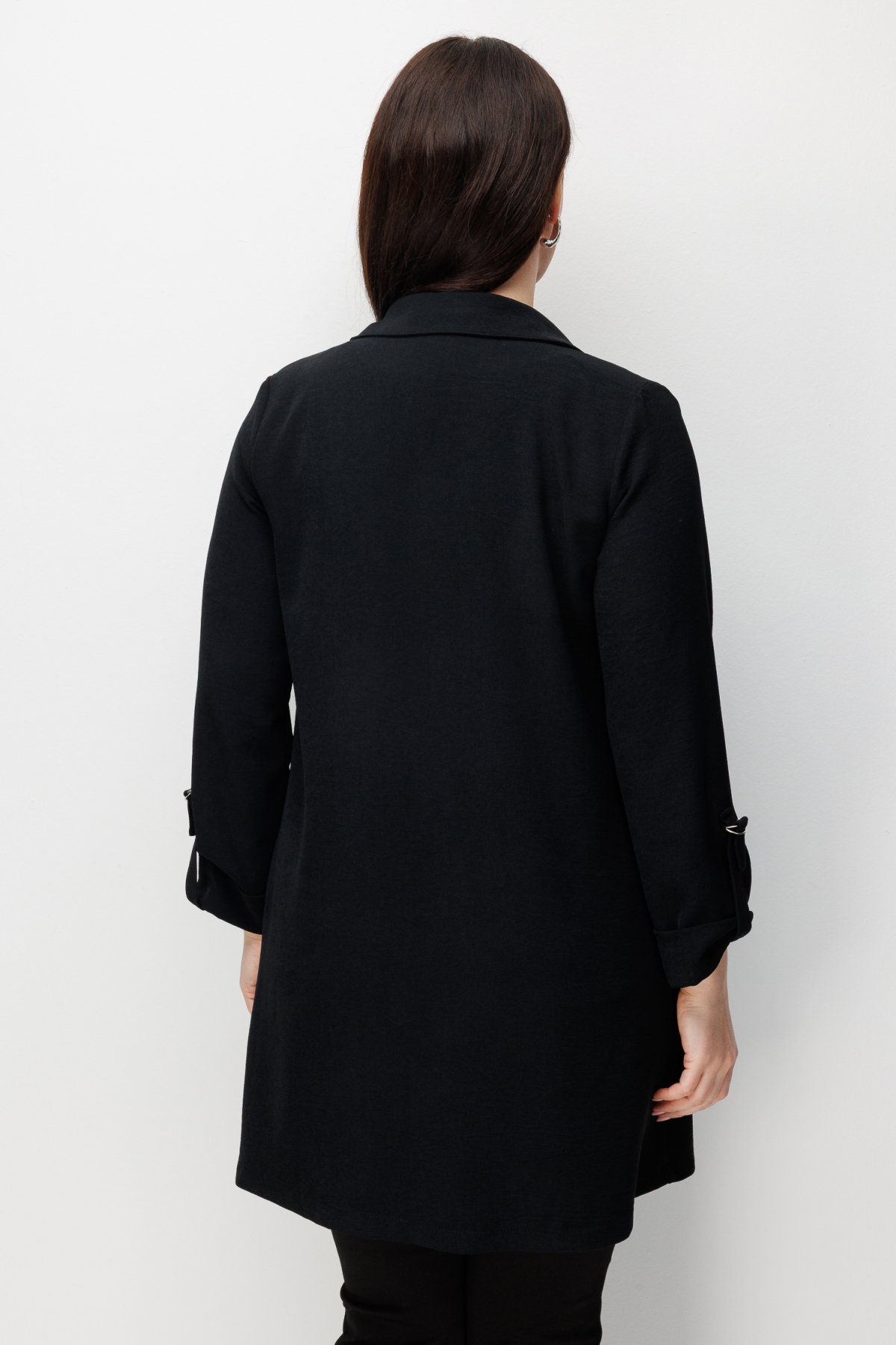 Ekol Kadın Büyük Beden İç Atletli Duble Kol Gömlek 1988 Siyah