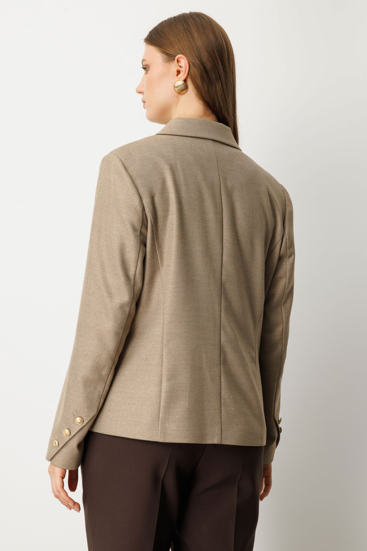 Detay: Dokuma kumaştan üretilmiş, astarlı ve ceket yakalı bu uzun kollu ceket, klasik şıklığı modern detaylarla buluşturur. Düğmeli kapama sistemi ve kapaklı cepleriyle hem zarif hem de işlevsel bir tasarım sunar. Uzun kol boyu sayesinde mevsim geçişlerinde stilinizi tamamlayan ideal bir dış giyim parçasıdır;