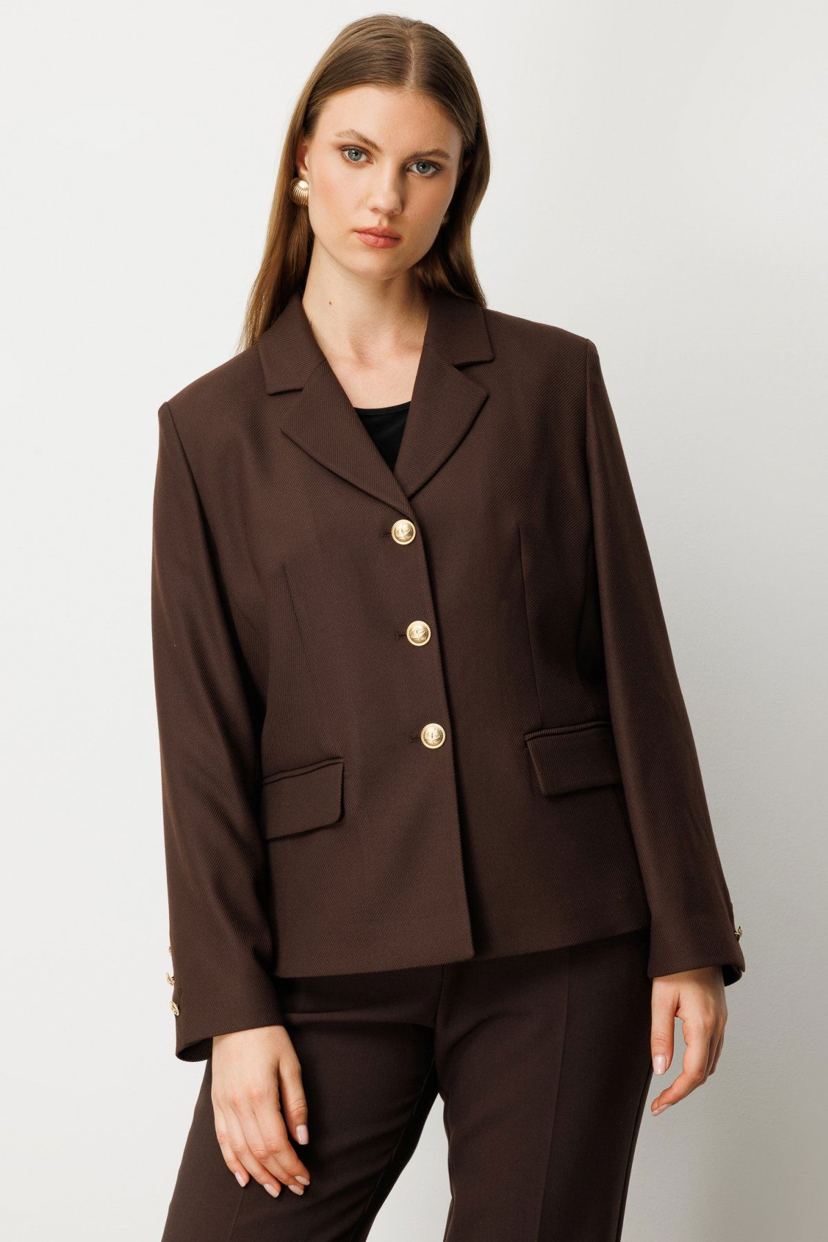 Ekol Kadın Büyük Beden Kapak Cepli Ceket 5549 Kahverengi