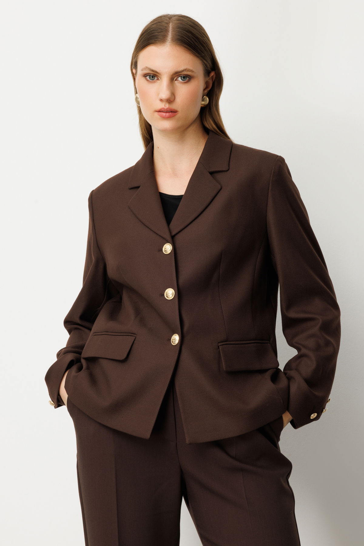 Detay: Dokuma kumaştan üretilmiş, astarlı ve ceket yakalı bu uzun kollu ceket, klasik şıklığı modern detaylarla buluşturur. Düğmeli kapama sistemi ve kapaklı cepleriyle hem zarif hem de işlevsel bir tasarım sunar. Uzun kol boyu sayesinde mevsim geçişlerinde stilinizi tamamlayan ideal bir dış giyim parçasıdır;
