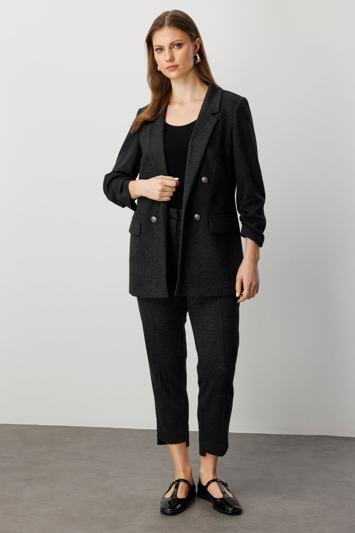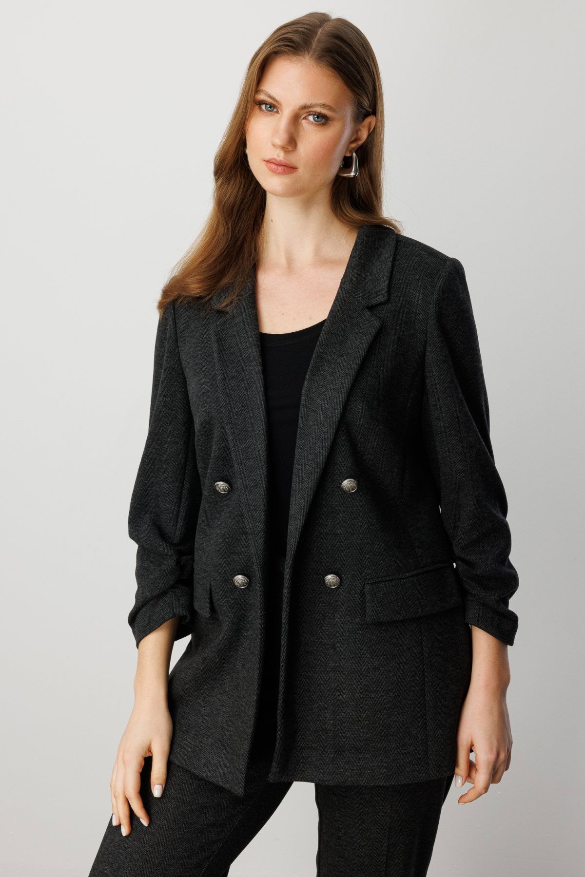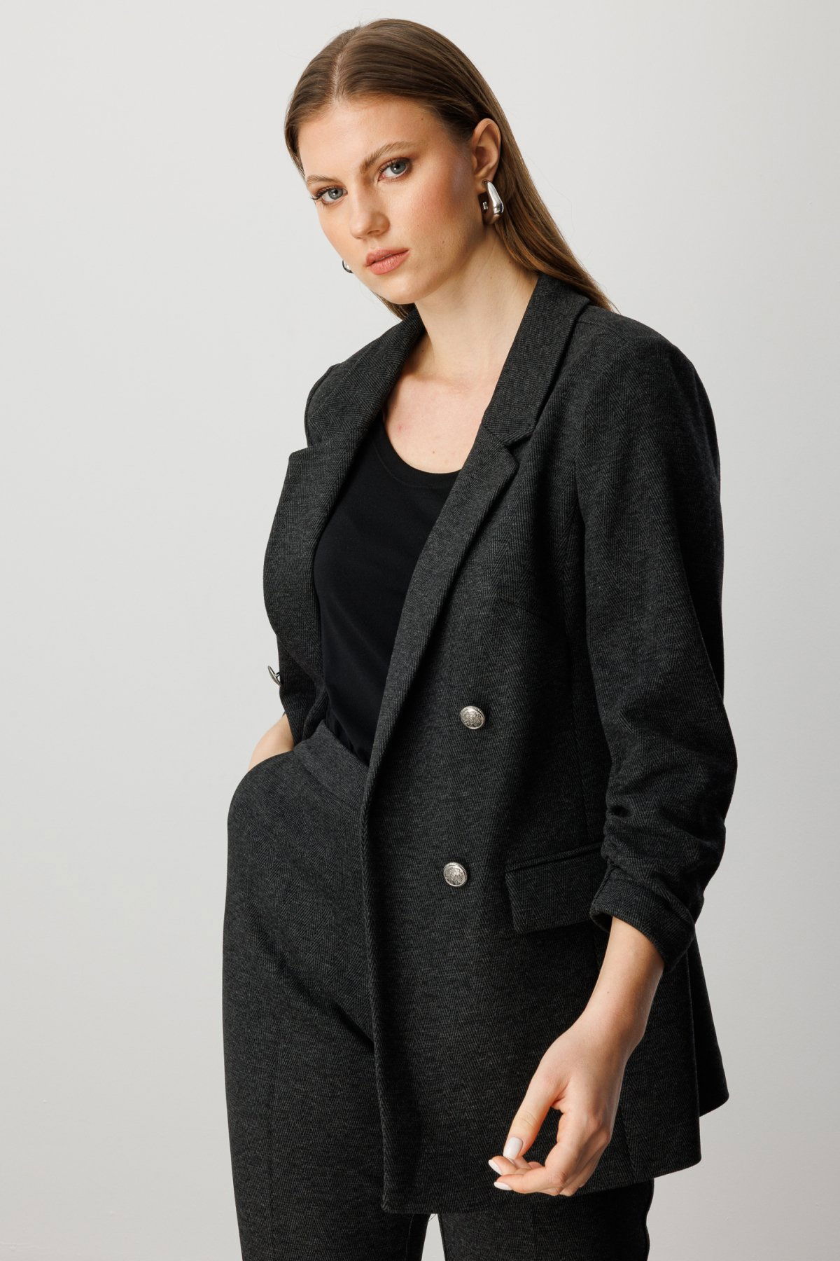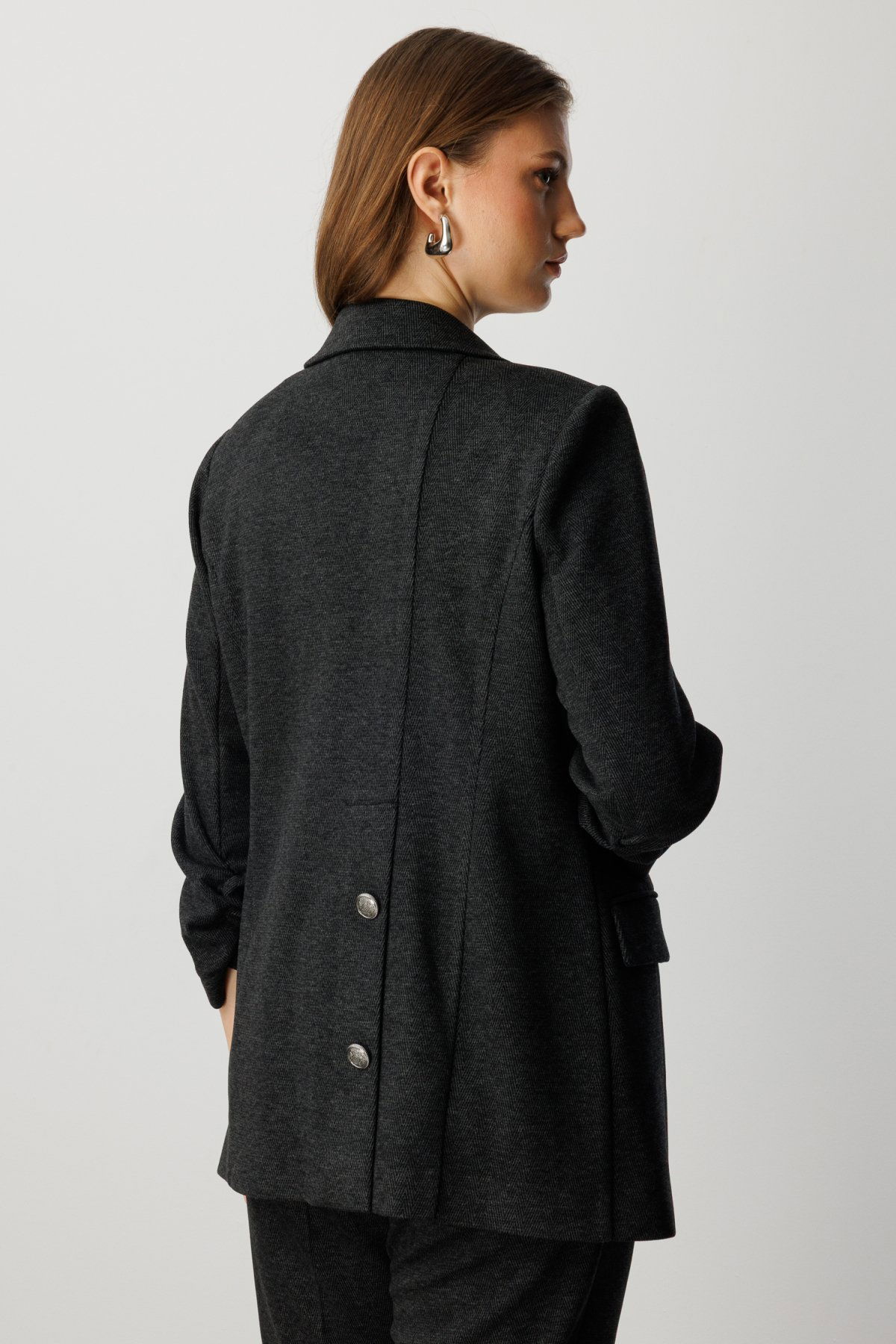 Detay: Ceket yaka tasarımıyla klasik duruşu modern bir stille buluşturan bu uzun kollu kapaklı ceket, dokuma kumaşı ve yarım astarıyla hem konforlu hem de kaliteli bir kullanım sunar. Kapamasız tasarımıyla özgün bir görünüm kazandırırken, kapaklı cep detaylarıyla fonksiyonellik ve şıklığı bir araya getirir. Günlük kombinlerden ofis stiline kadar her ortamda zarif bir tercih olarak öne çıkar;