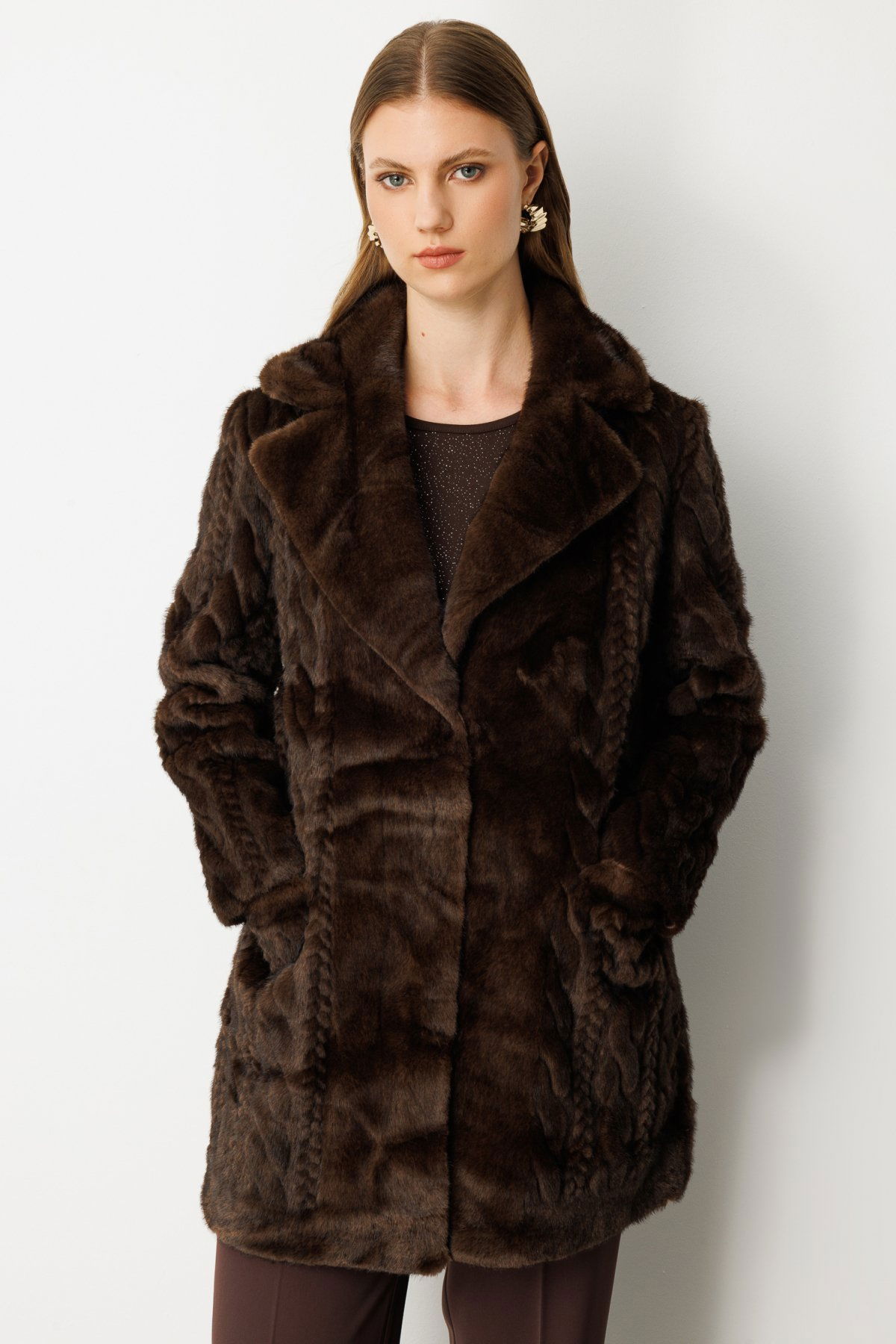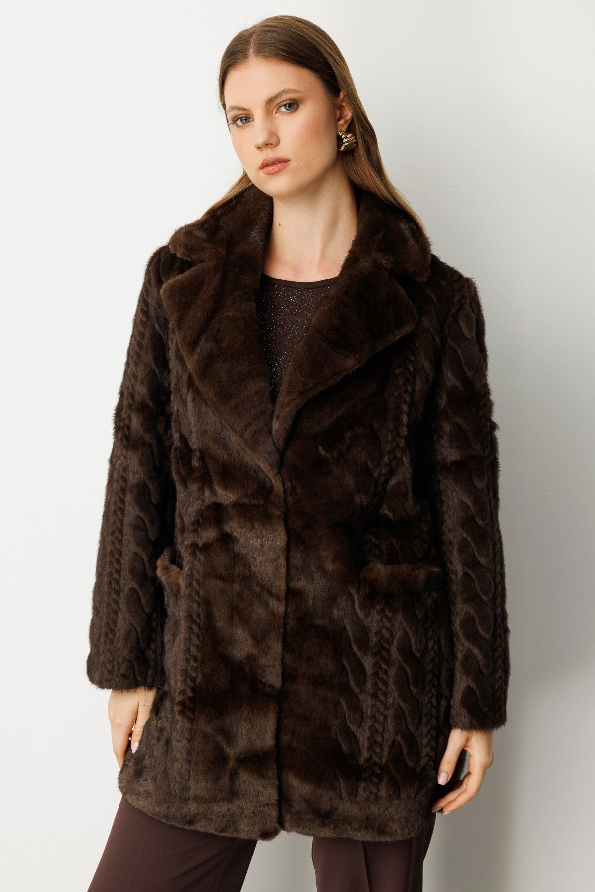 Detay: Peluş kumaşın yumuşak dokusuyla tasarlanan bu kruvaze yaka kaban, astarsız yapısıyla hafif ve rahat bir kullanım sunar. Uzun kollu ve çıt çıt kapamalı modeli, modern bir görünüm sağlarken torba cepleriyle fonksiyonelliği artırır. Günlük stilinize sıcaklık ve zarafet katmak isteyenler için ideal bir tercihtir;