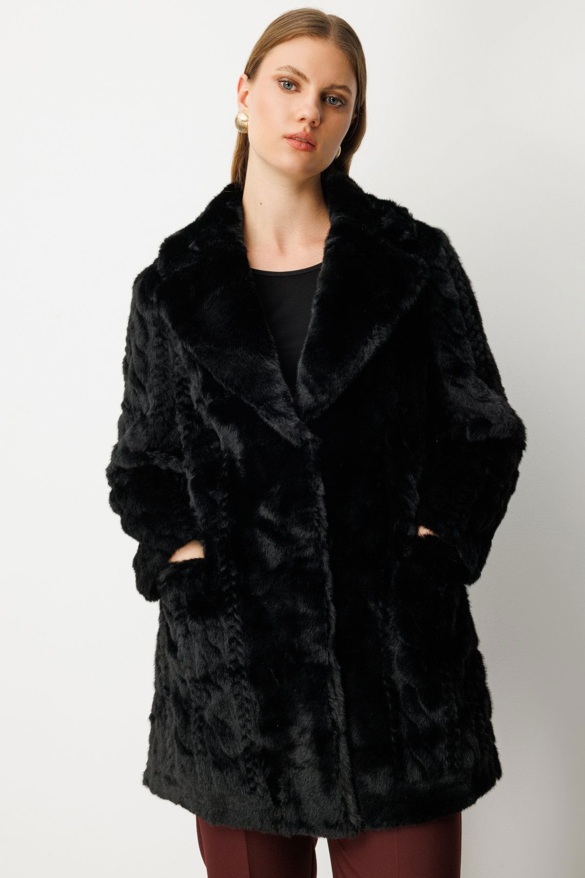 Ekol Kadın Büyük Beden Kruvaze Yaka Torba Cepli Kaban 6961 Siyah