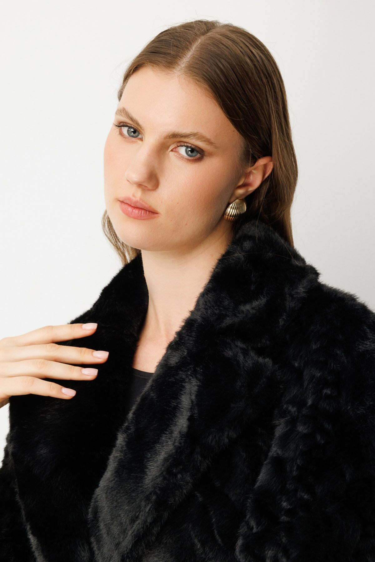 Detay: Peluş kumaşın yumuşak dokusuyla tasarlanan bu kruvaze yaka kaban, astarsız yapısıyla hafif ve rahat bir kullanım sunar. Uzun kollu ve çıt çıt kapamalı modeli, modern bir görünüm sağlarken torba cepleriyle fonksiyonelliği artırır. Günlük stilinize sıcaklık ve zarafet katmak isteyenler için ideal bir tercihtir;