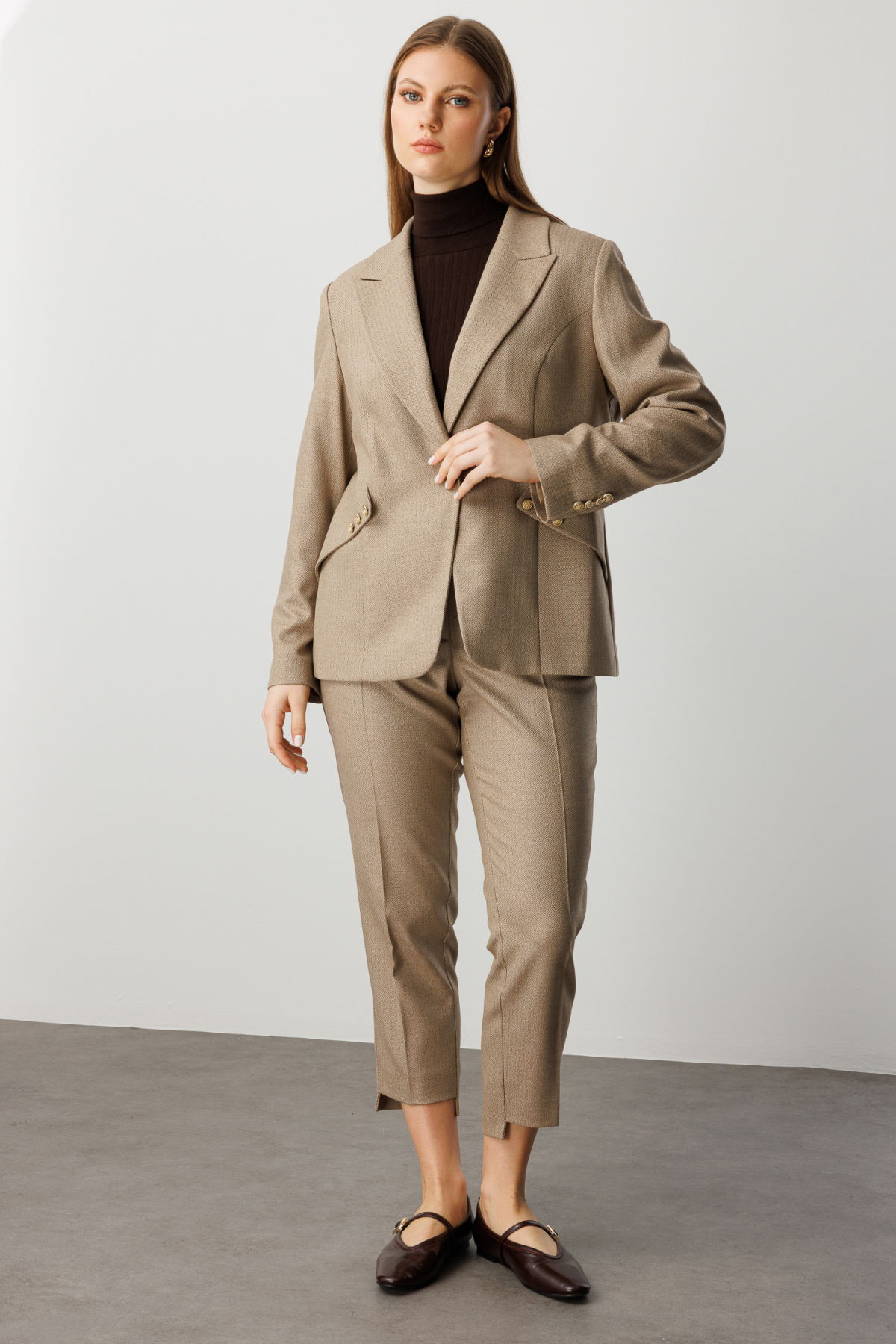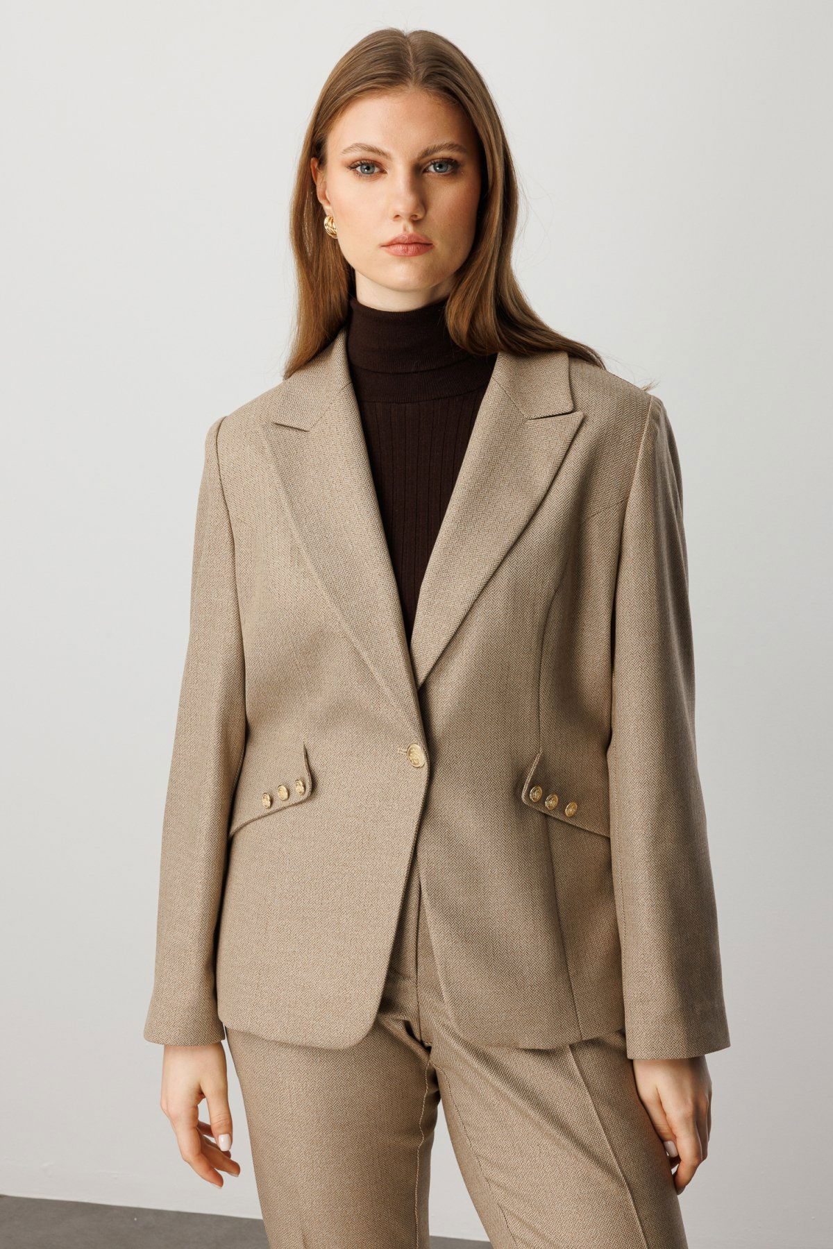 Detay: Klasik ceket yaka tasarımıyla zamansız bir şıklık sunan bu uzun kollu düğmeli ceket, dokuma kumaşı ve astarlı yapısıyla kaliteli bir duruş sergiler. Cepsiz tasarımıyla sade ve modern bir görünüm kazandırırken, uzun kol detayıyla mevsim geçişlerinde ideal bir kullanım sağlar. Hem iş hayatında hem günlük kombinlerde zarif bir stil arayanlar için mükemmel bir tercihtir;