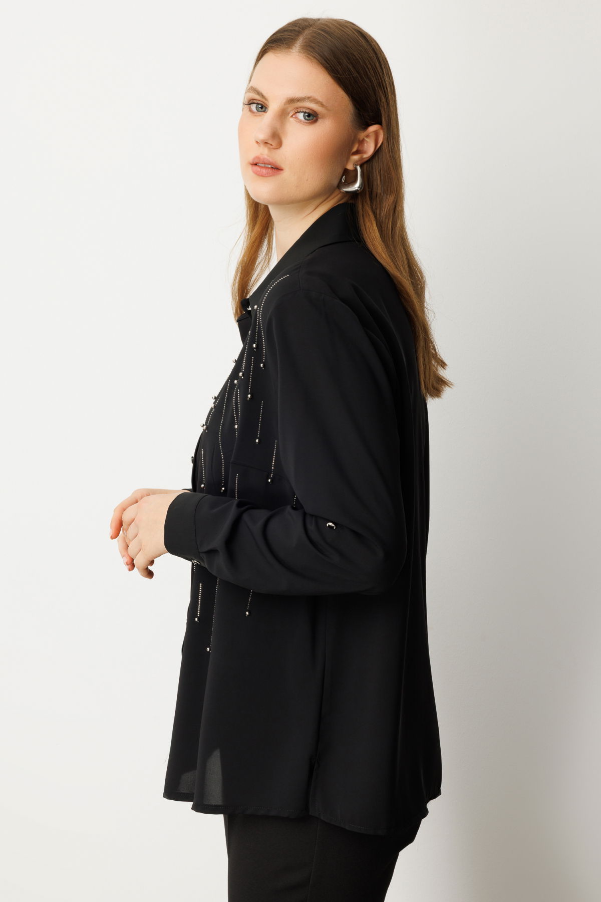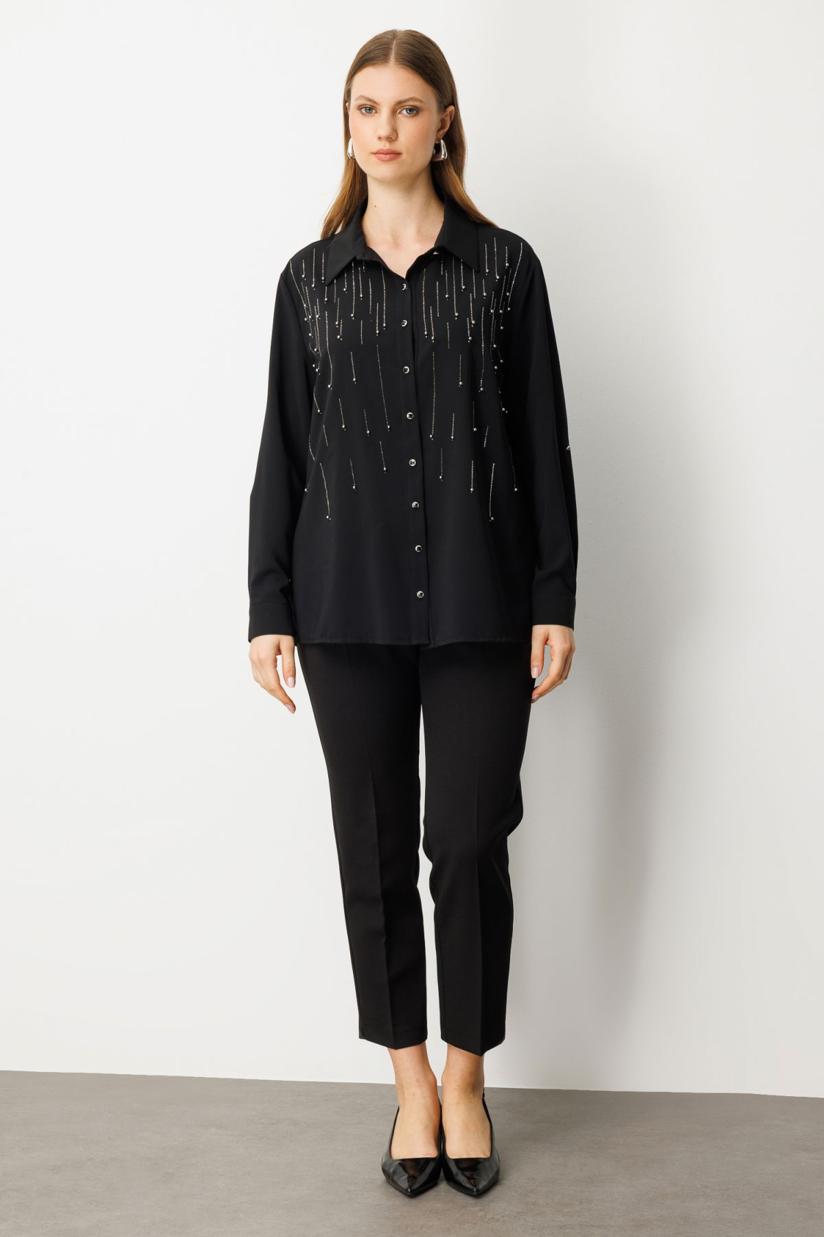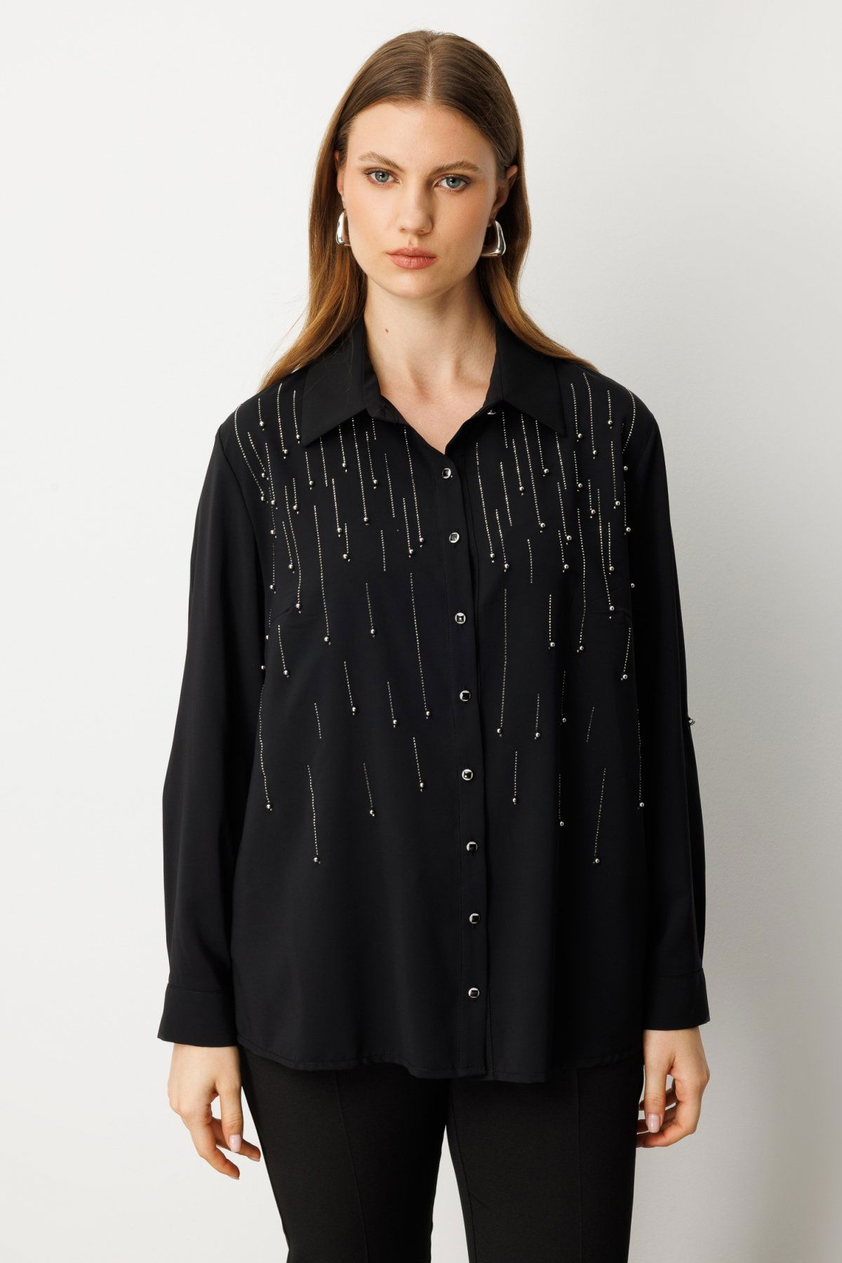 Detay: Polyester kumaştan üretilmiş, astarsız ve gömlek yakalı bu uzun kollu bluz, hafif yapısıyla gün boyu konfor sunar. Düğmeli kapama detayı klasik bir görünüm sağlarken, uzun kol boyu sayesinde mevsim geçişlerinde ideal bir tercihtir. Şıklığı ve sadeliği bir arada sunan bu parça, hem ofis hem günlük stilinize kolayca uyum sağlar;