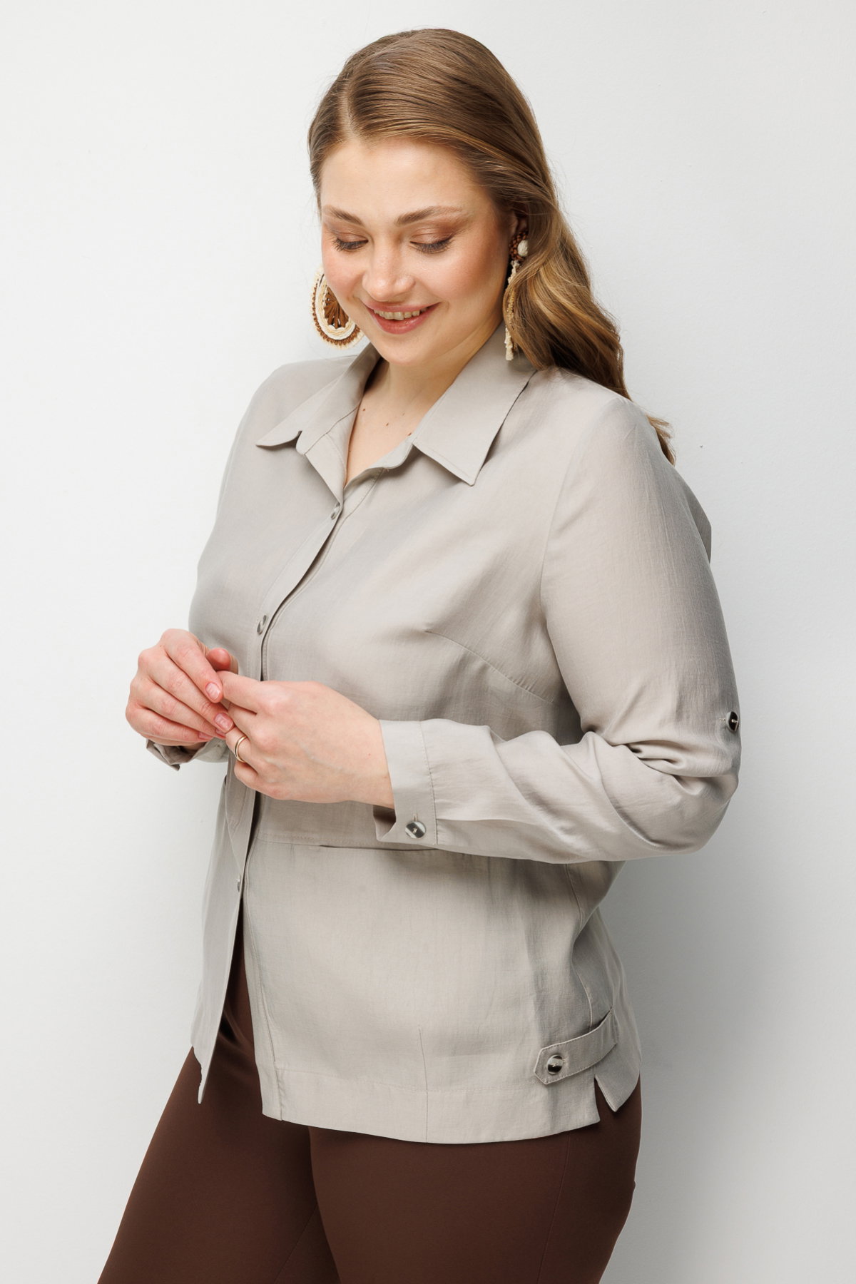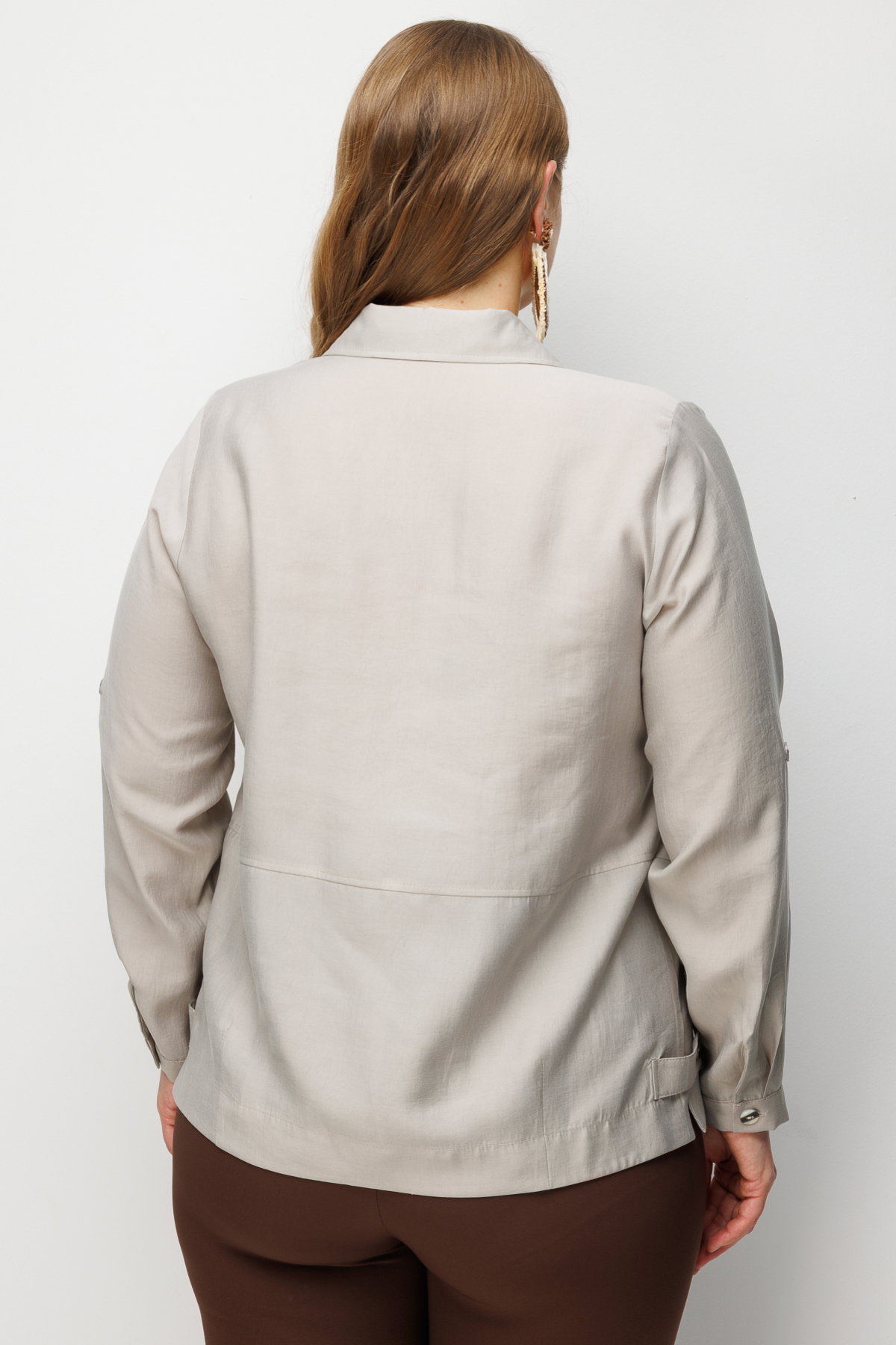 Ekol Kadın Büyük Beden Torba Cepli Polo Yaka Gömlek 7602 Taş