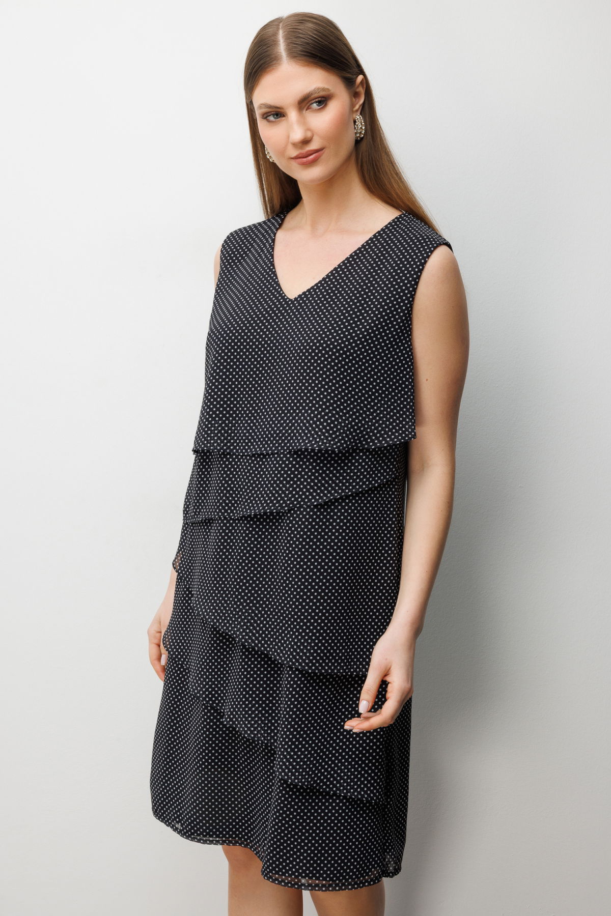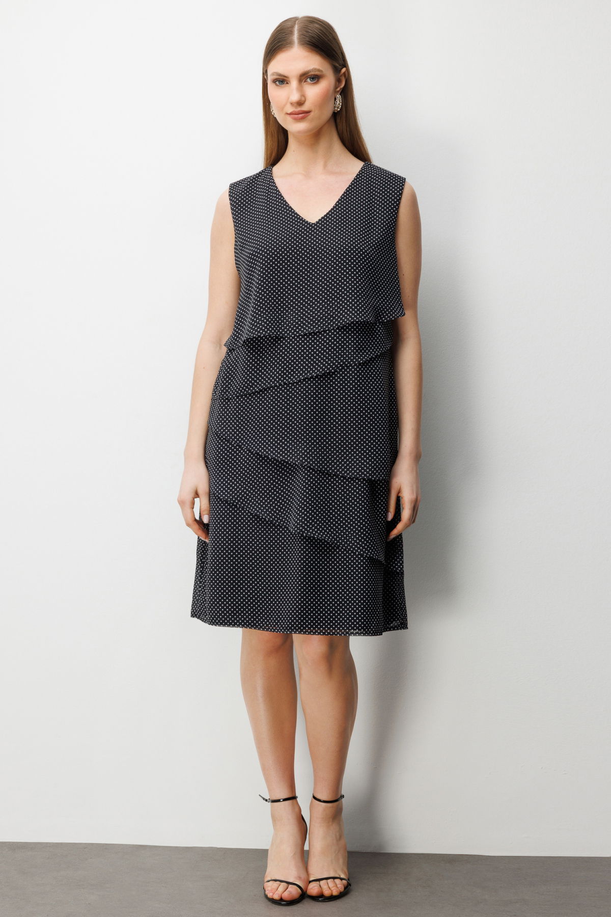 Detay: Polyester kumaştan üretilen, astarlı yapısıyla şık ve düzgün bir duruş sağlayan V yaka kolsuz fermuarlı elbise, modern ve zarif bir görünüm sunar. Dayanıklı polyester dokusu sayesinde uzun süreli kullanım imkânı sağlarken, V yaka tasarımı feminen bir şıklık kazandırır. Pratik fermuar kapamasıyla kullanım kolaylığı sunan bu elbise, hem özel davetlerde hem de günlük şık kombinlerde gardırobunuzun dikkat çekici parçalarından biri olur;